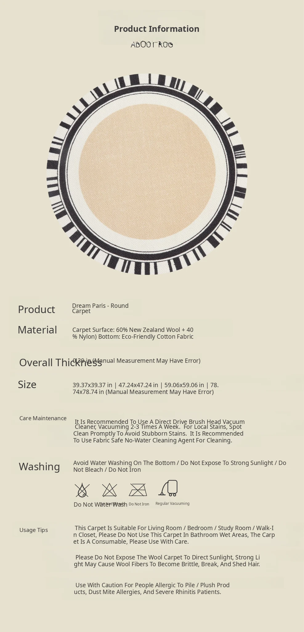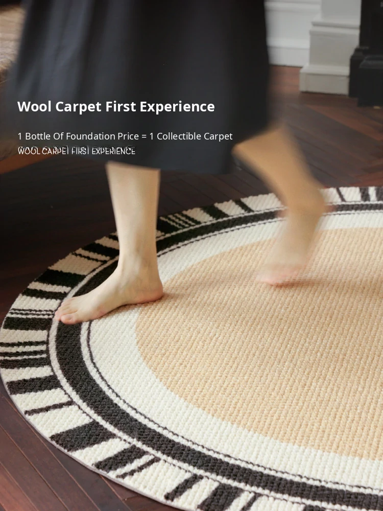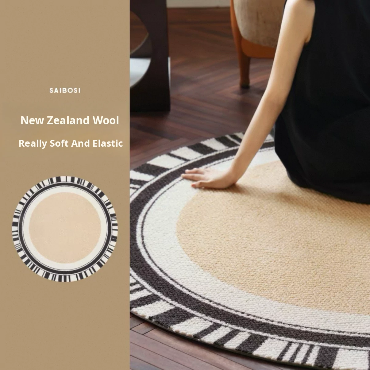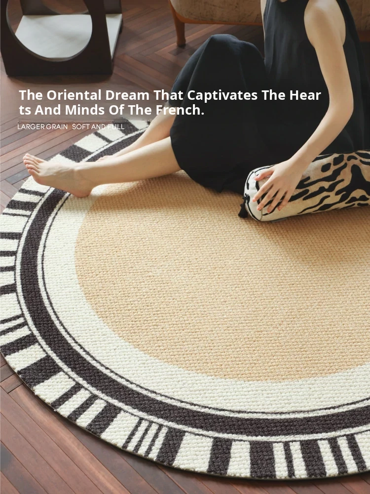 Seipos Dreamy Paris Imported Wool Round Carpet - Luxurious French Cream Design for Living Room, Bedroom, and Dressing Room