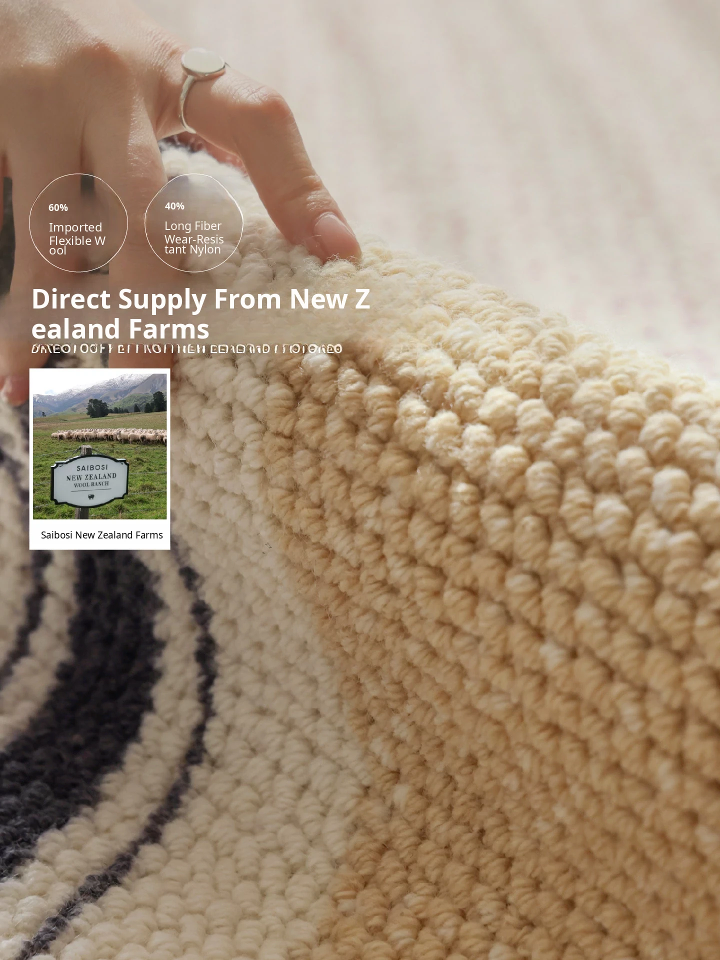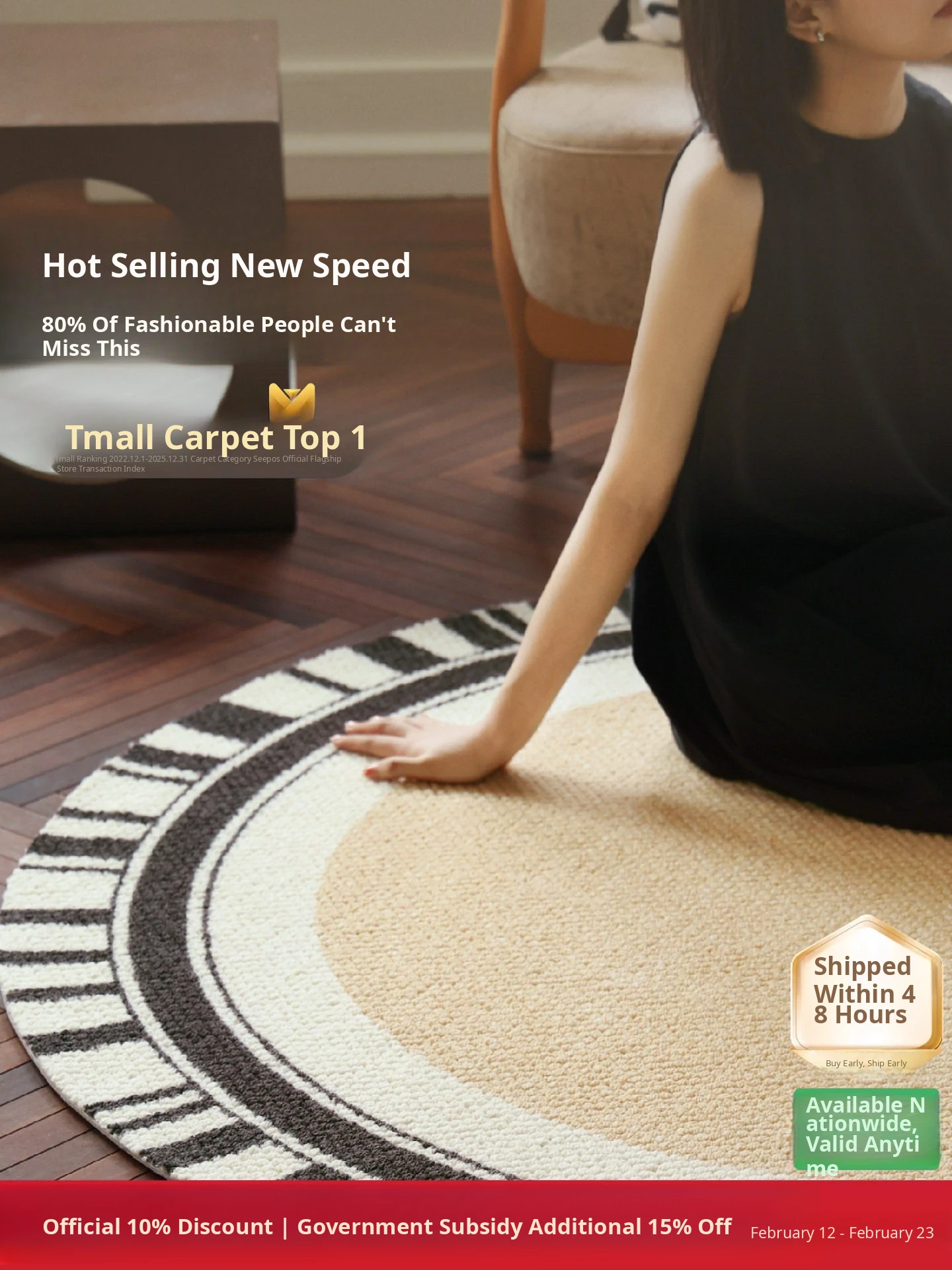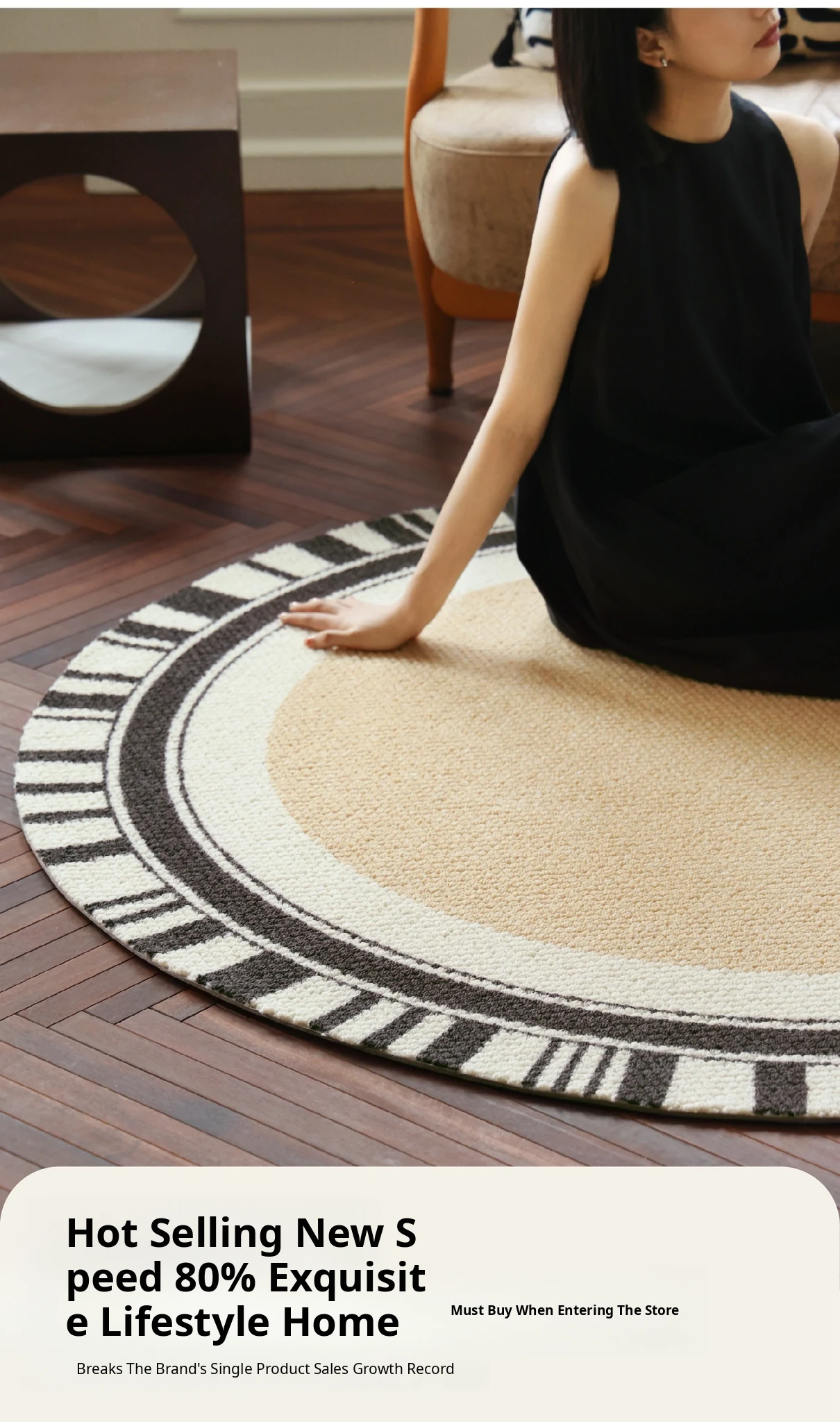 Seipos Dreamy Paris Imported Wool Round Carpet - Luxurious French Cream Design for Living Room, Bedroom, and Dressing Room