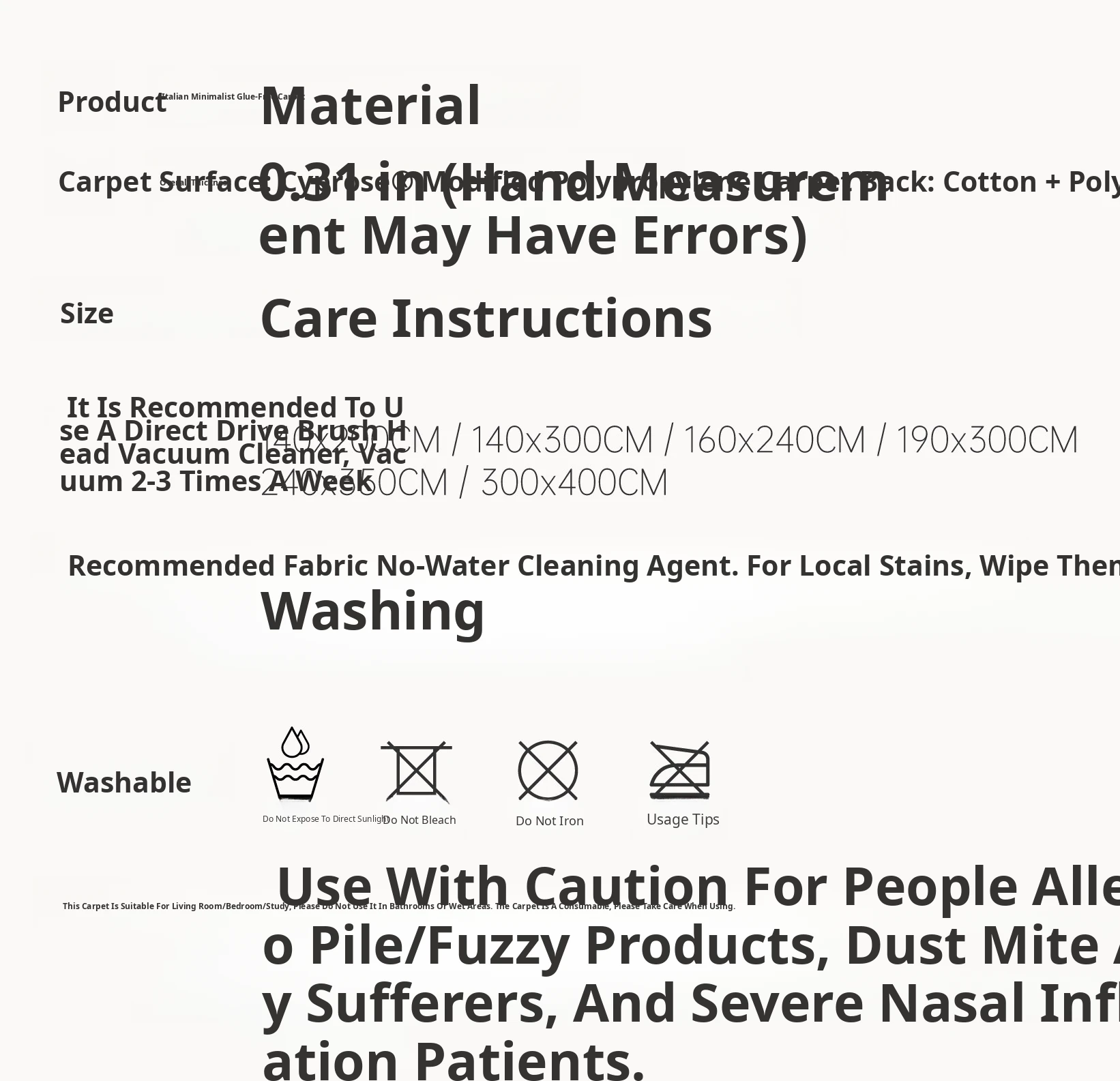 Seipos Italian Minimalist Glue-Free Carpet - Formaldehyde-Free, Luxurious Modern Design for Living Room and Bedroom, Perfect for Elegant Getaways