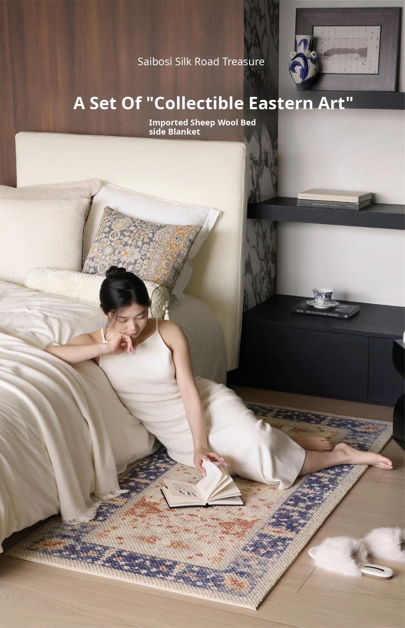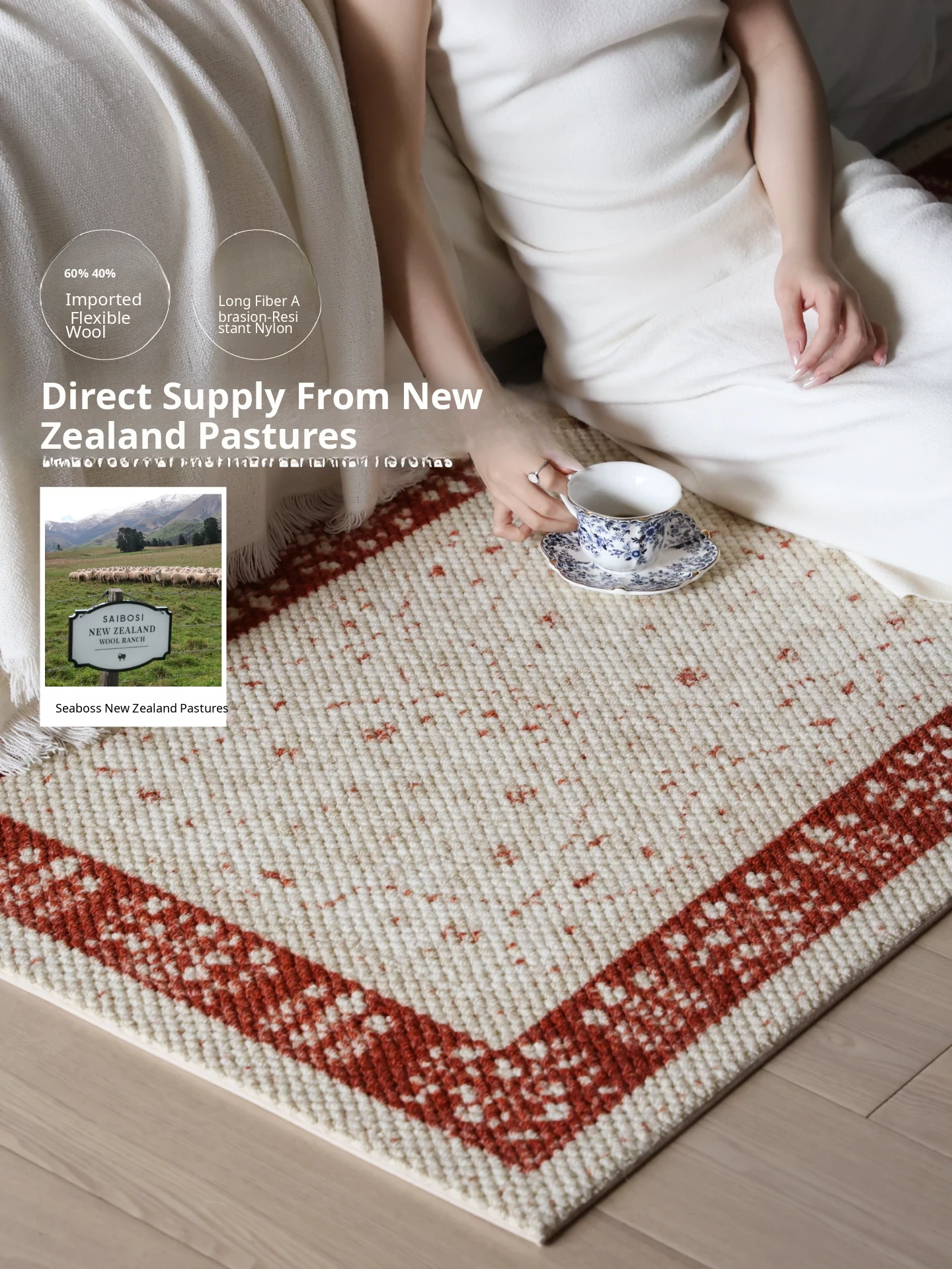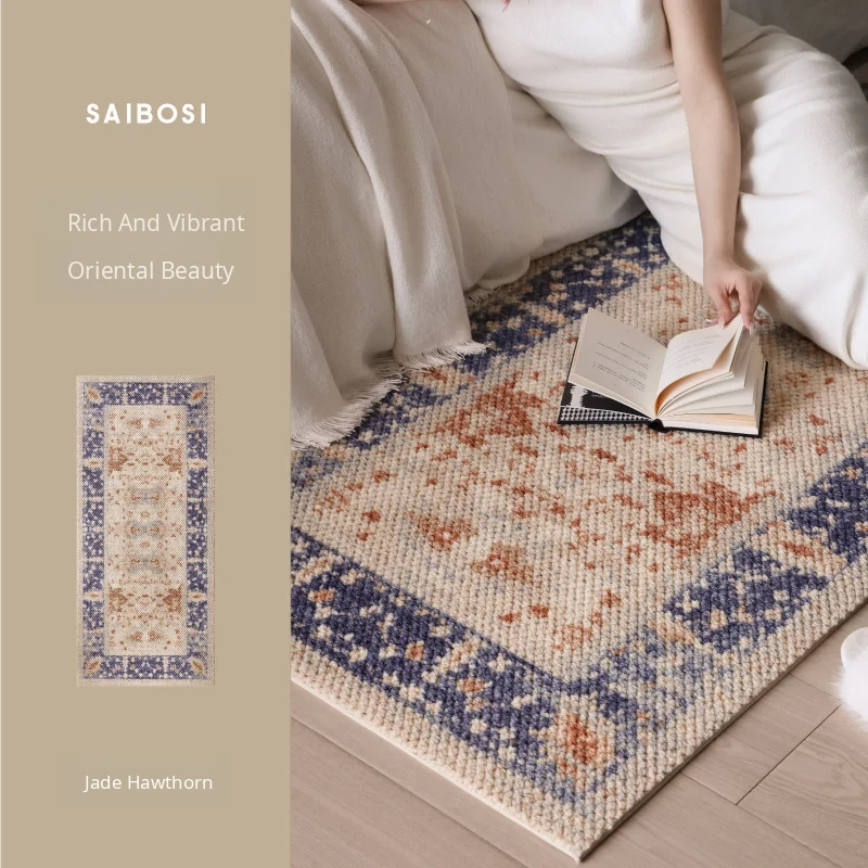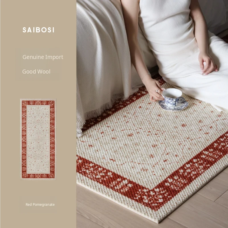 Seipos Jade Green Wool Bedside Blanket - Imported Luxury New Chinese Style Carpet for Bedroom, Bay Window, and Bed End - Elegant and Premium Quality