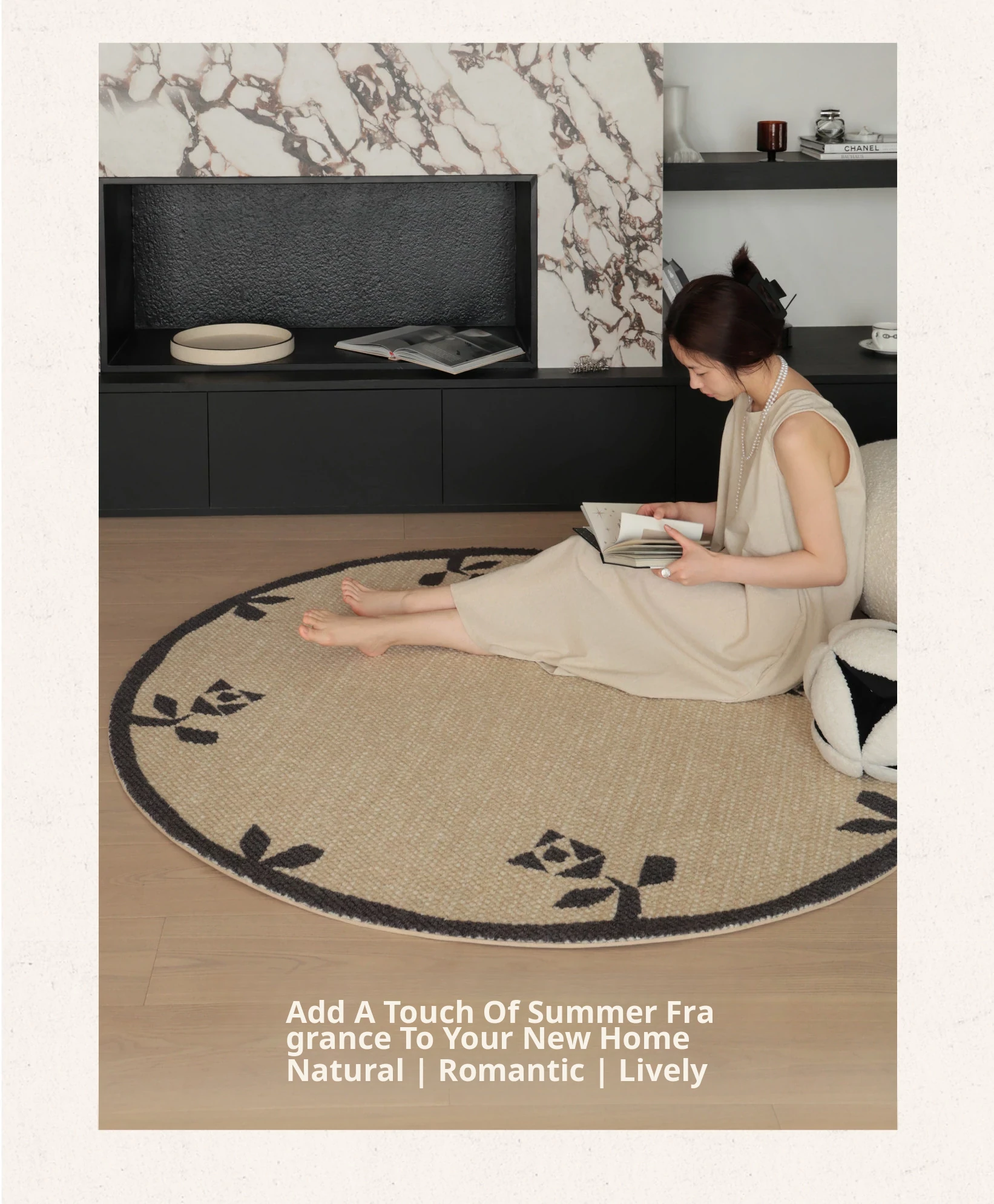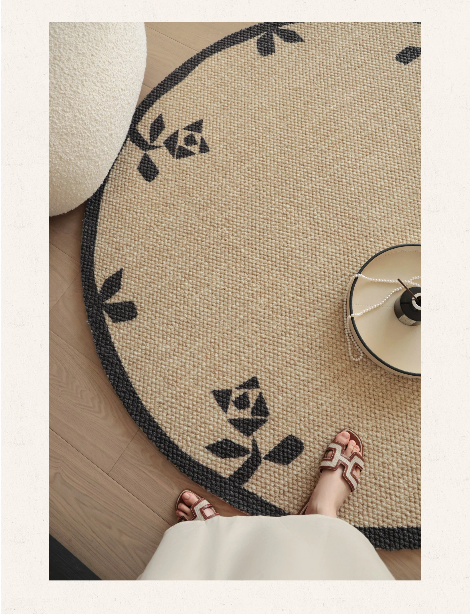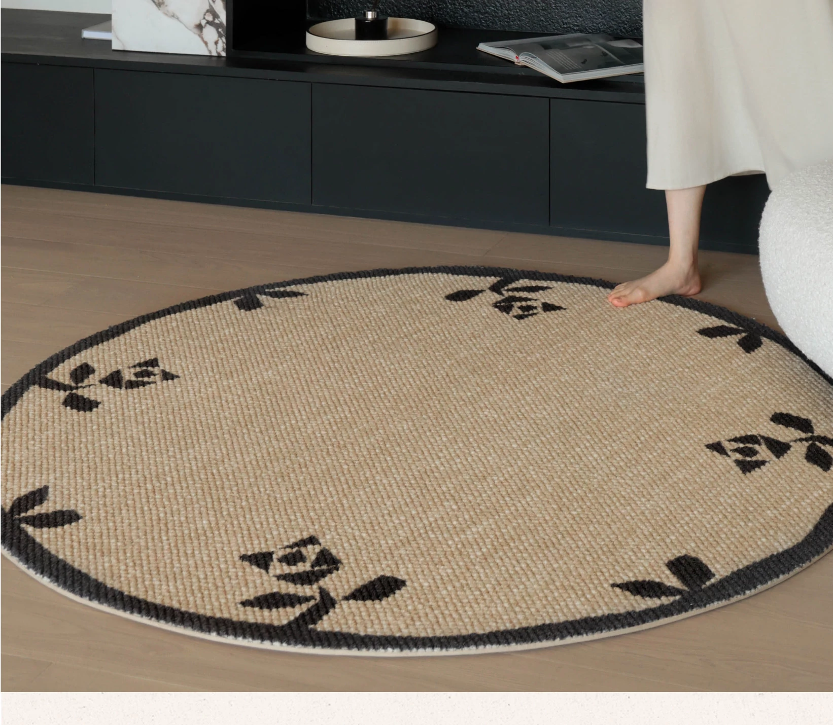 Seipos Rose Manor Premium Round Wool Carpet - Elegant French Design for Living Room, Bedroom, Walk-in Closet, or Bedside - Perfect for Your Stylish Retreat