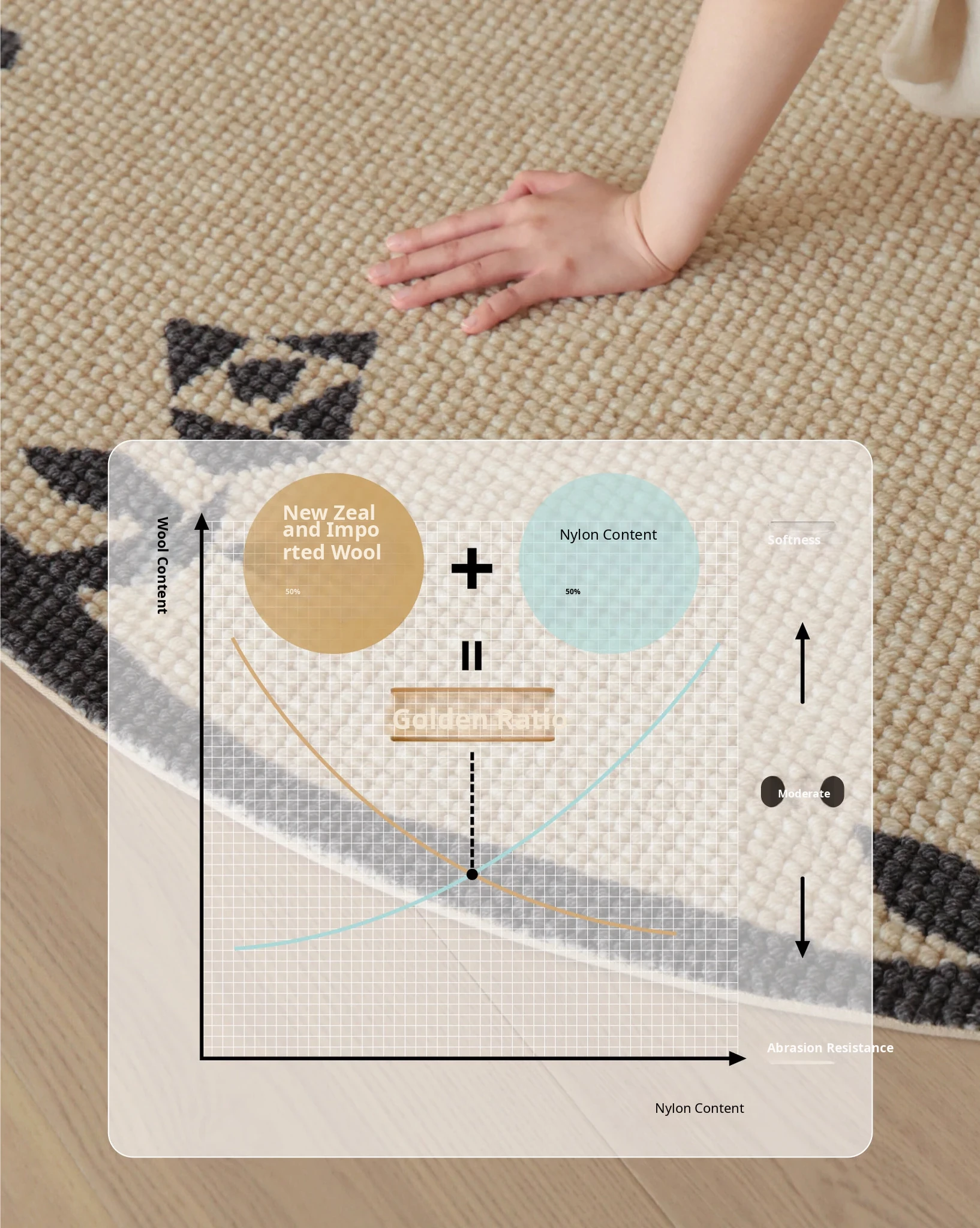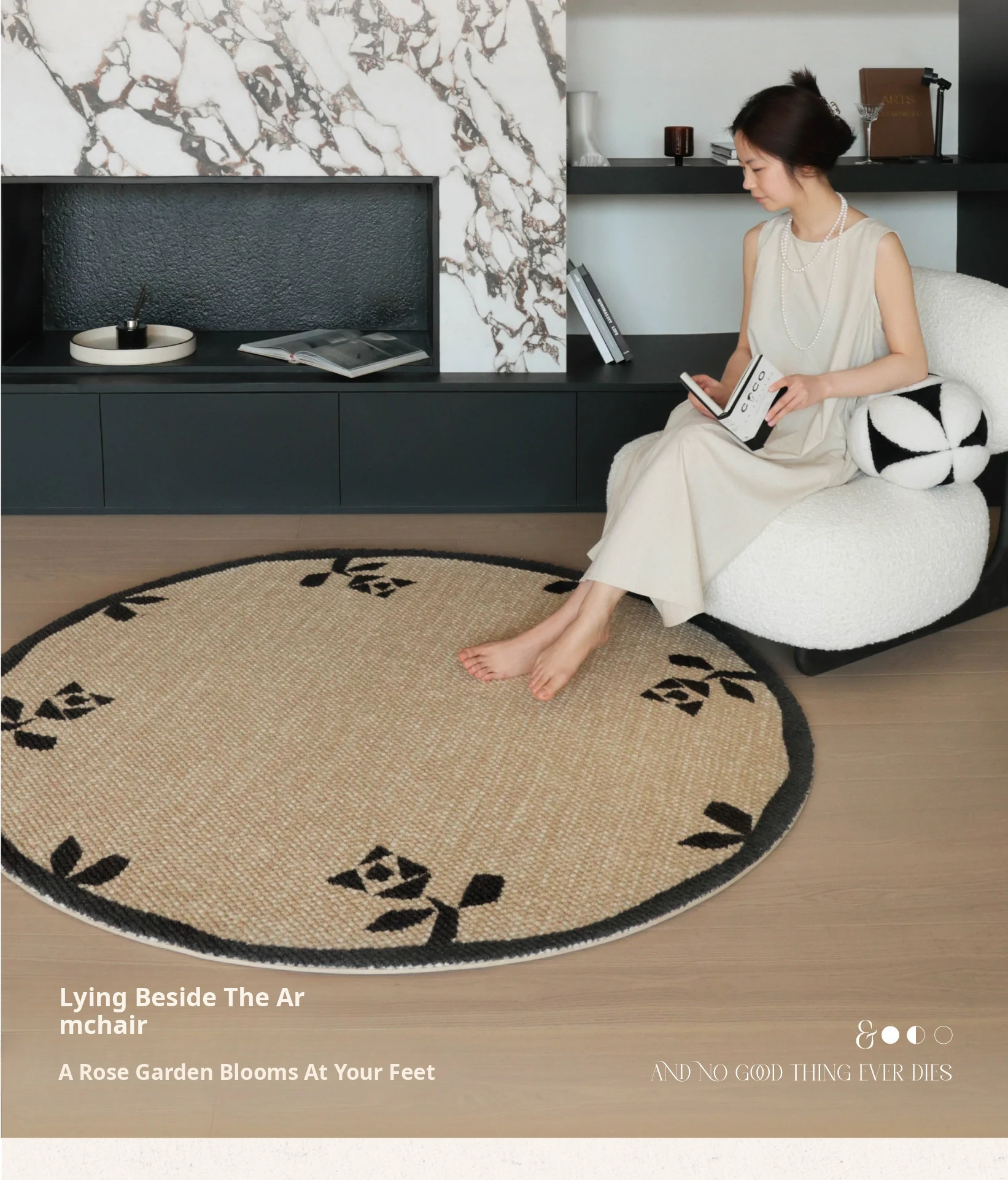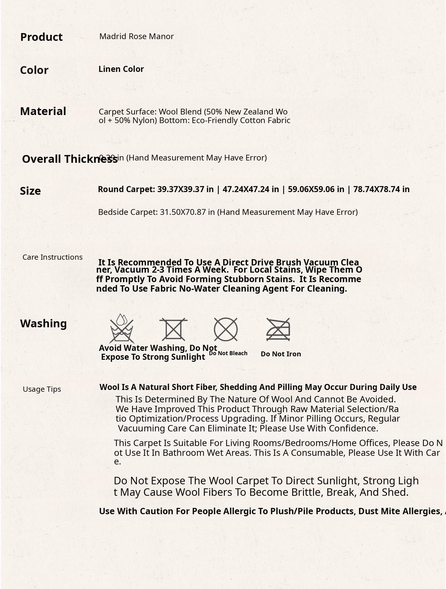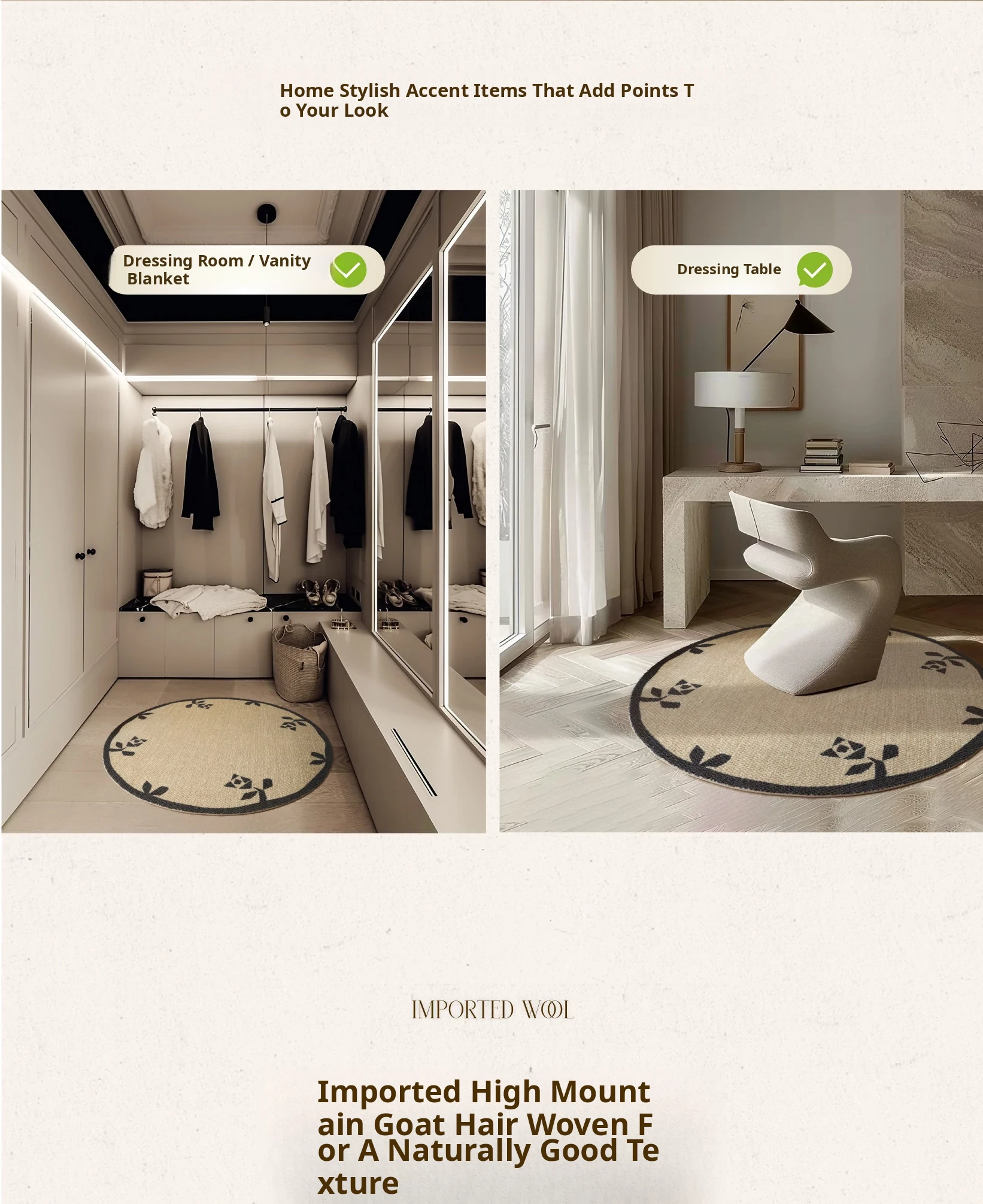 Seipos Rose Manor Premium Round Wool Carpet - Elegant French Design for Living Room, Bedroom, Walk-in Closet, or Bedside - Perfect for Your Stylish Retreat
