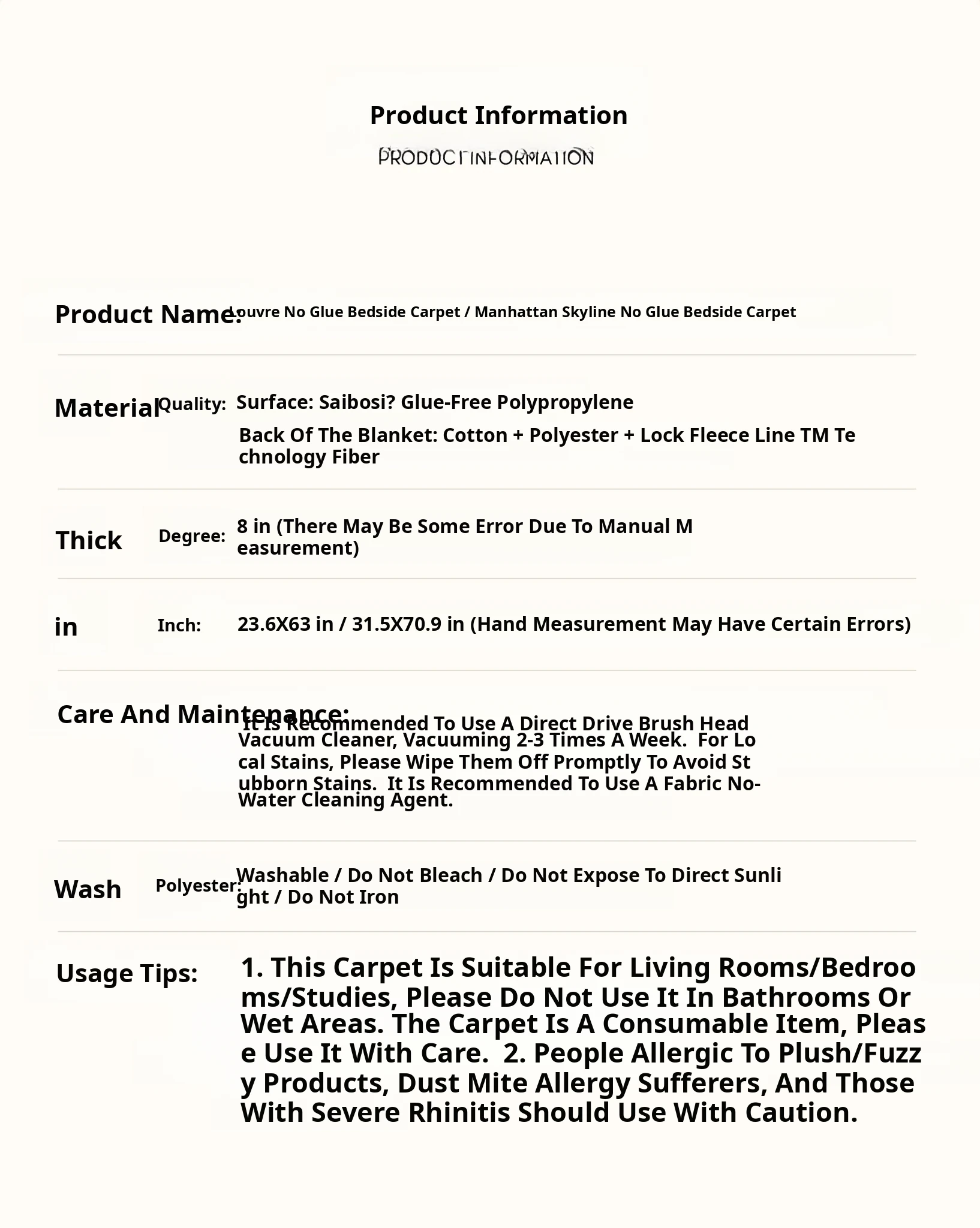 Manhattan Skyline Bedside Rug (Formaldehyde-Free)