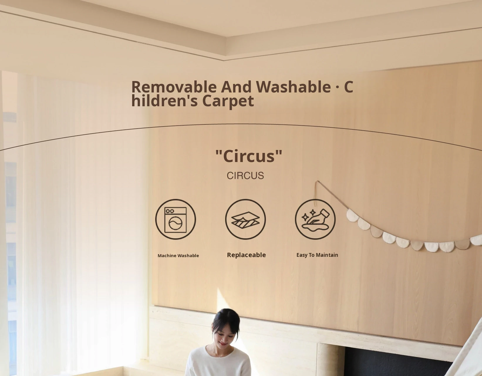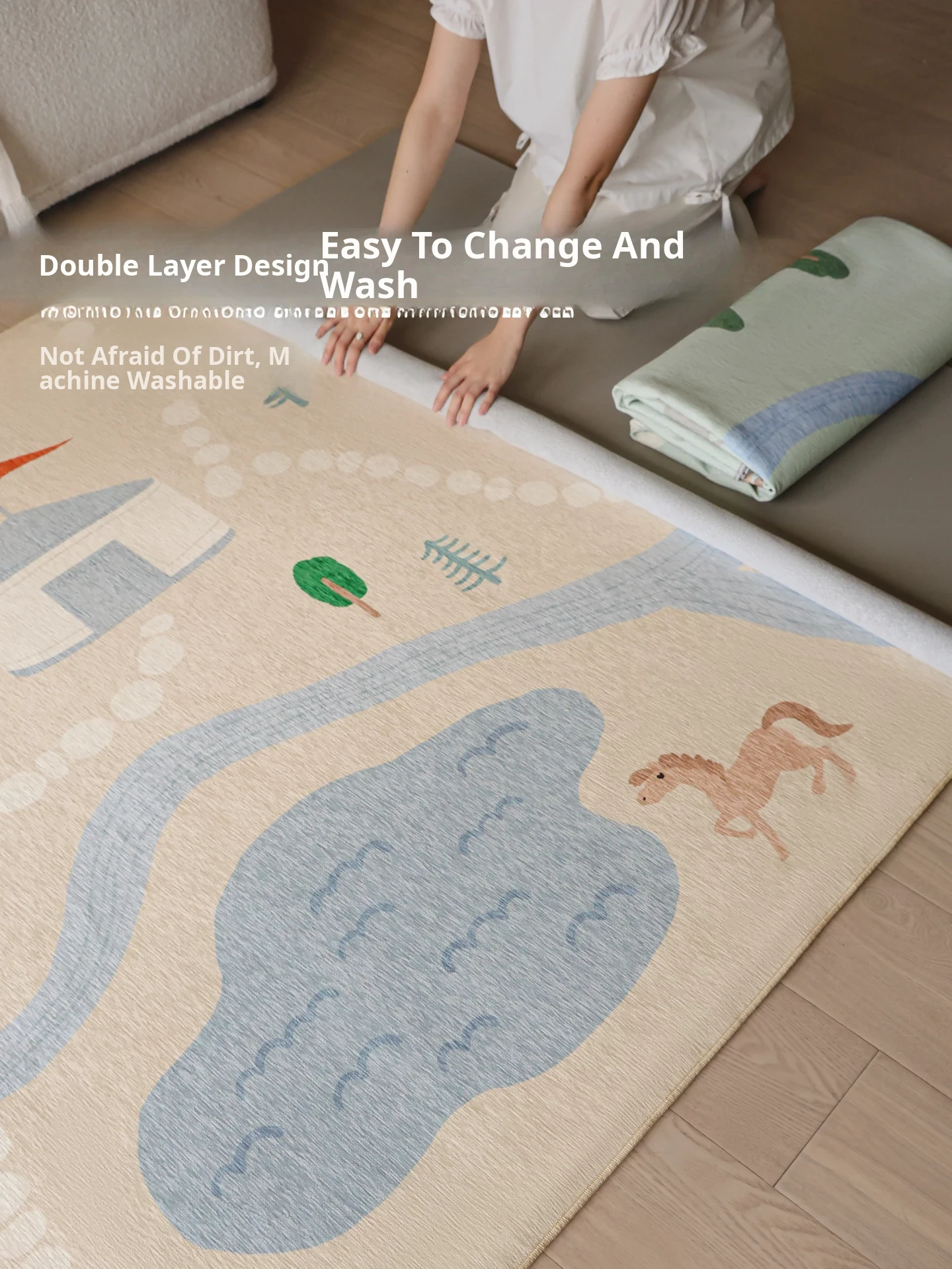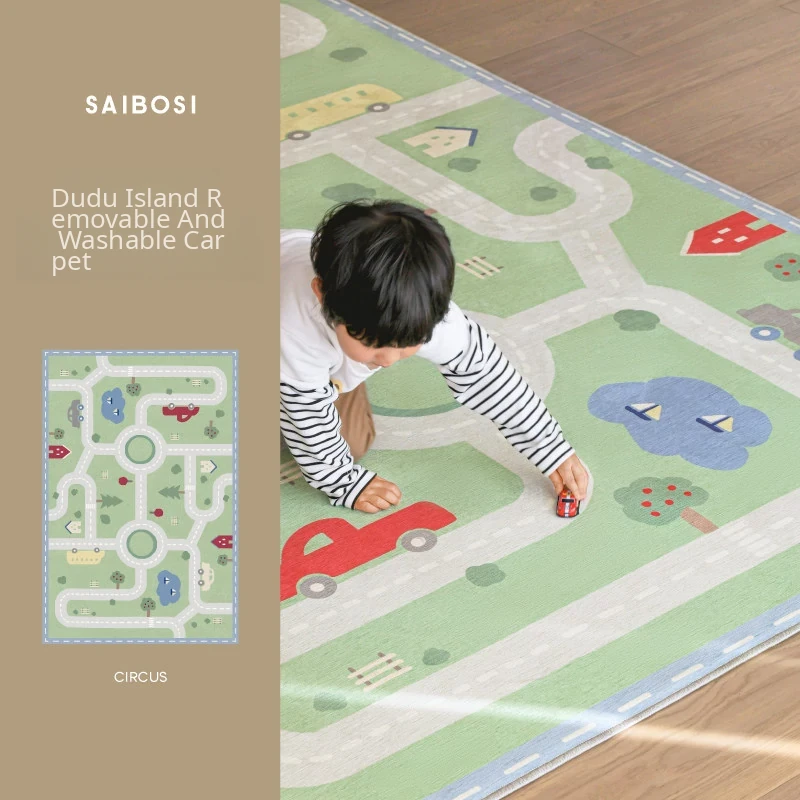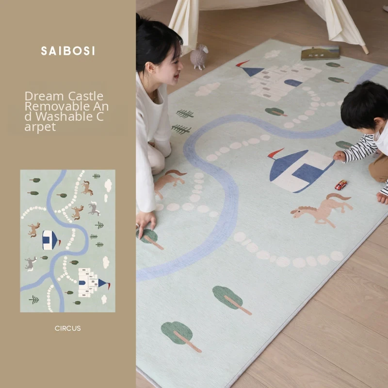Sibos Washable Double Layer Carpet for Living Room and Bedroom - Circus Themed Kids Cartoon Play Mat, Perfect for Children's Rooms and Easy to Clean!