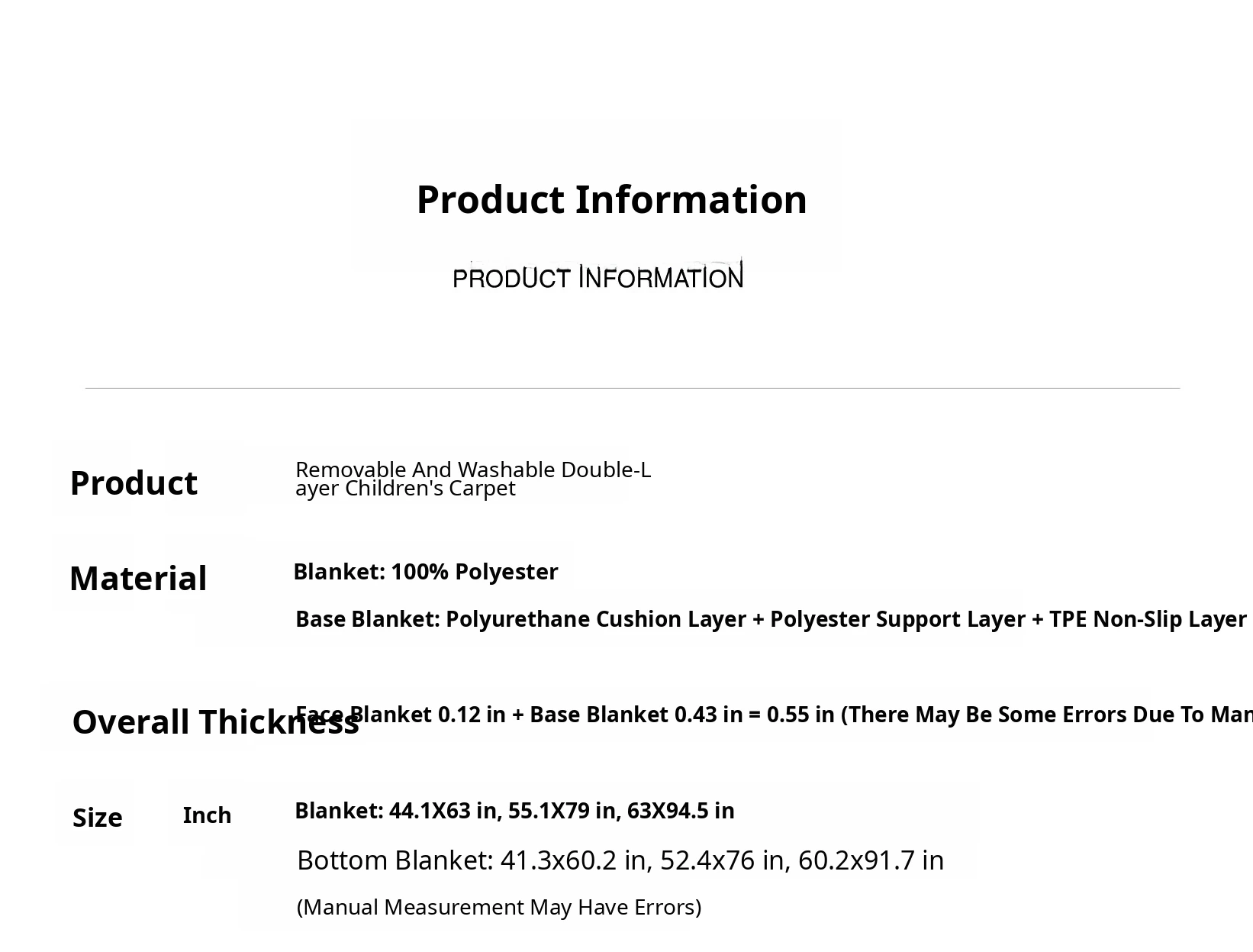 140×78.74in (Carpet Surface + 0.43in Carpet Base)