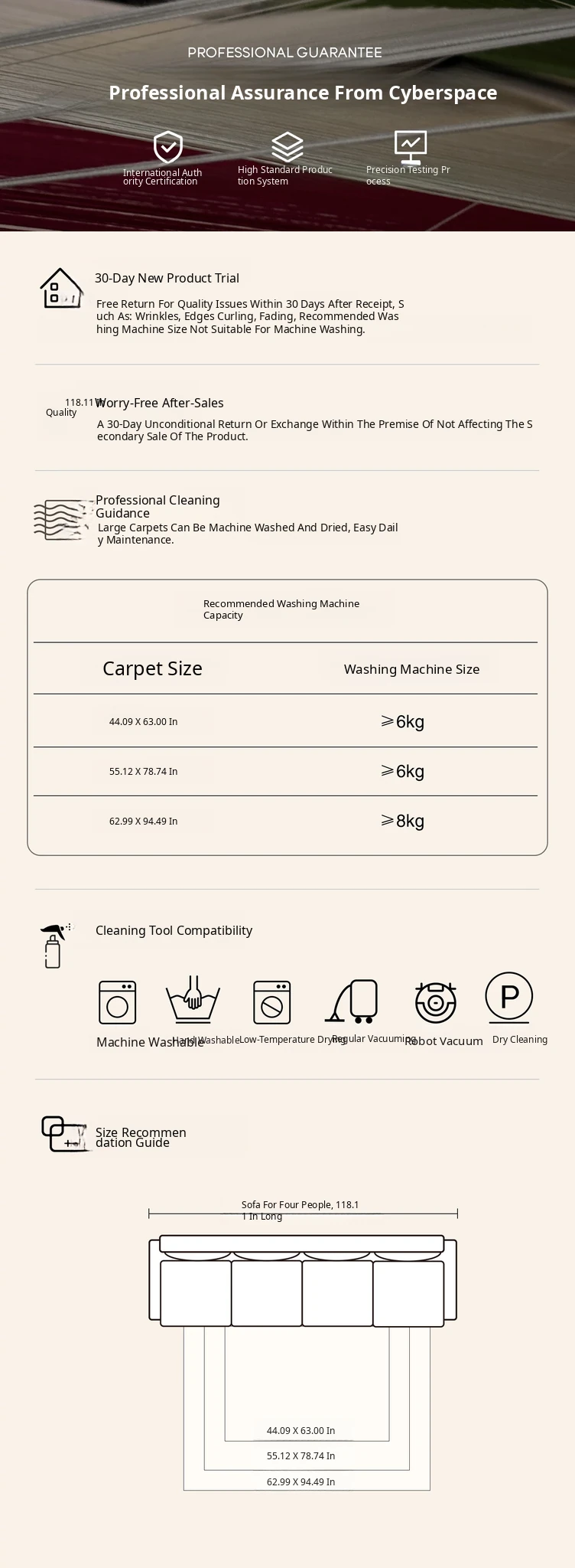 112×62.99in (Carpet Surface + 0.43in Carpet Base)