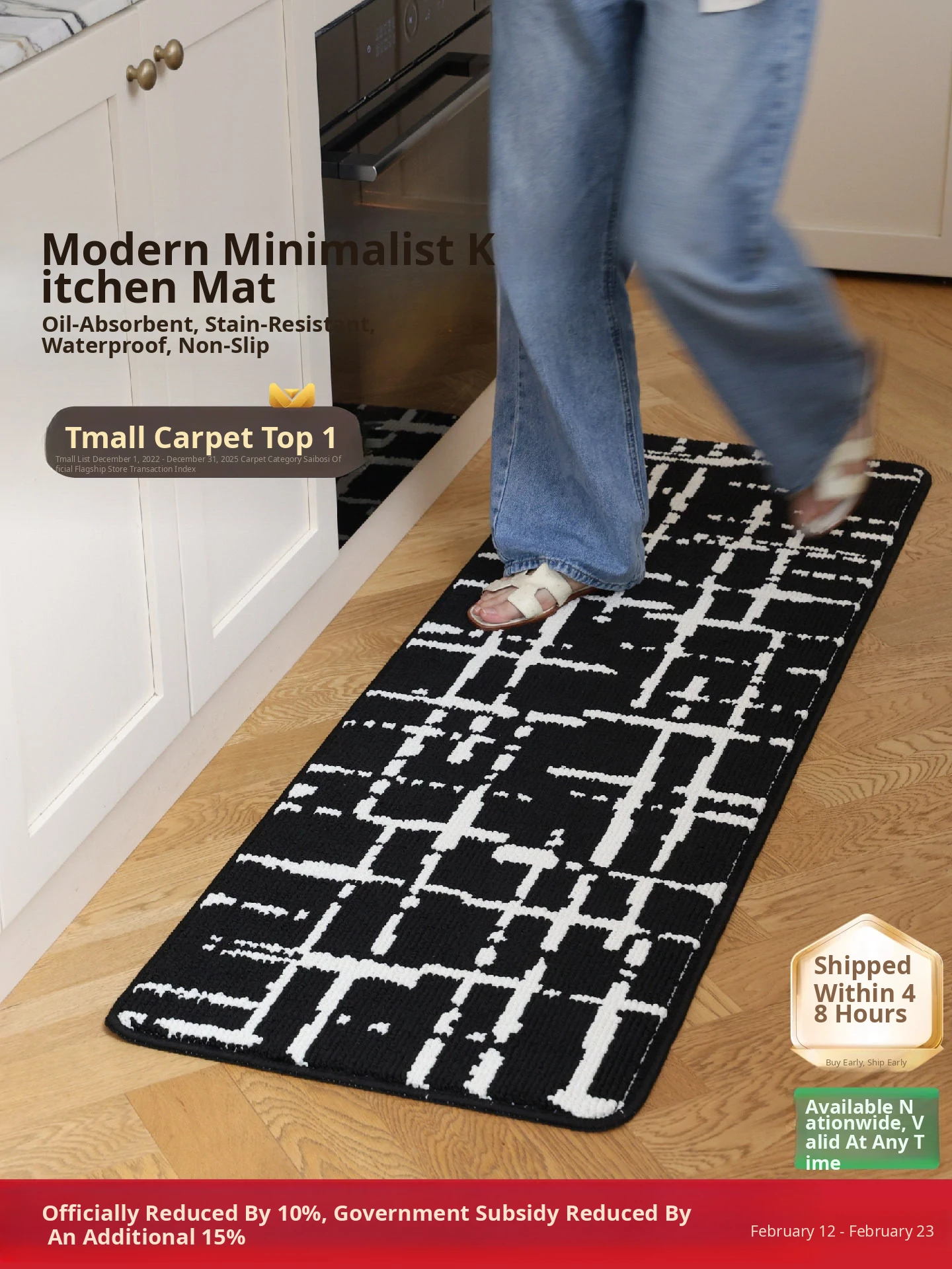 Kitchen Mat (Black and White Lines)