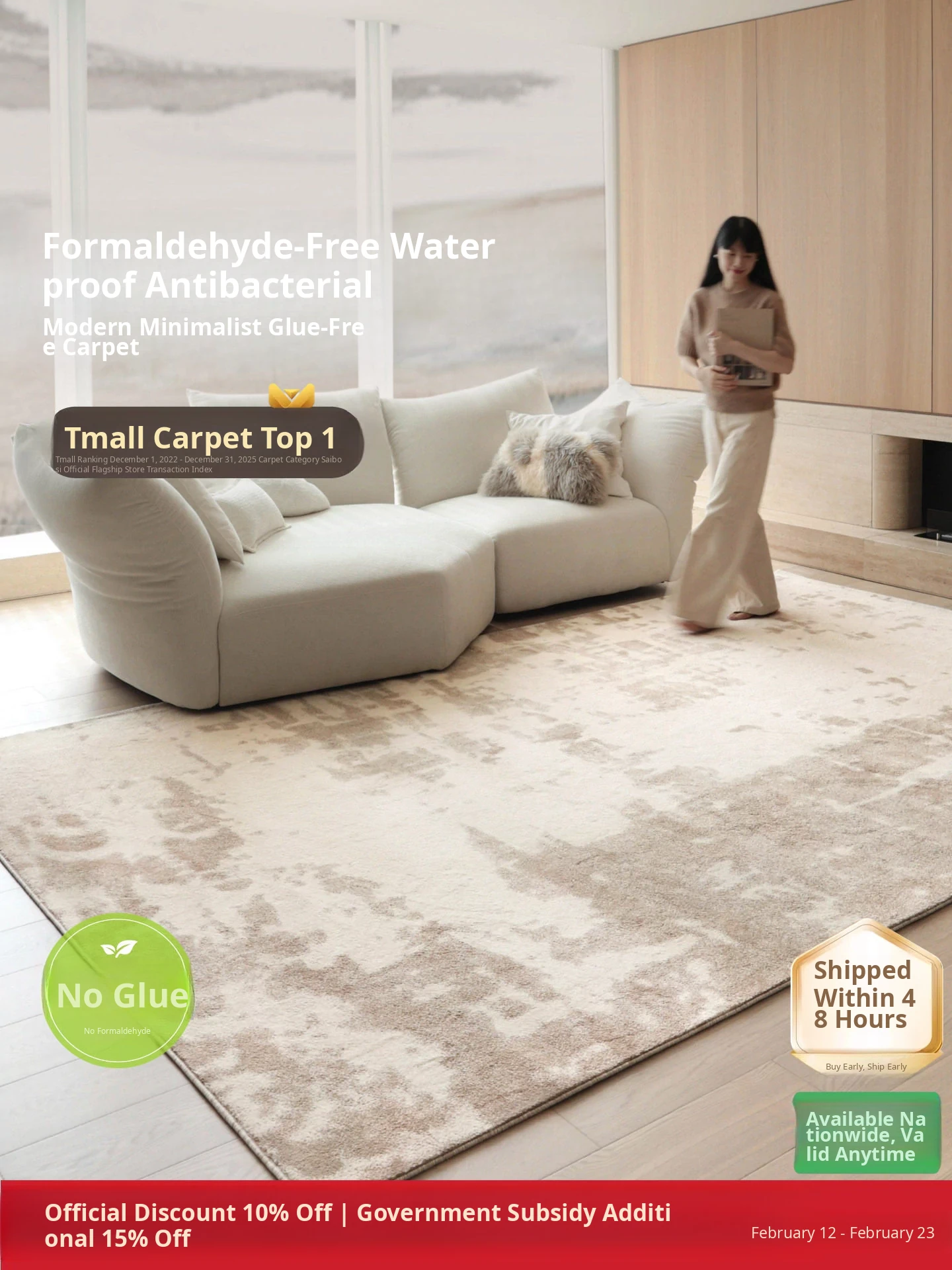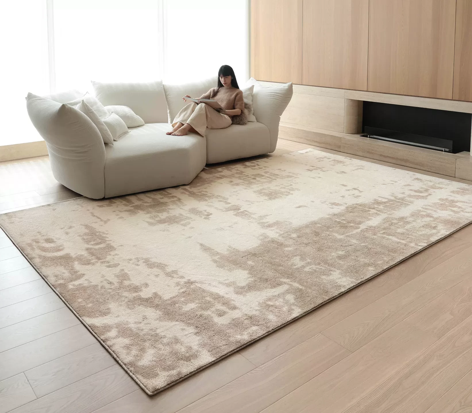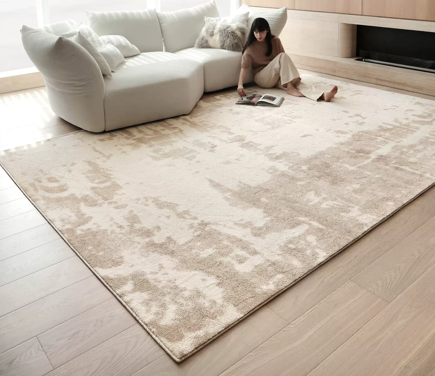 Sibos Waterproof No Glue Living Room Carpet - Kunlun Snow Step Antibacterial Modern Minimalist Italian Style Bedroom Rug for a Serene Retreat