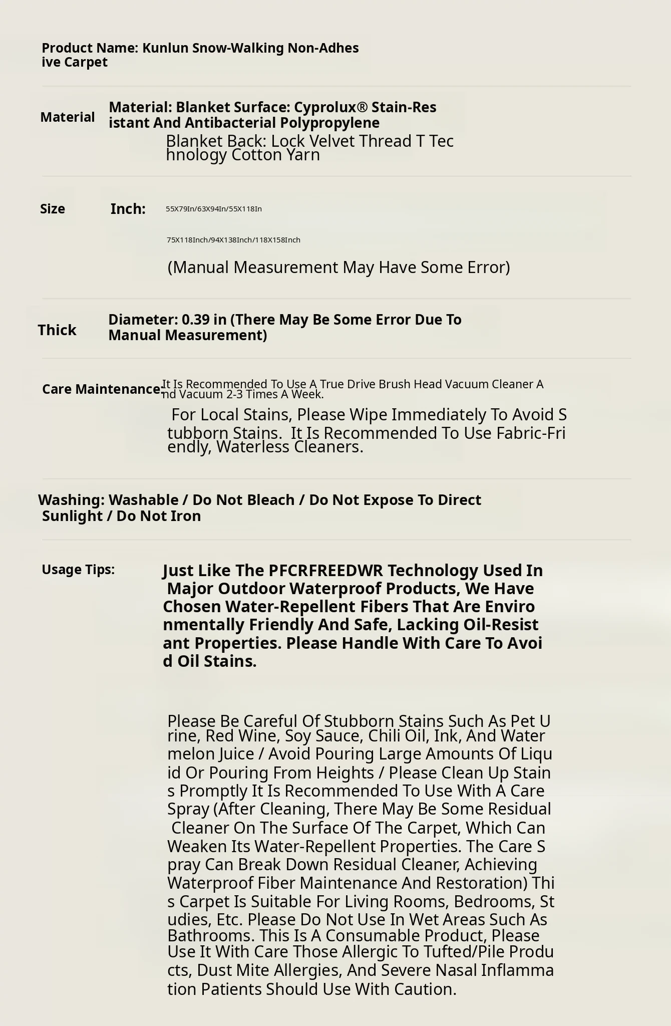 Kunlun Tuxue (Formaldehyde-Free and Easy to Take Care of)