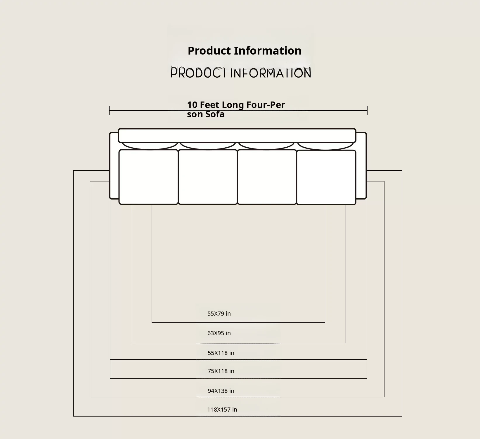 190 X 118.11 in((Suitable for 2.6~ 118.11in Sofa))