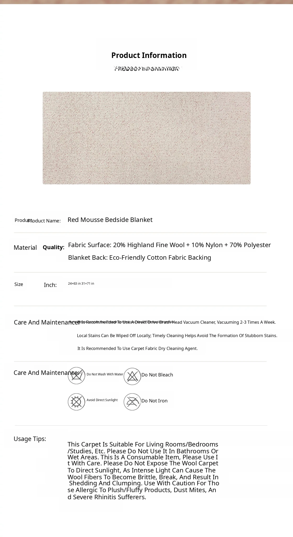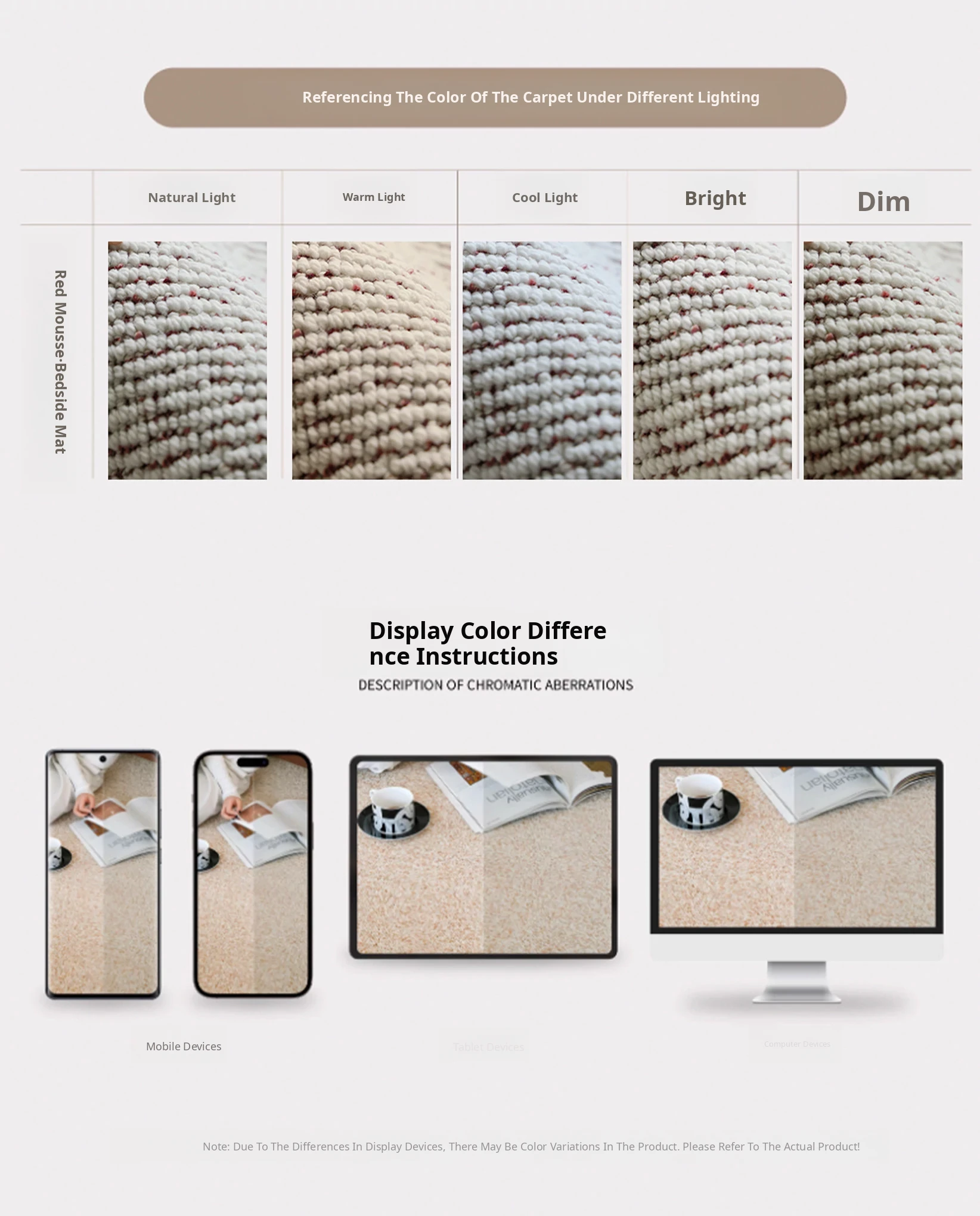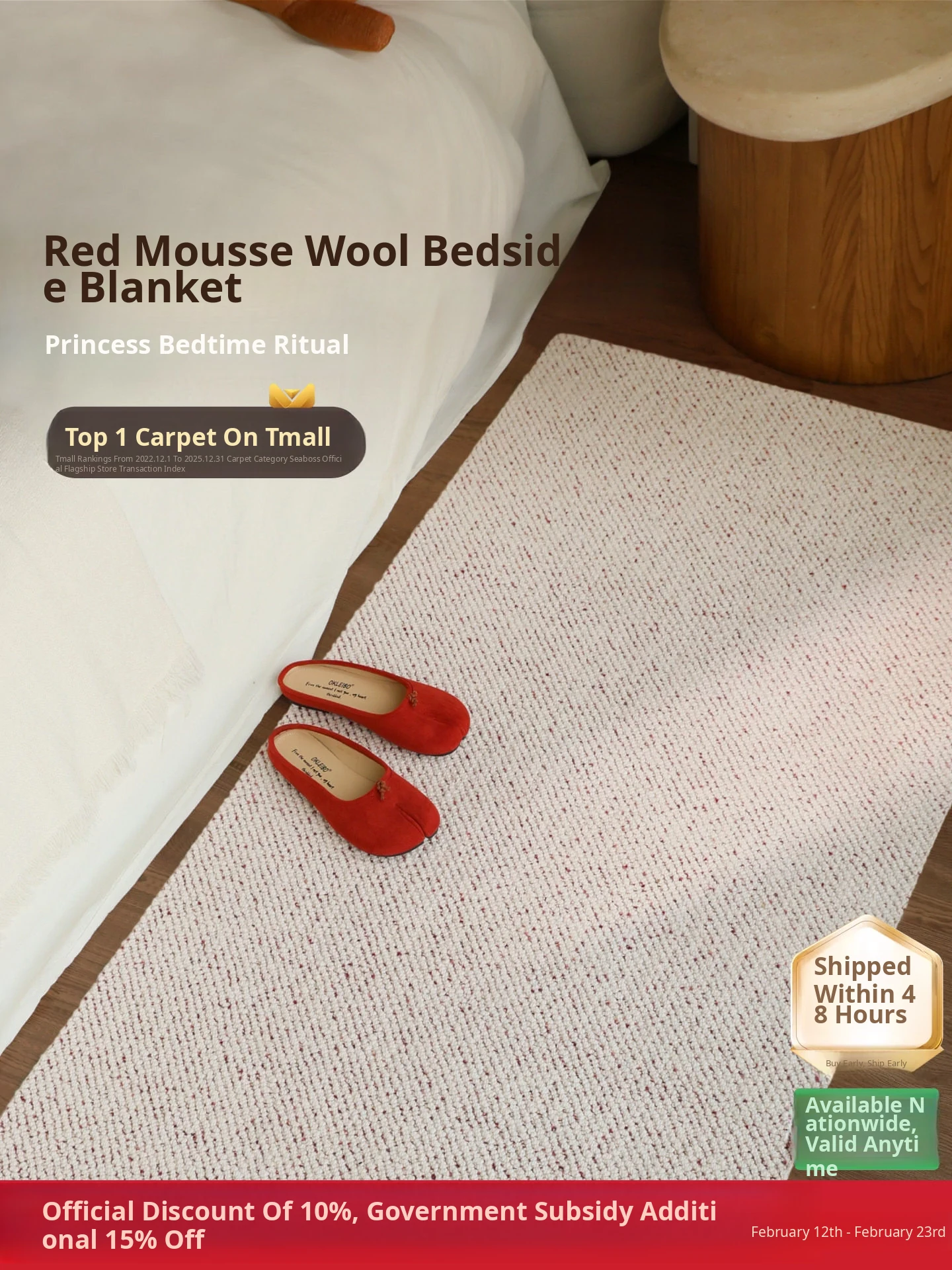 Sibose Red Mousse Wool Area Rug - Luxurious and Elegant Bedside Carpet for Bedroom, Living Room, and Bay Window; Perfect for Bedroom Foot or Room Décor