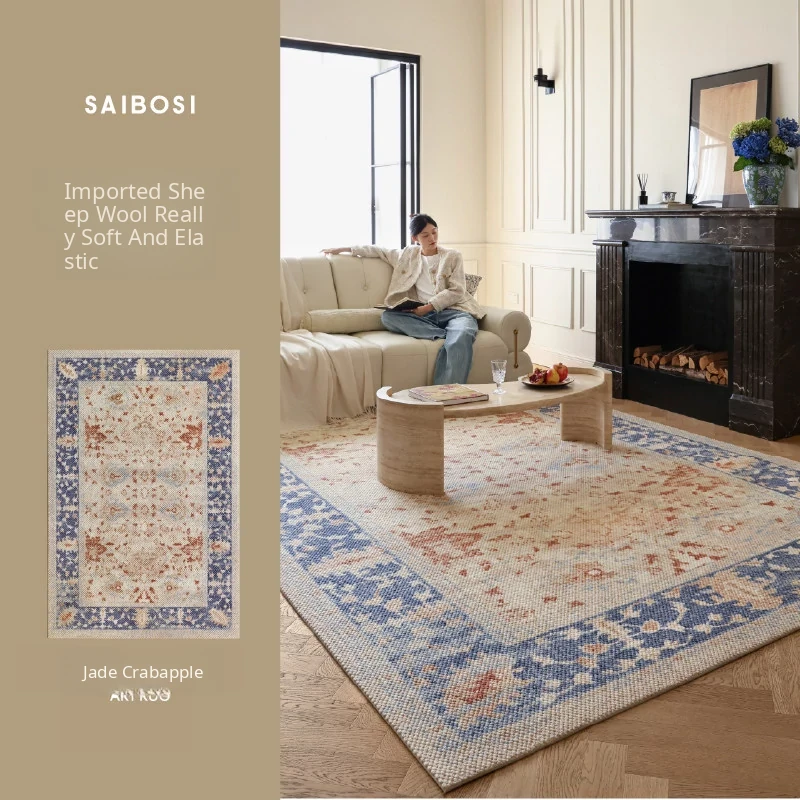 Sibosi Jade Blossom Imported Wool Carpet - Elegant Art Deco Style for Living Room and Bedroom with Modern Chinese Aesthetic