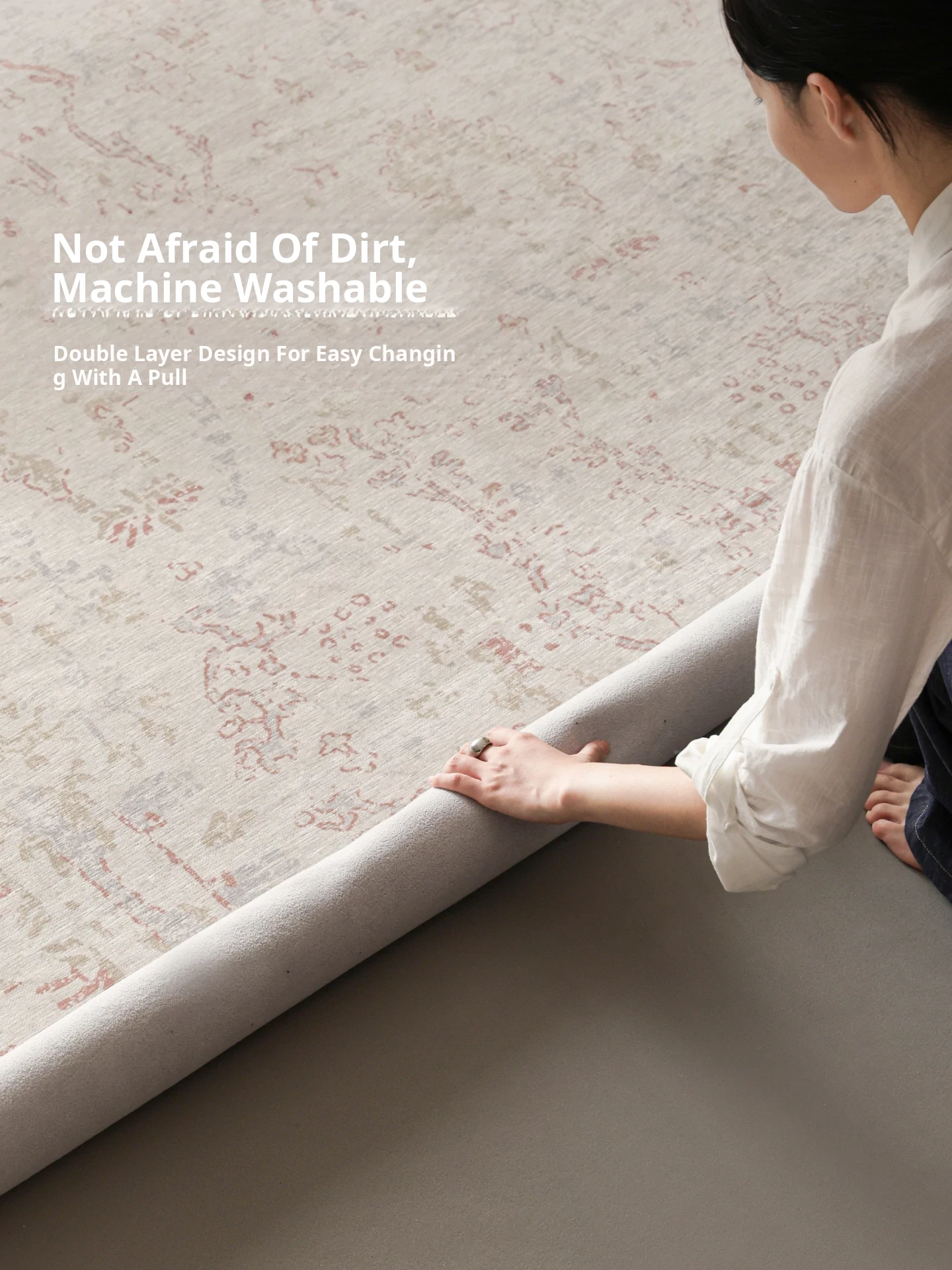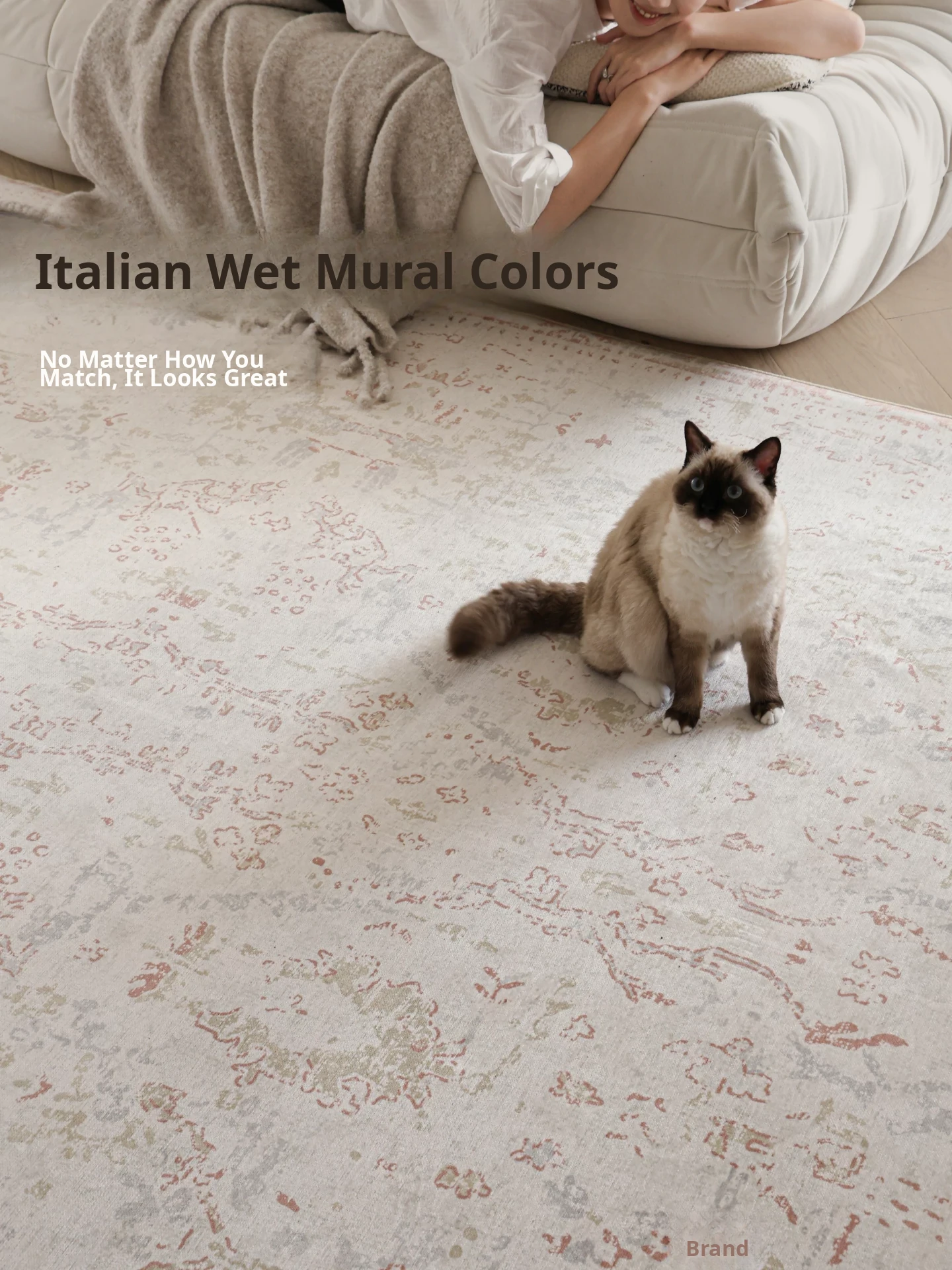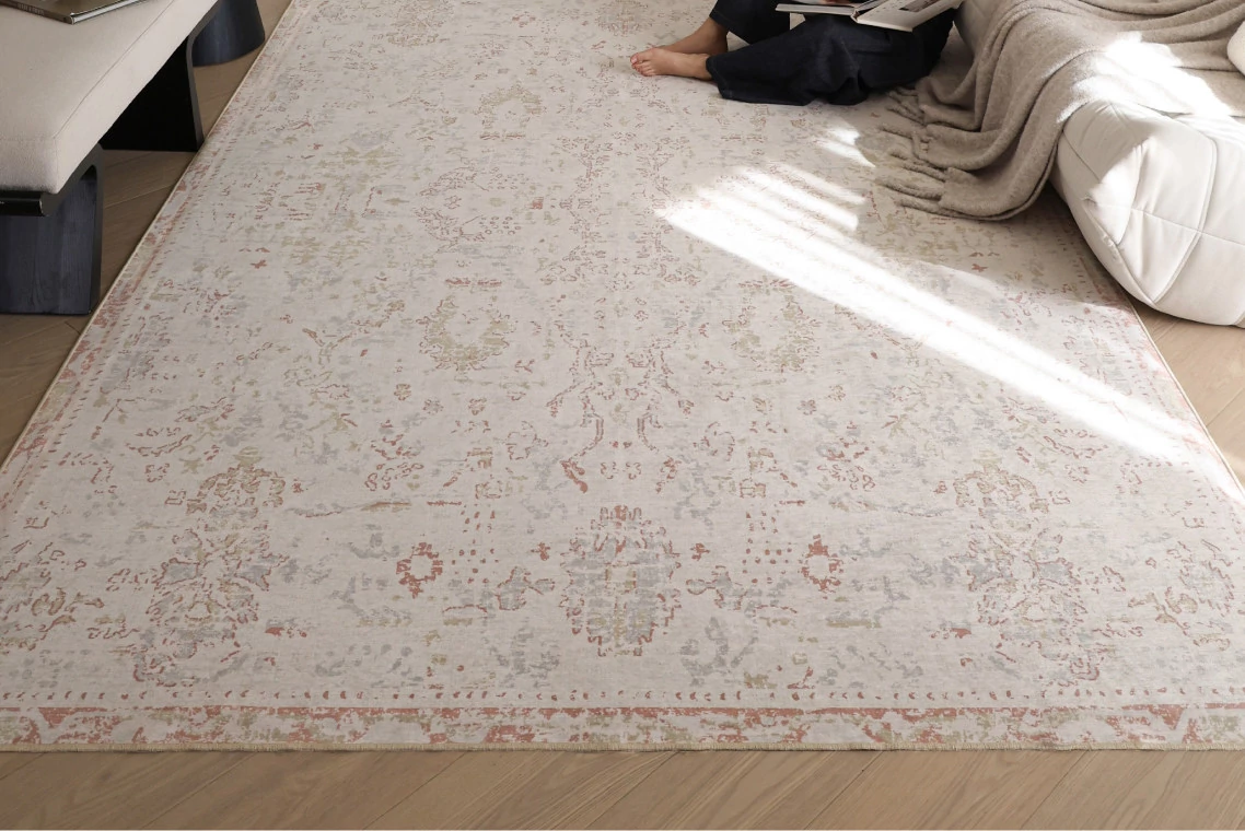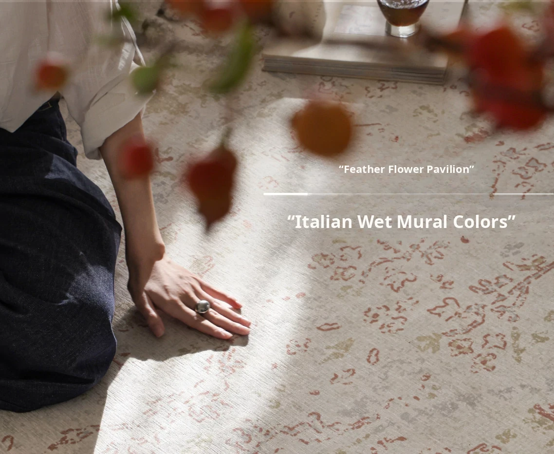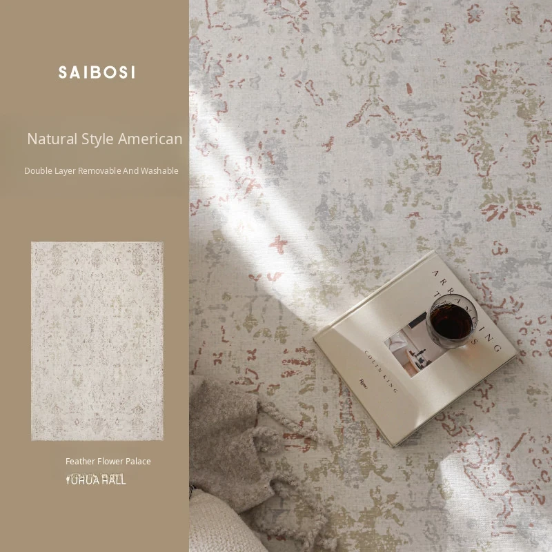 Sibosi Removable Double-Layer Carpet - Italy Fresco Luxurious Feather Palace Design, Perfect for Bedrooms and Living Rooms, Machine Washable for Easy Care