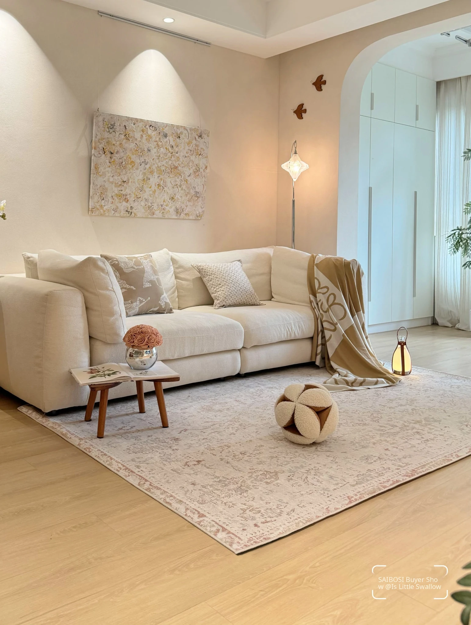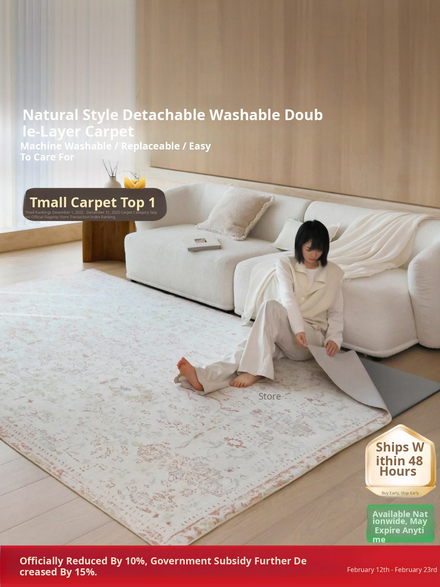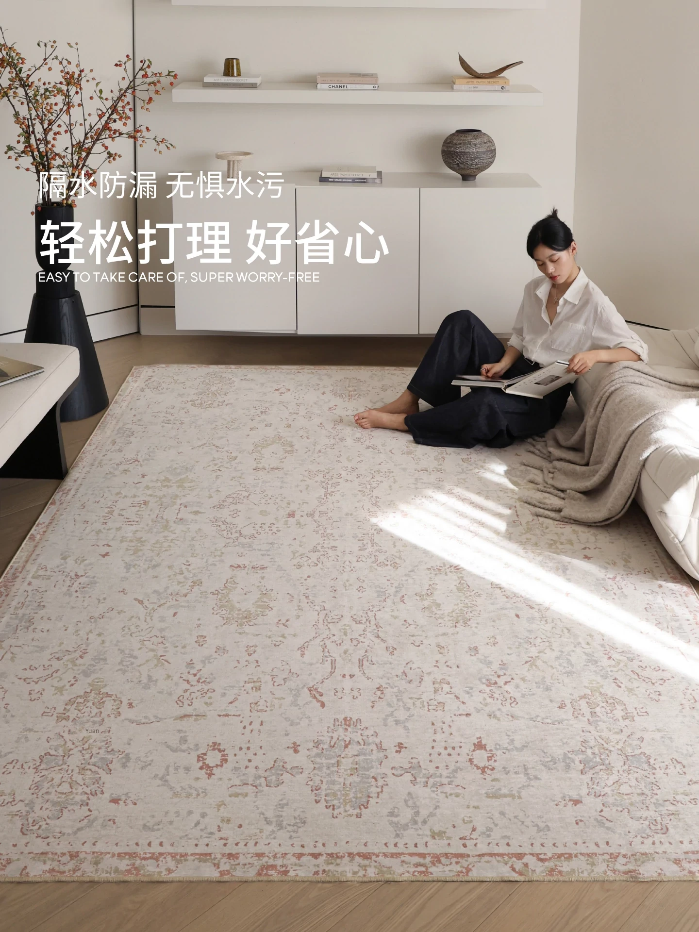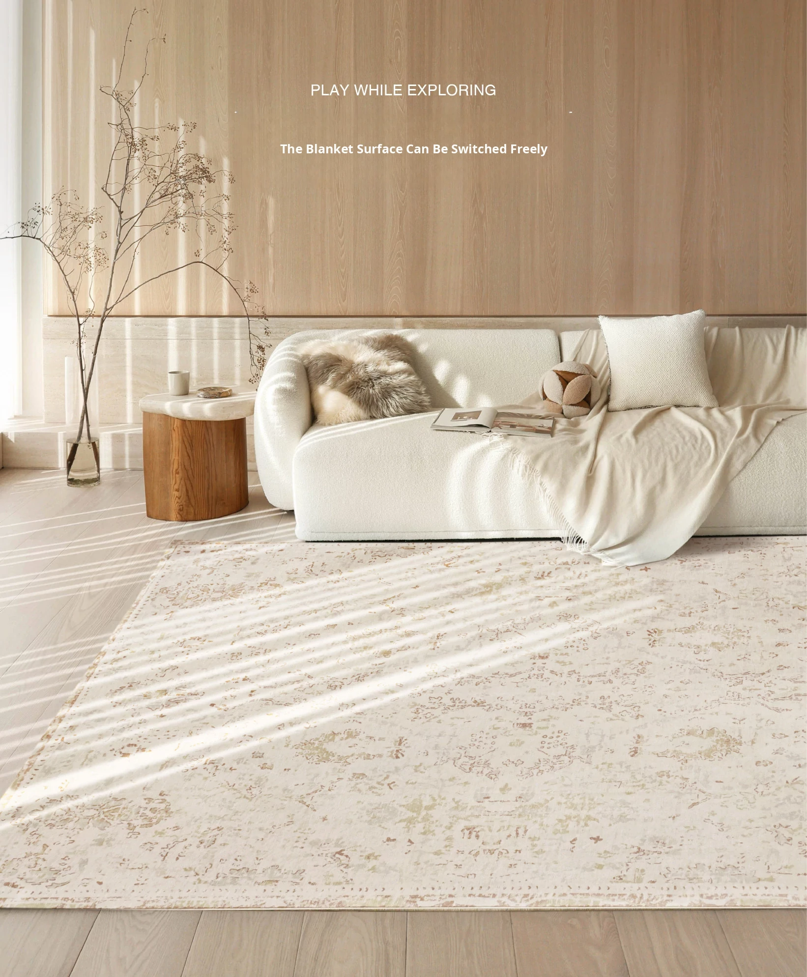 Sibosi Removable Double-Layer Carpet - Italy Fresco Luxurious Feather Palace Design, Perfect for Bedrooms and Living Rooms, Machine Washable for Easy Care