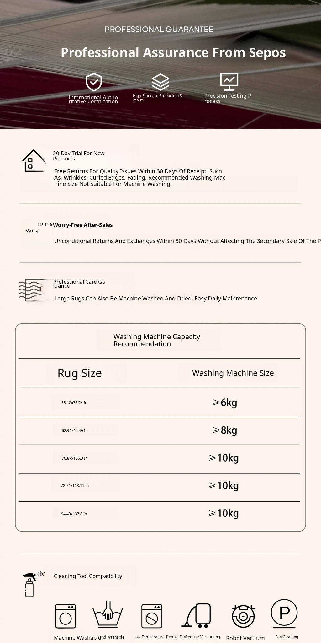 200×118.11in (Carpet Surface + 0.43in Carpet Base)