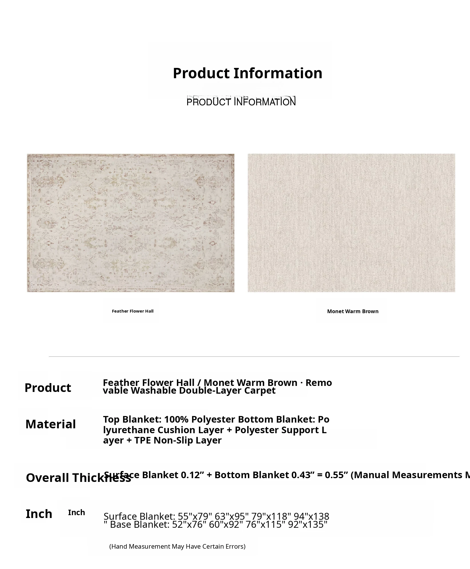 140×78.74in (Carpet Surface + 0.43in Carpet Base)