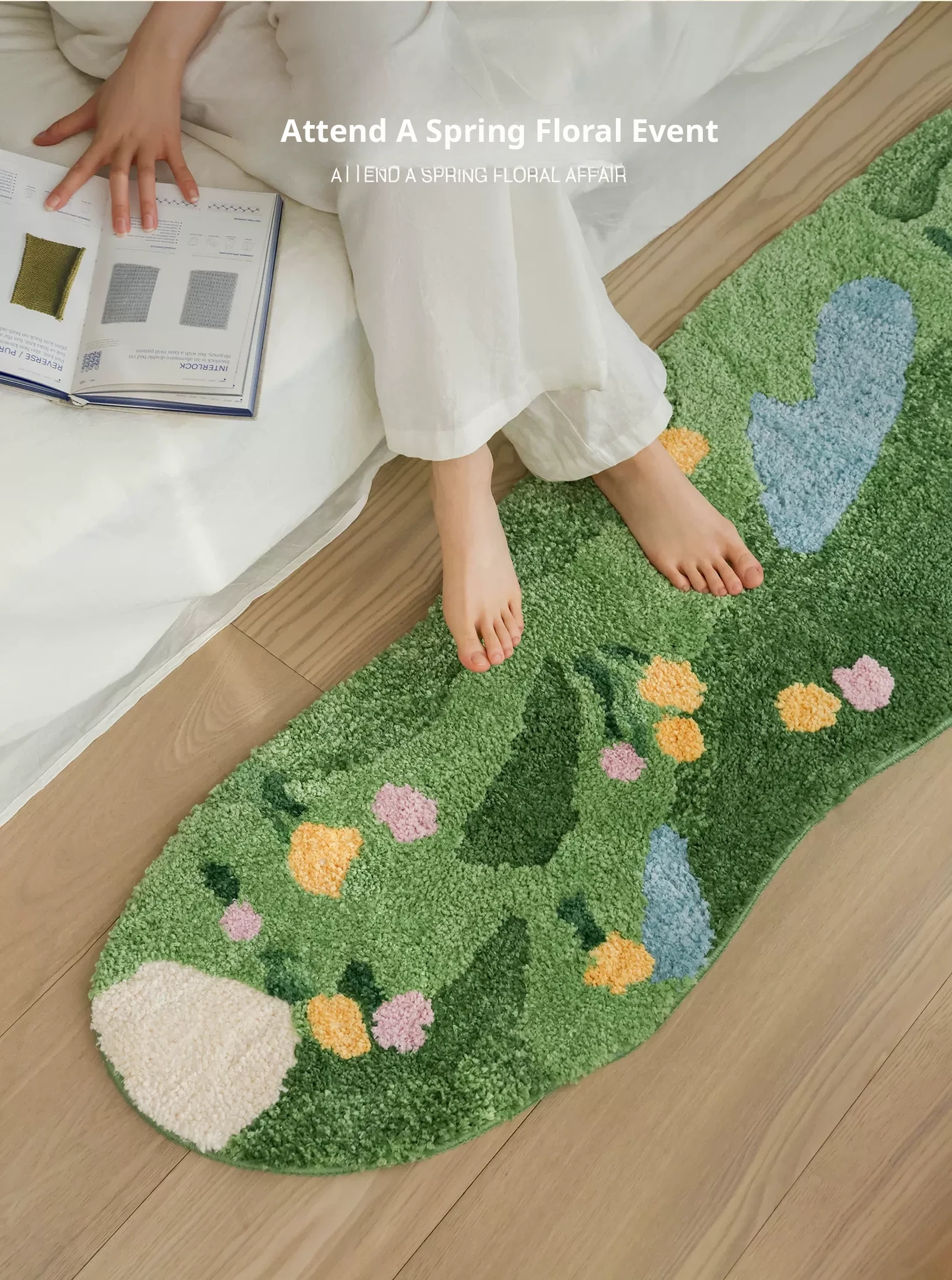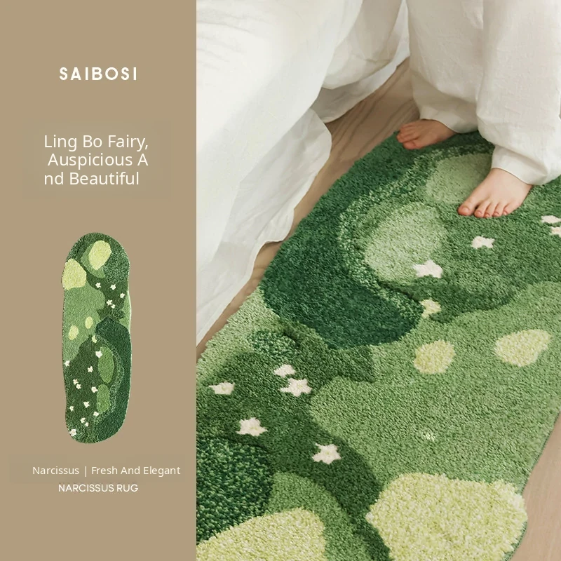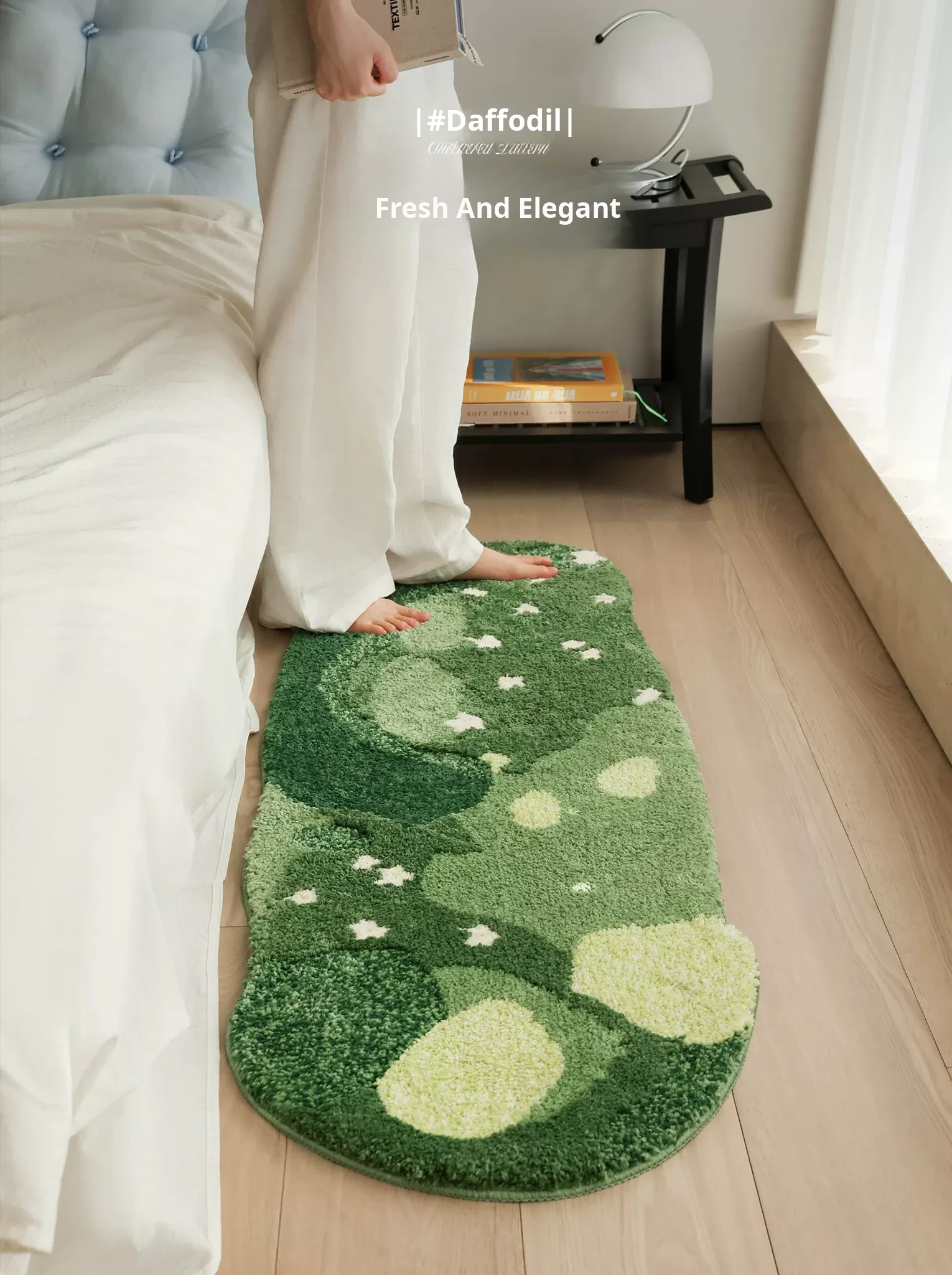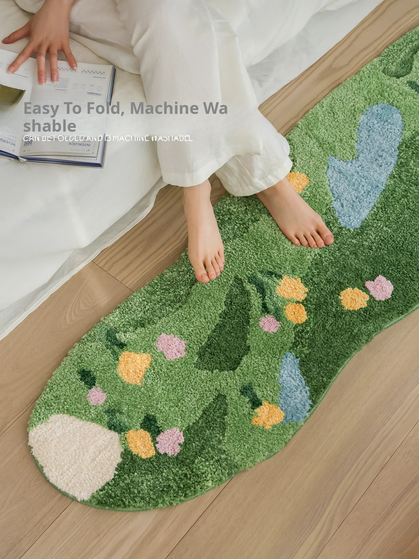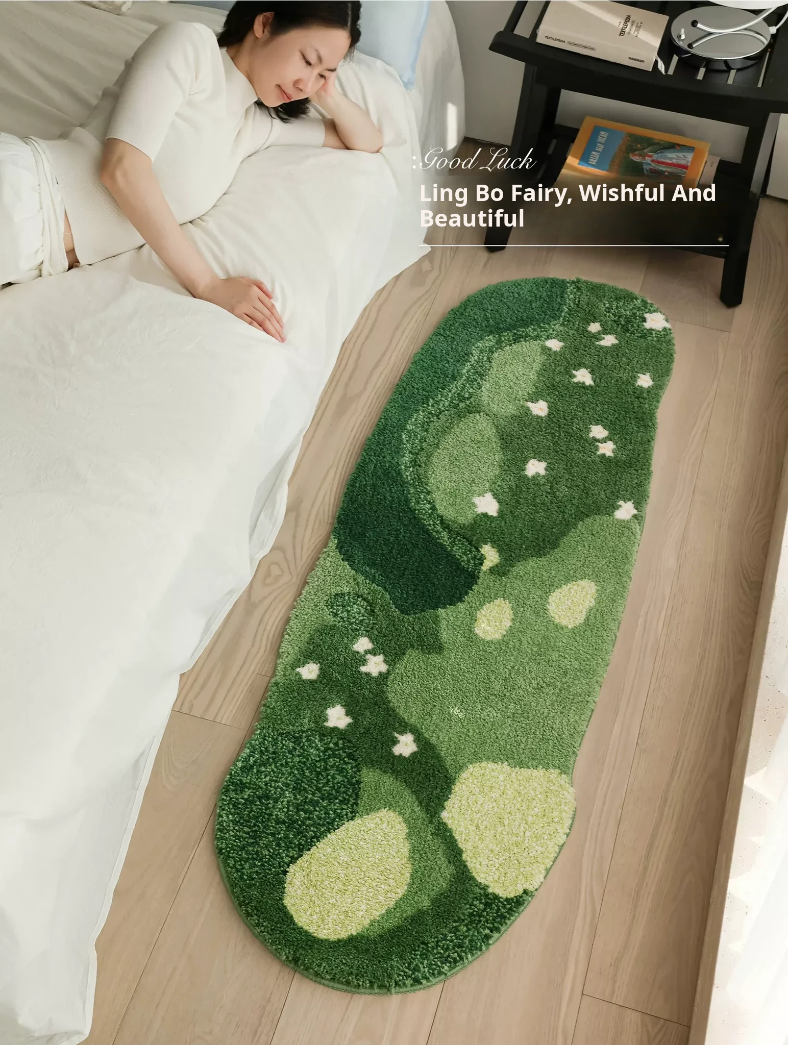 Sibosi Unique Long Green Bedside Rug - Soft, Non-Slip, Luxurious Feel for Bedroom, Bay Window, Walk-in Closet, and Living Room Decor
