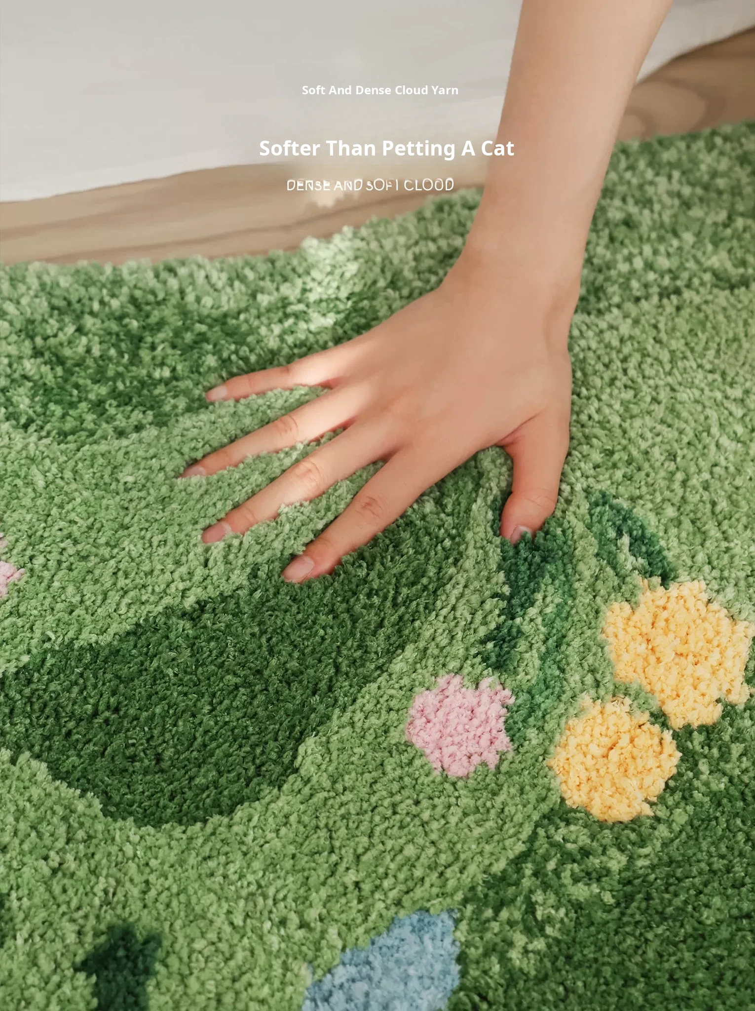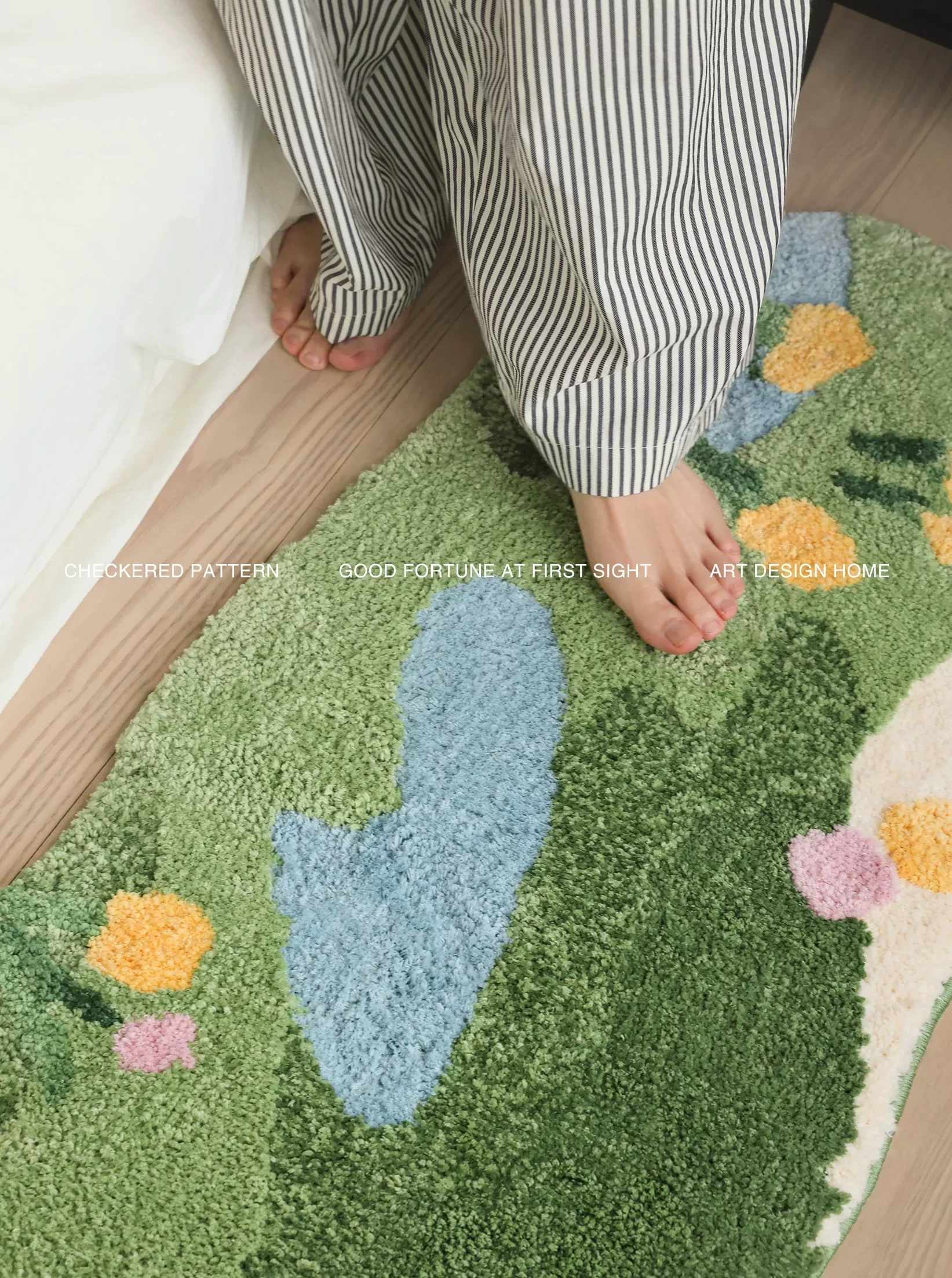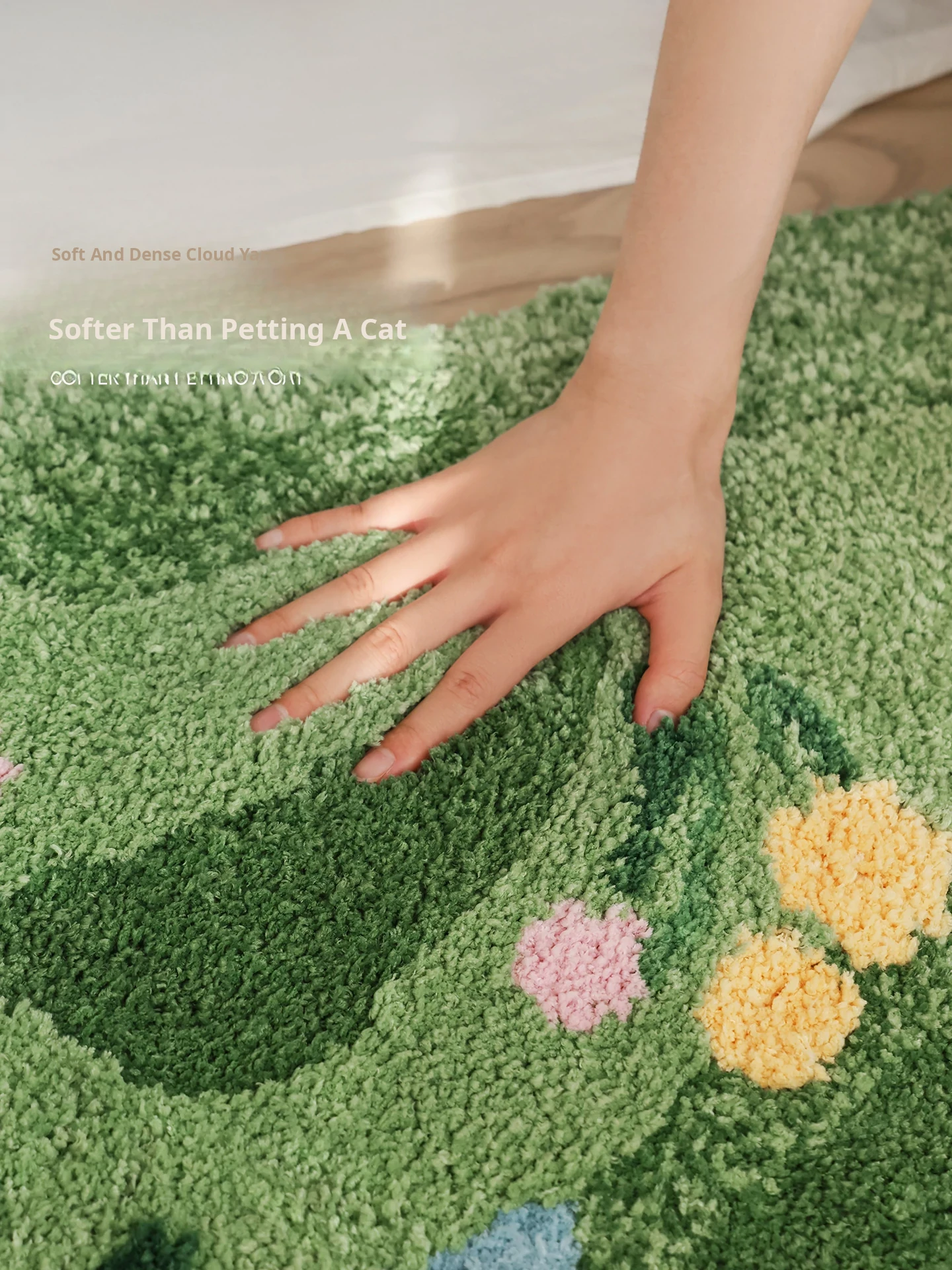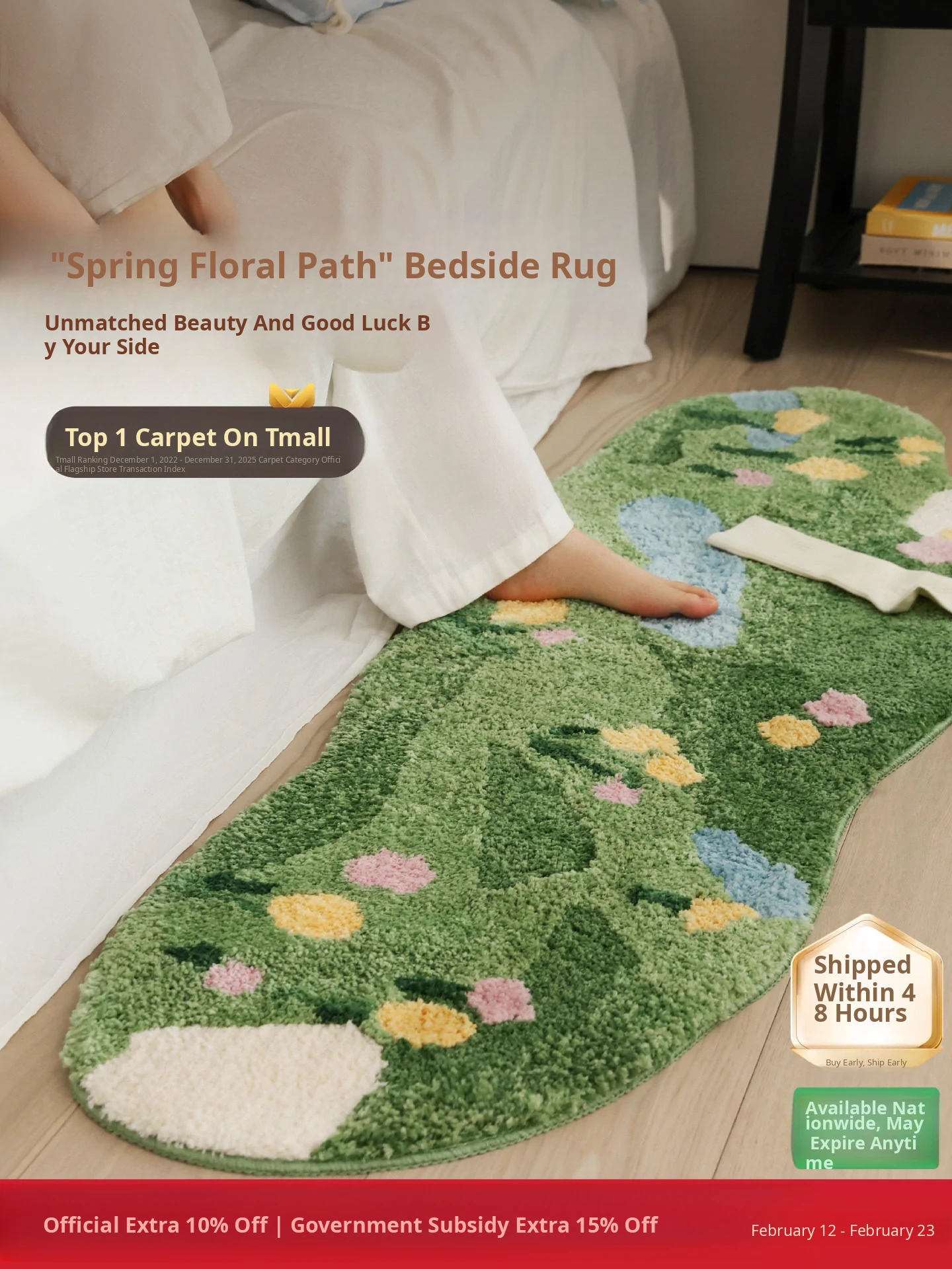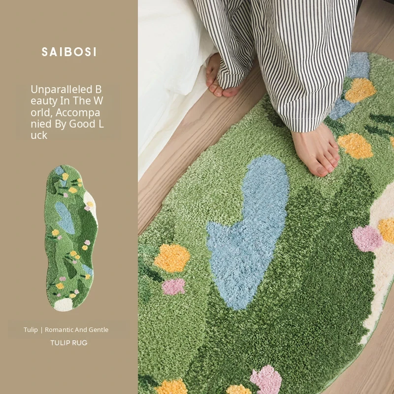 Sibosi Unique Long Green Bedside Rug - Soft, Non-Slip, Luxurious Feel for Bedroom, Bay Window, Walk-in Closet, and Living Room Decor
