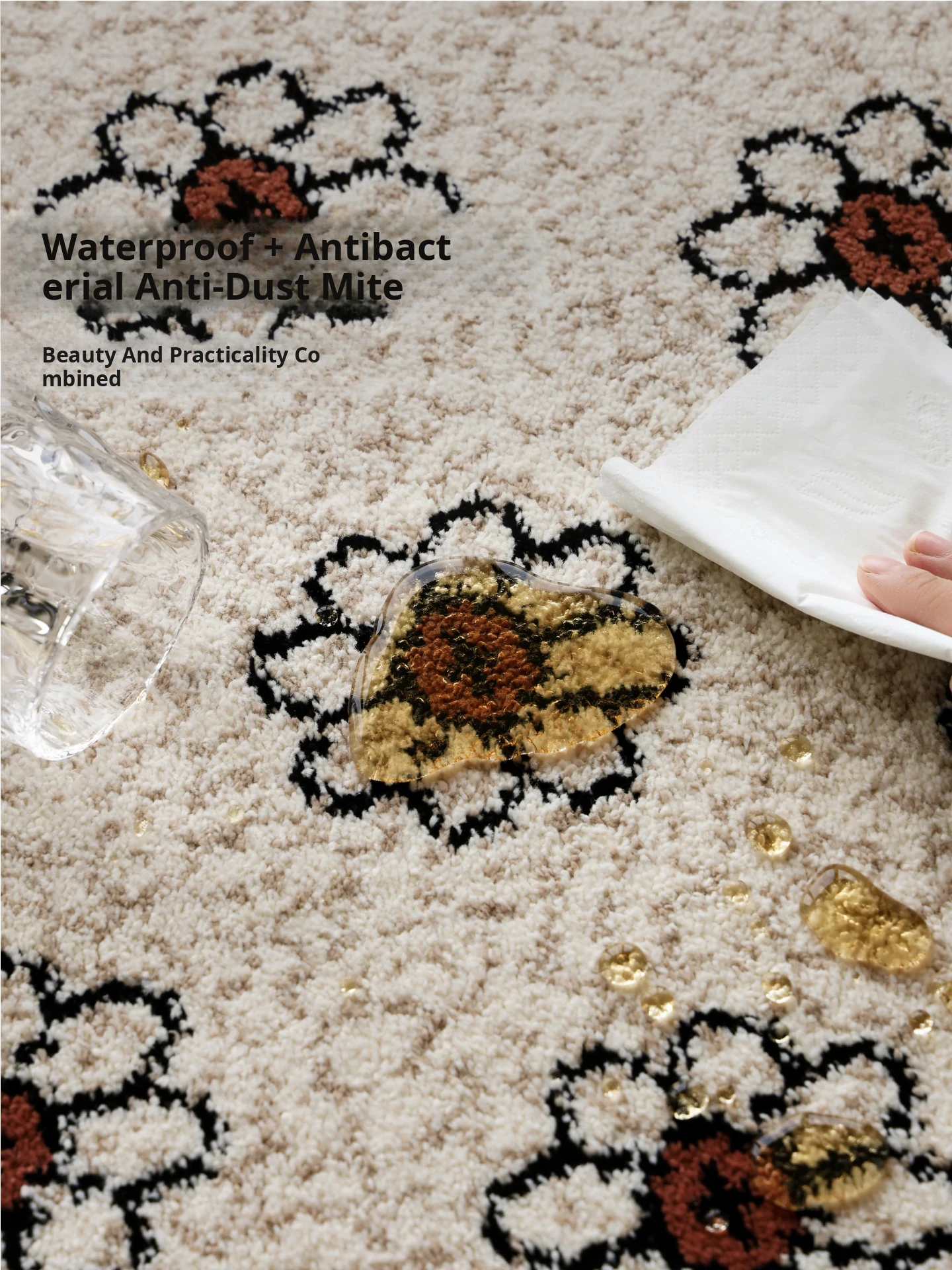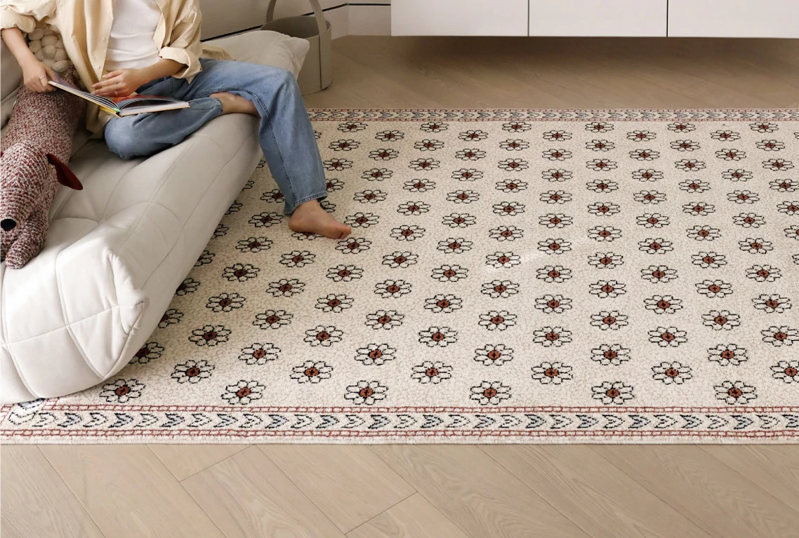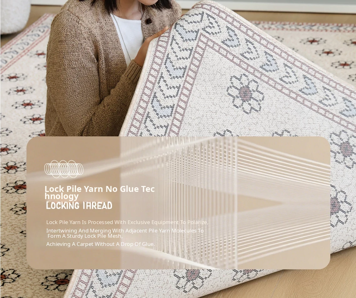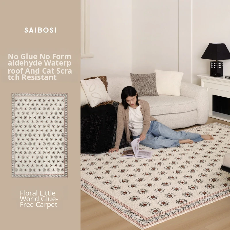 Sipos Floral Wonderland Adhesive-Free Waterproof Rug - Modern American Style for Living Room and Bedroom, Elevate Your Space with Luxury and Chic French Touch