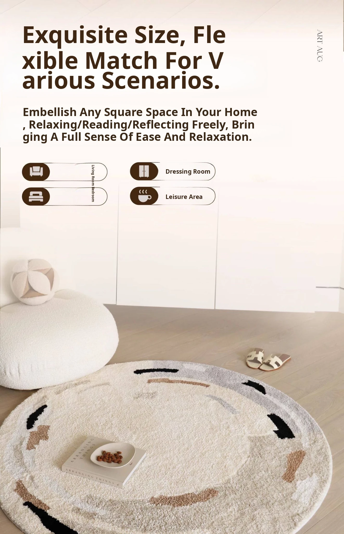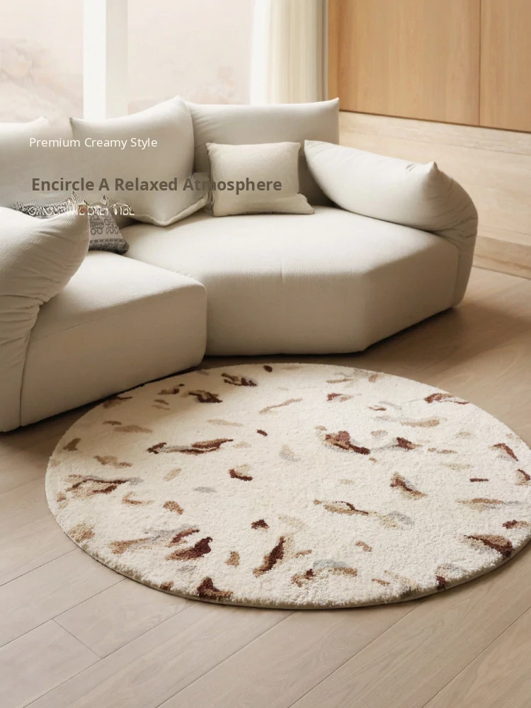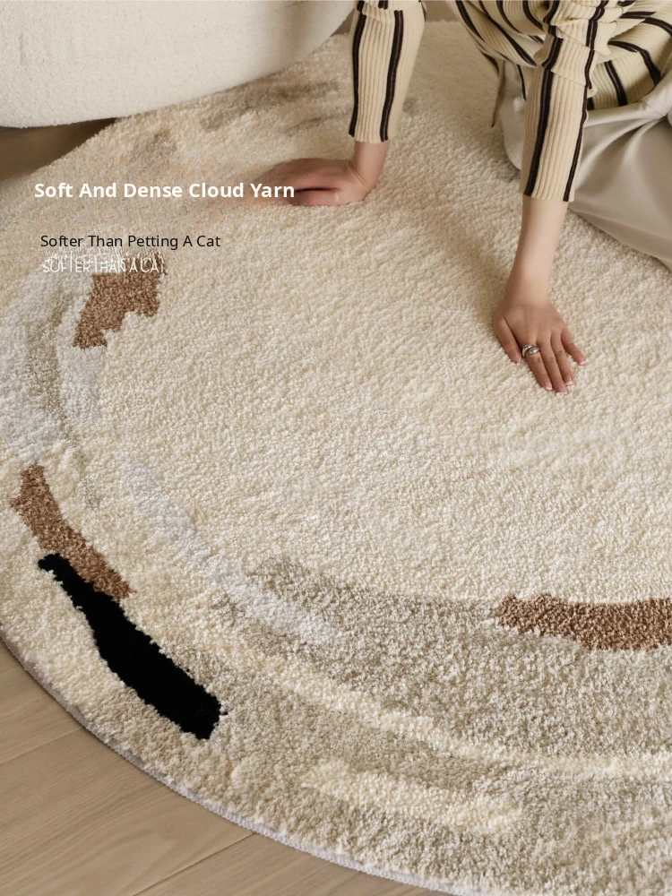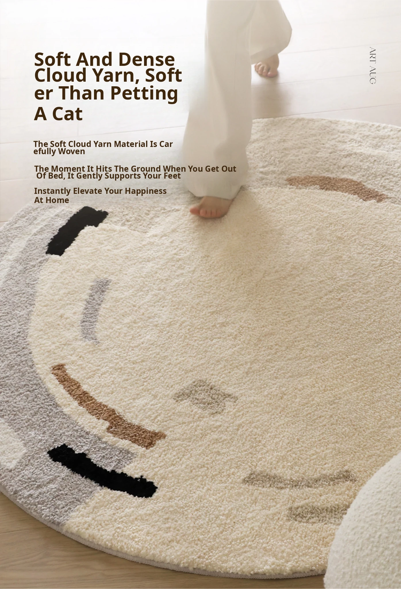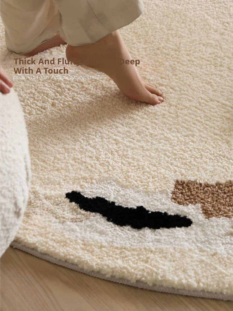 Soft Creamy Round Carpet with Heart-Shaped Design - Perfect for Cat Lovers, Ideal for Bedroom and Living Room, Cozy Accent for Chairs in Your Beautiful Retreat.