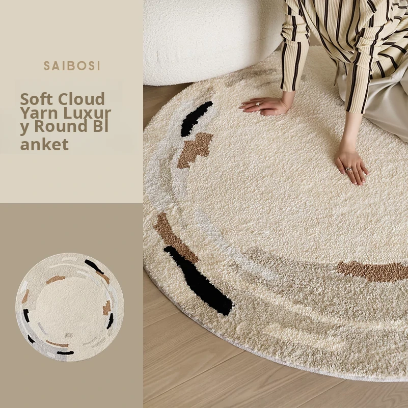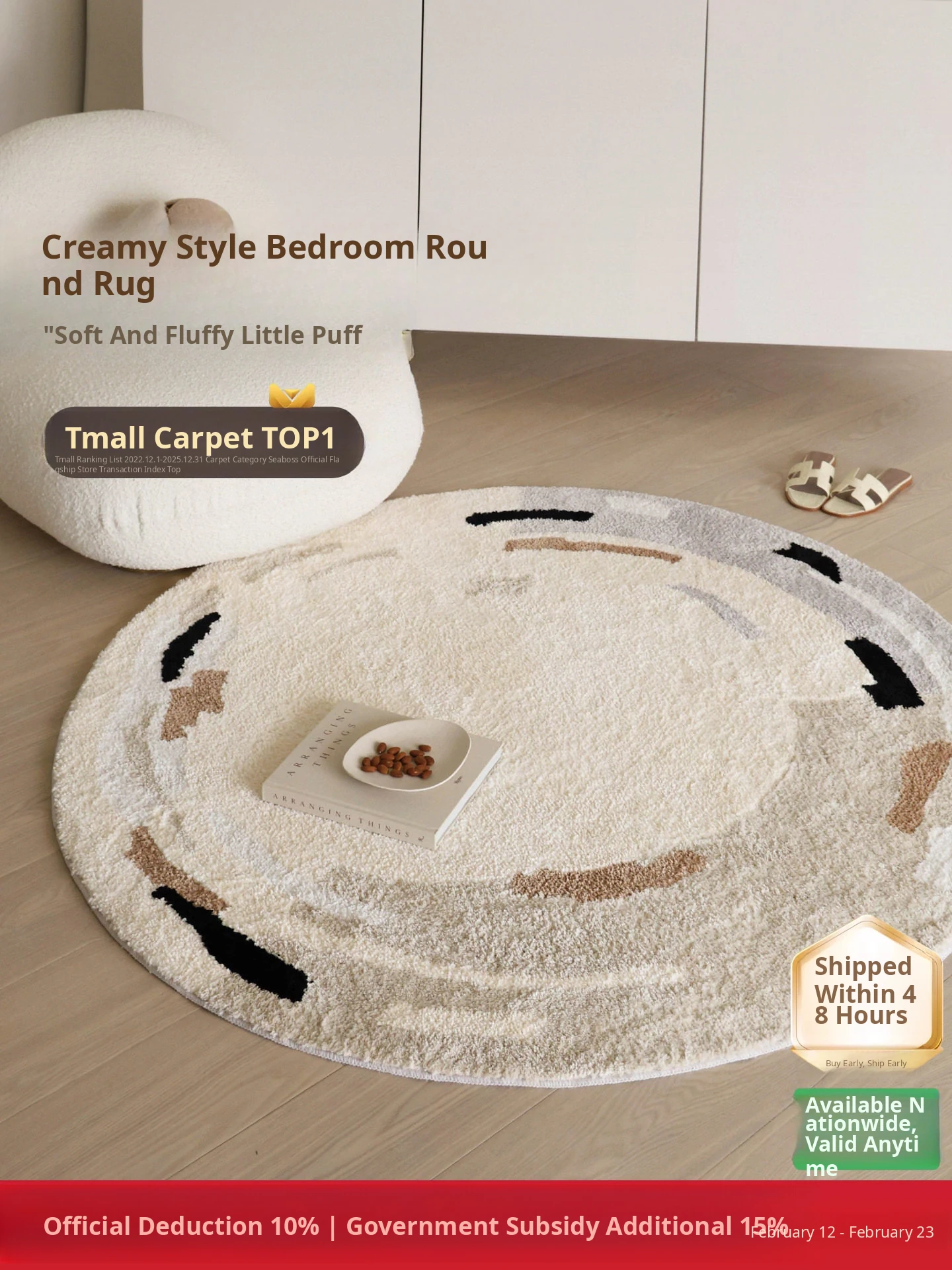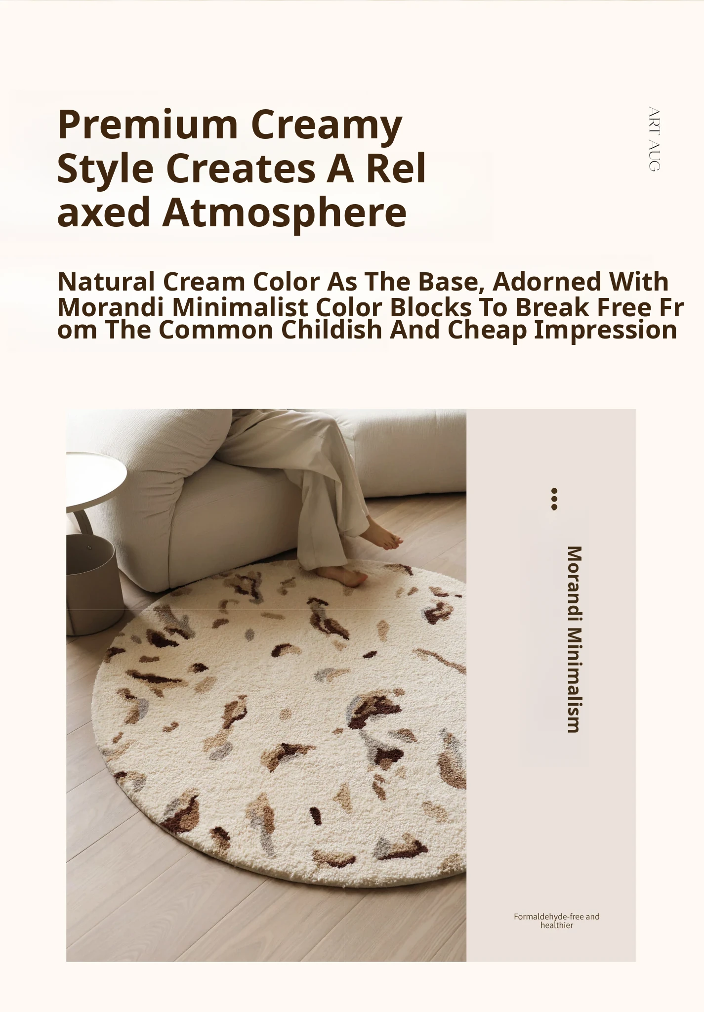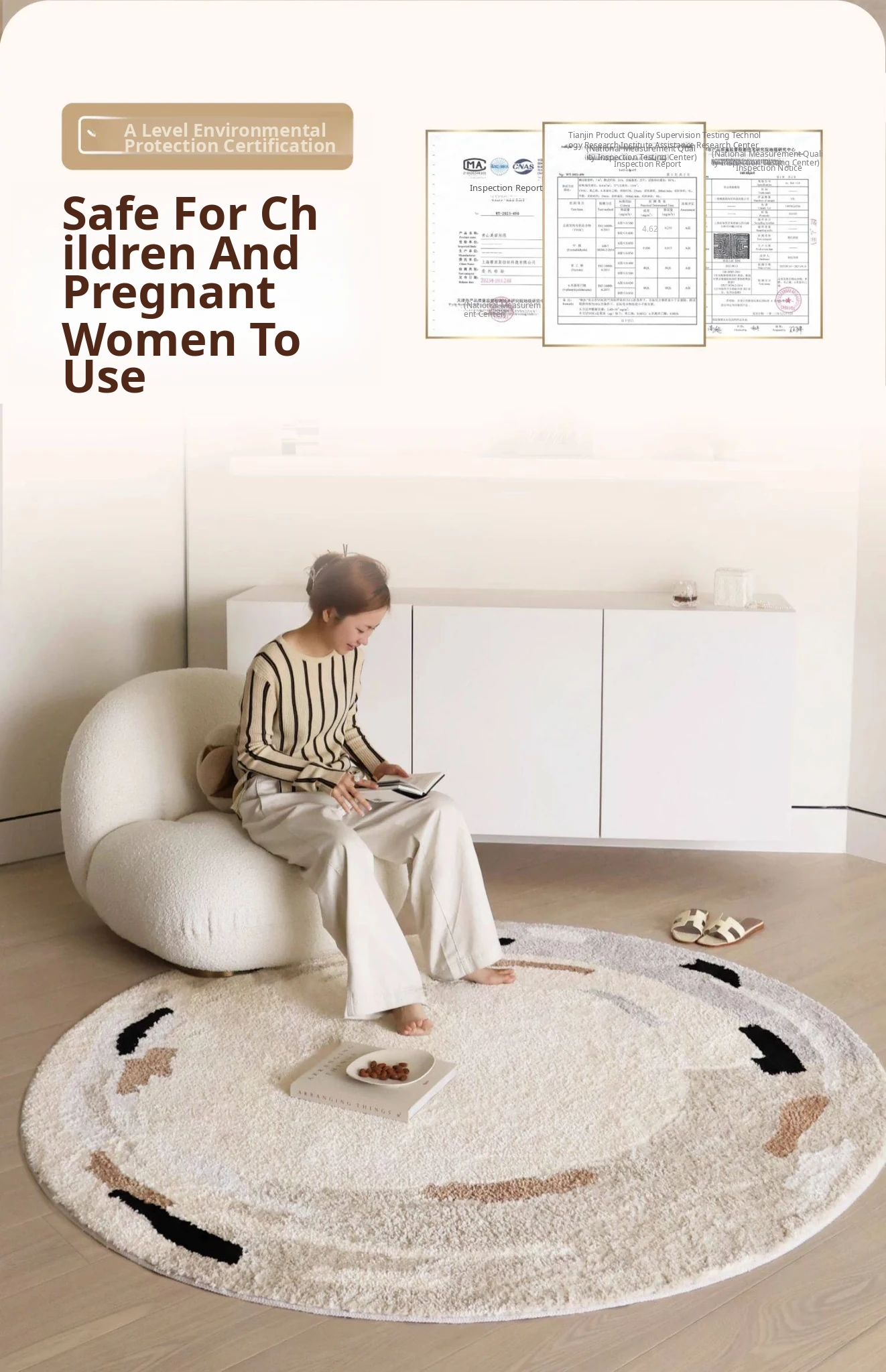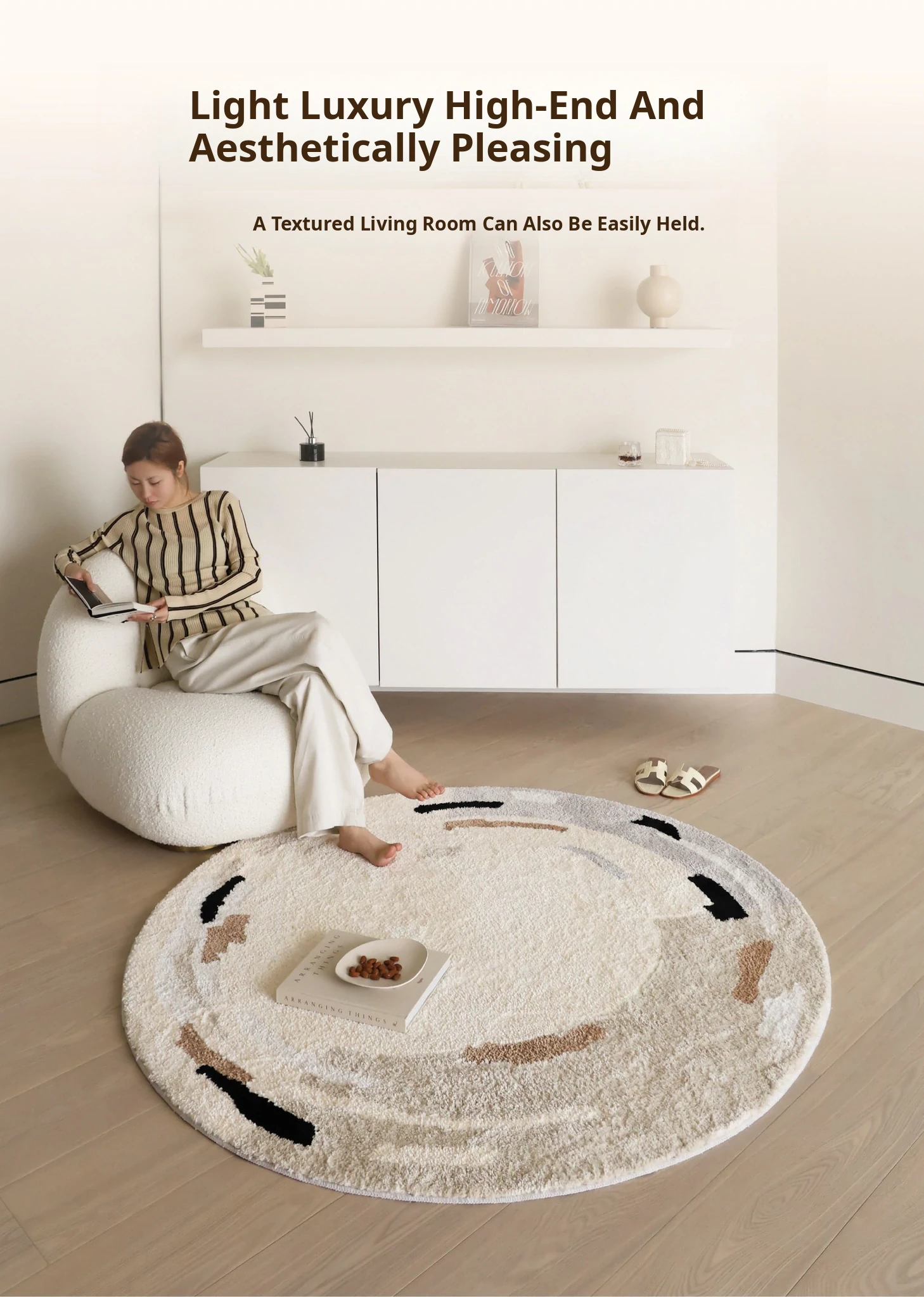 Soft Creamy Round Carpet with Heart-Shaped Design - Perfect for Cat Lovers, Ideal for Bedroom and Living Room, Cozy Accent for Chairs in Your Beautiful Retreat.