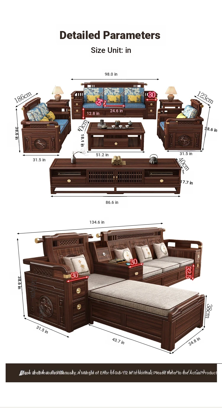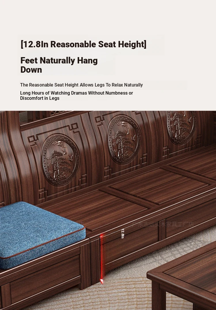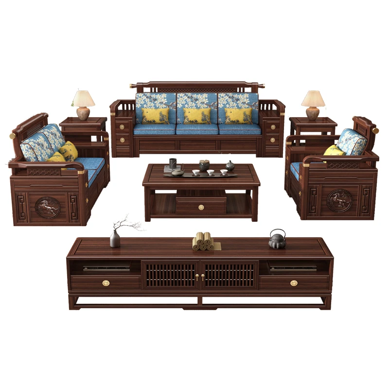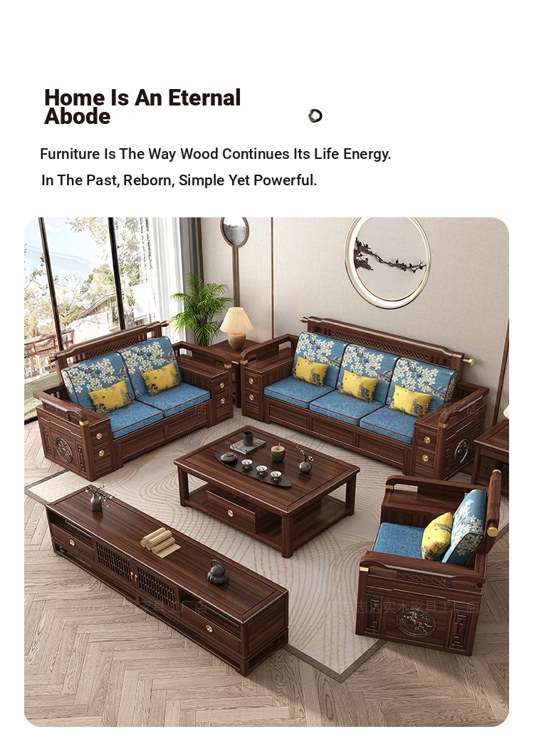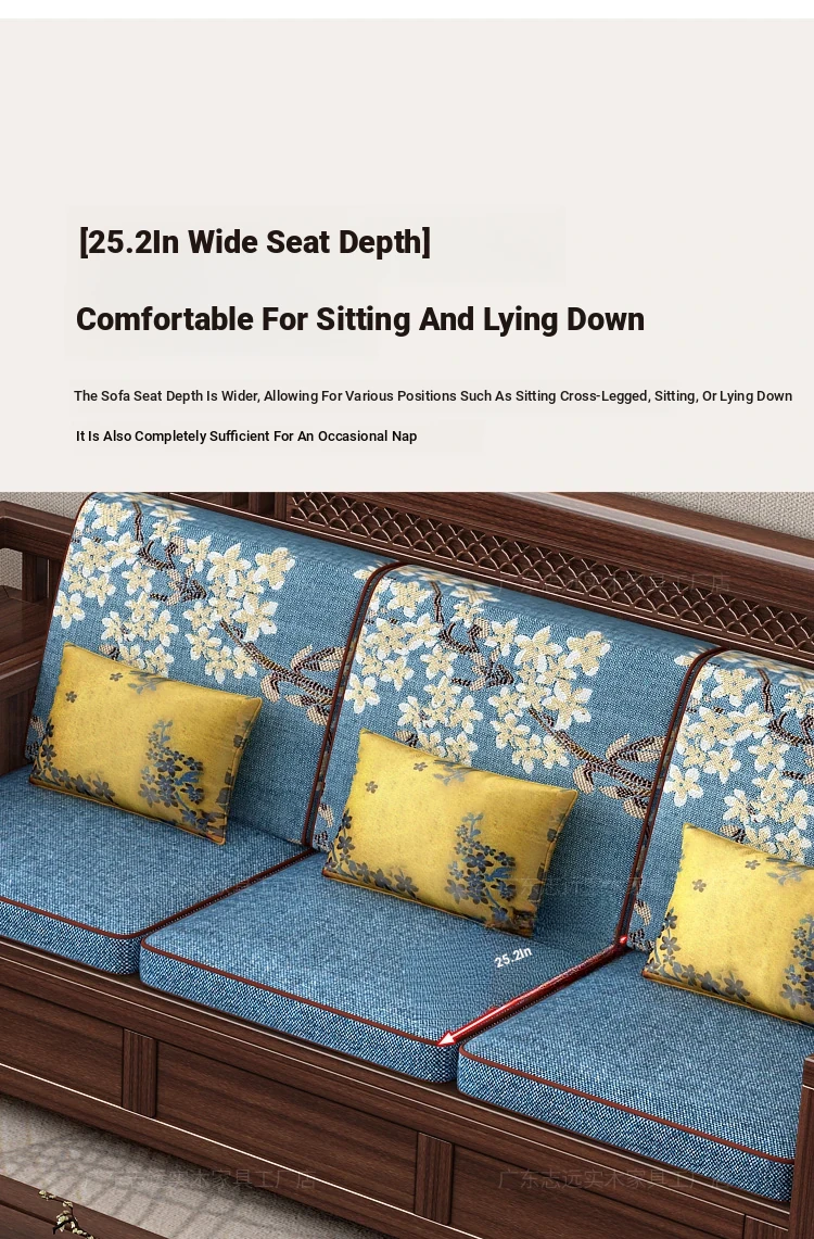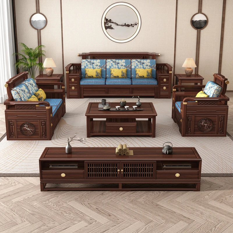 Solid Walnut Wood Sofa with Corner Chaise - Versatile for Summer and Winter, Featuring Storage Space - New Chinese Style Living Room Furniture