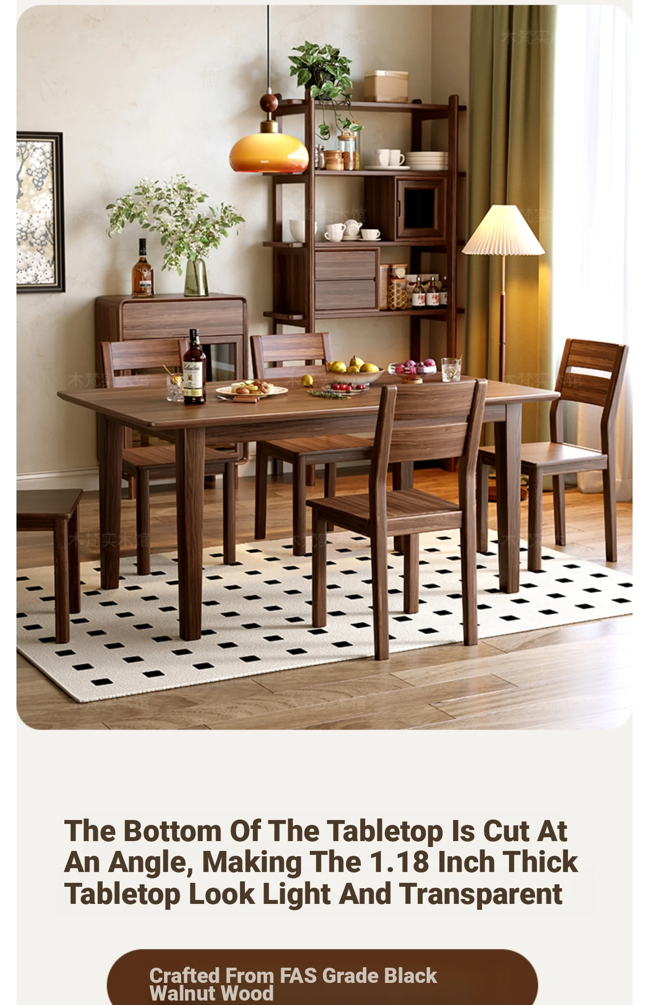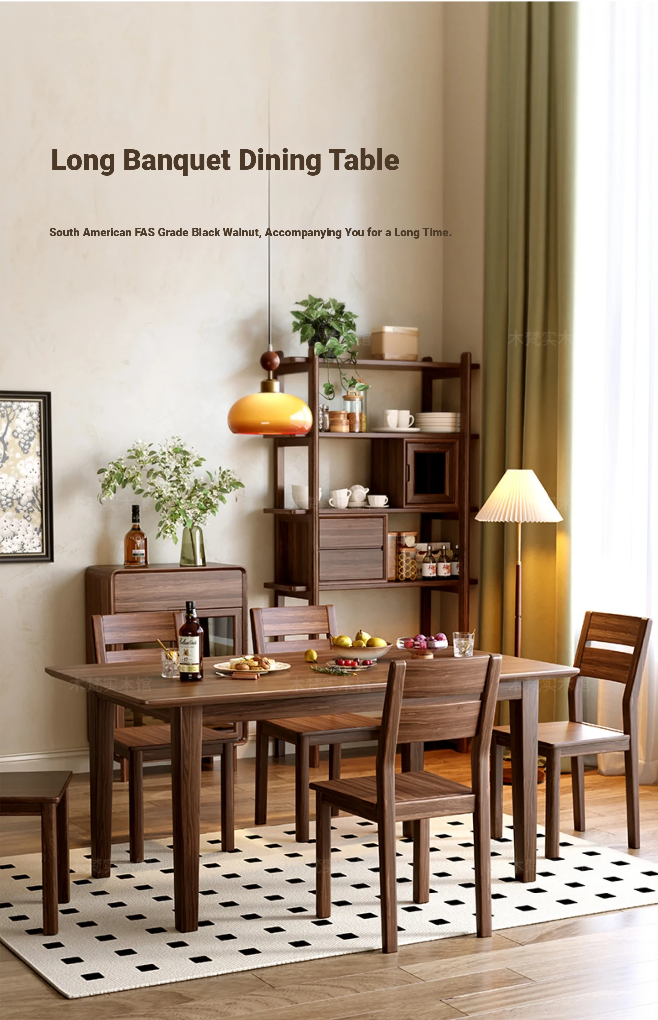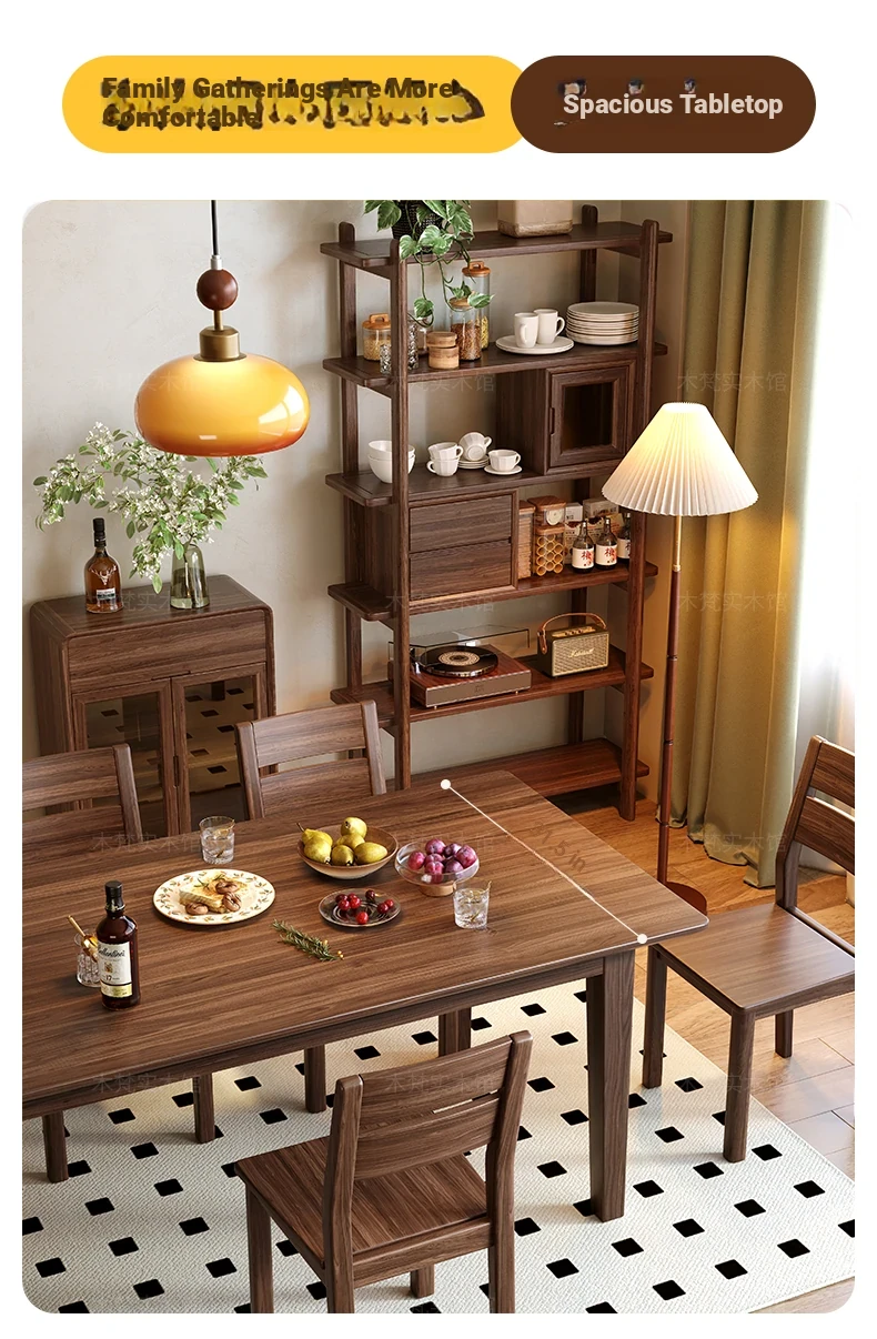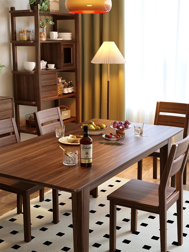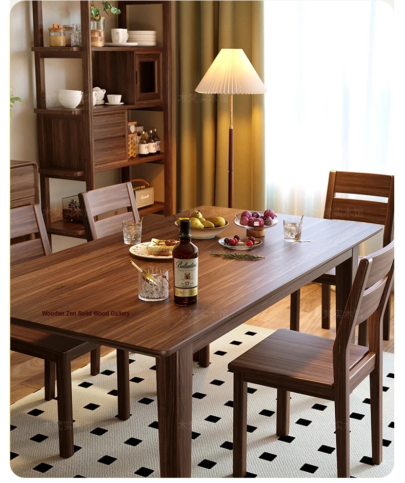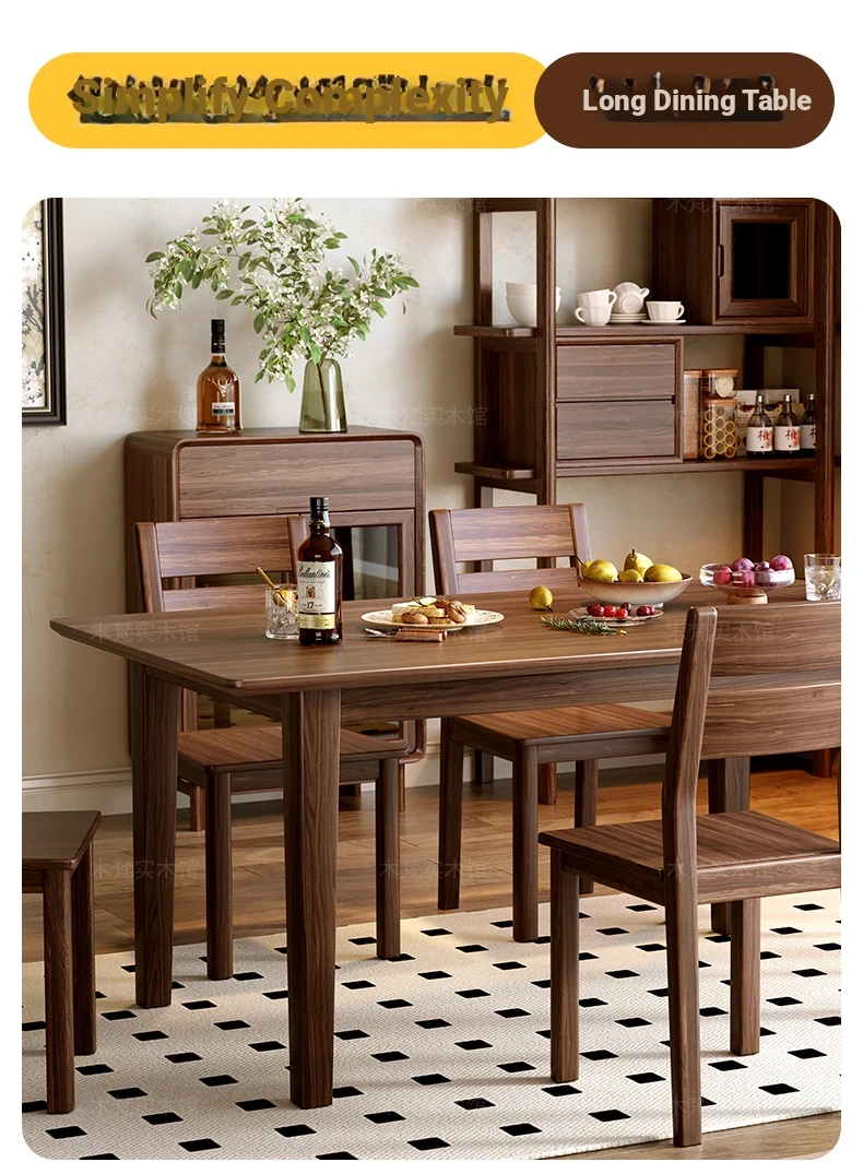 South American Black Walnut Solid Wood Dining Table - Rectangular, Large Plank Table for Home, Japanese Style Long Table, Modern Minimalist Natural Wood Design