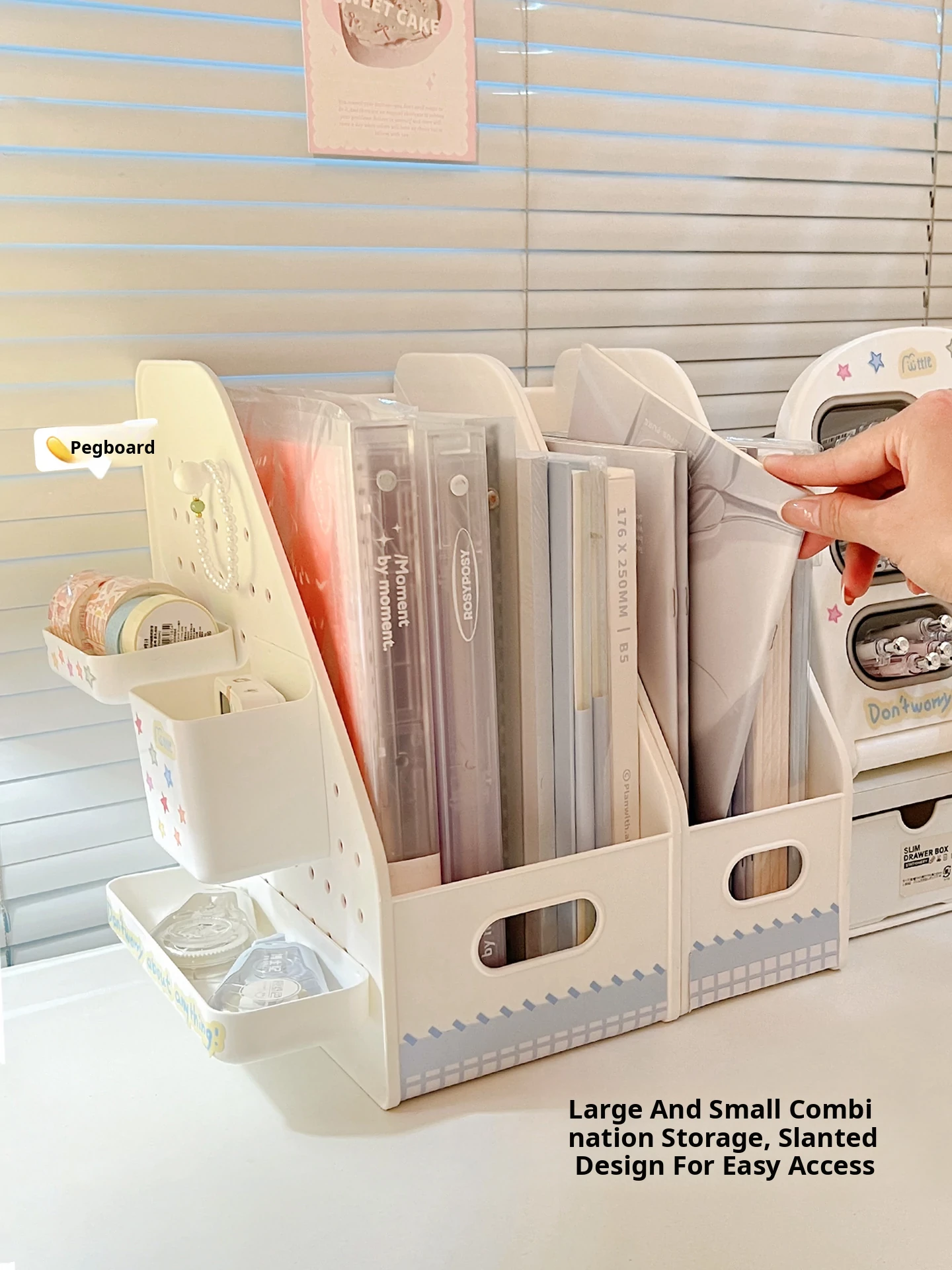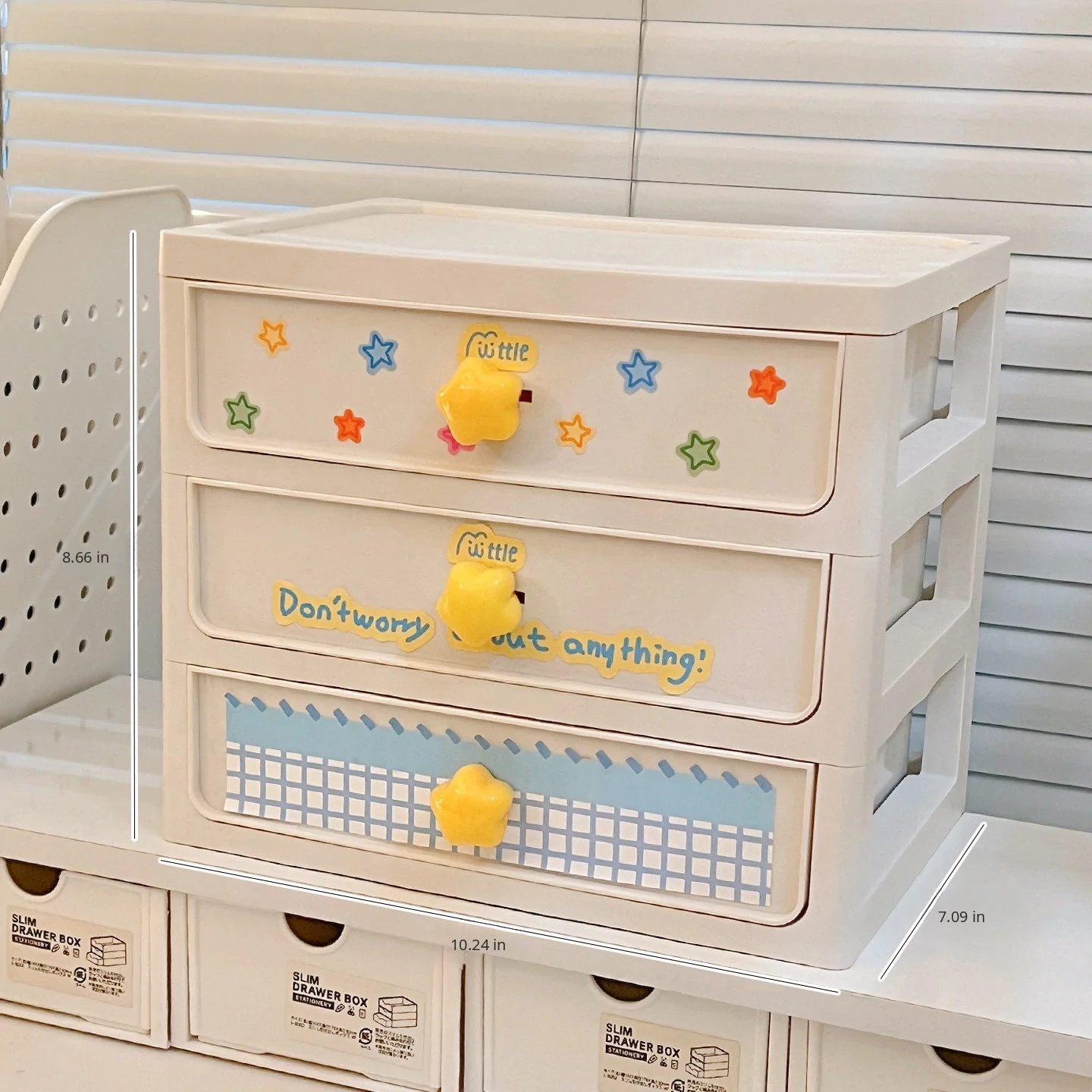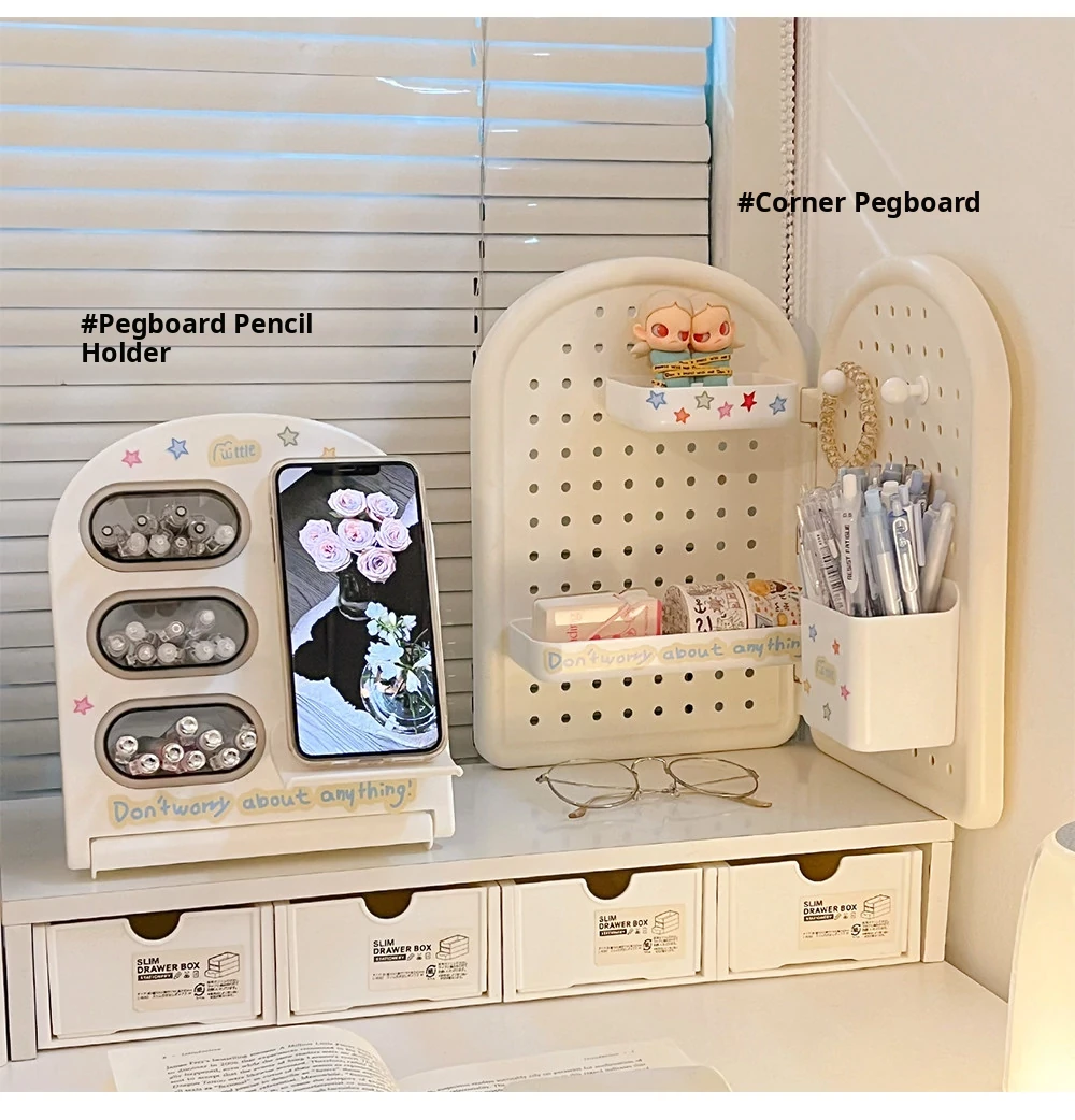 Student Dormitory Desktop Organizer Set - Drawer Storage Box for Office Supplies, Books, and Stationery with Vertical Dividers and Pen Holder【Maximize Your Study Space】
