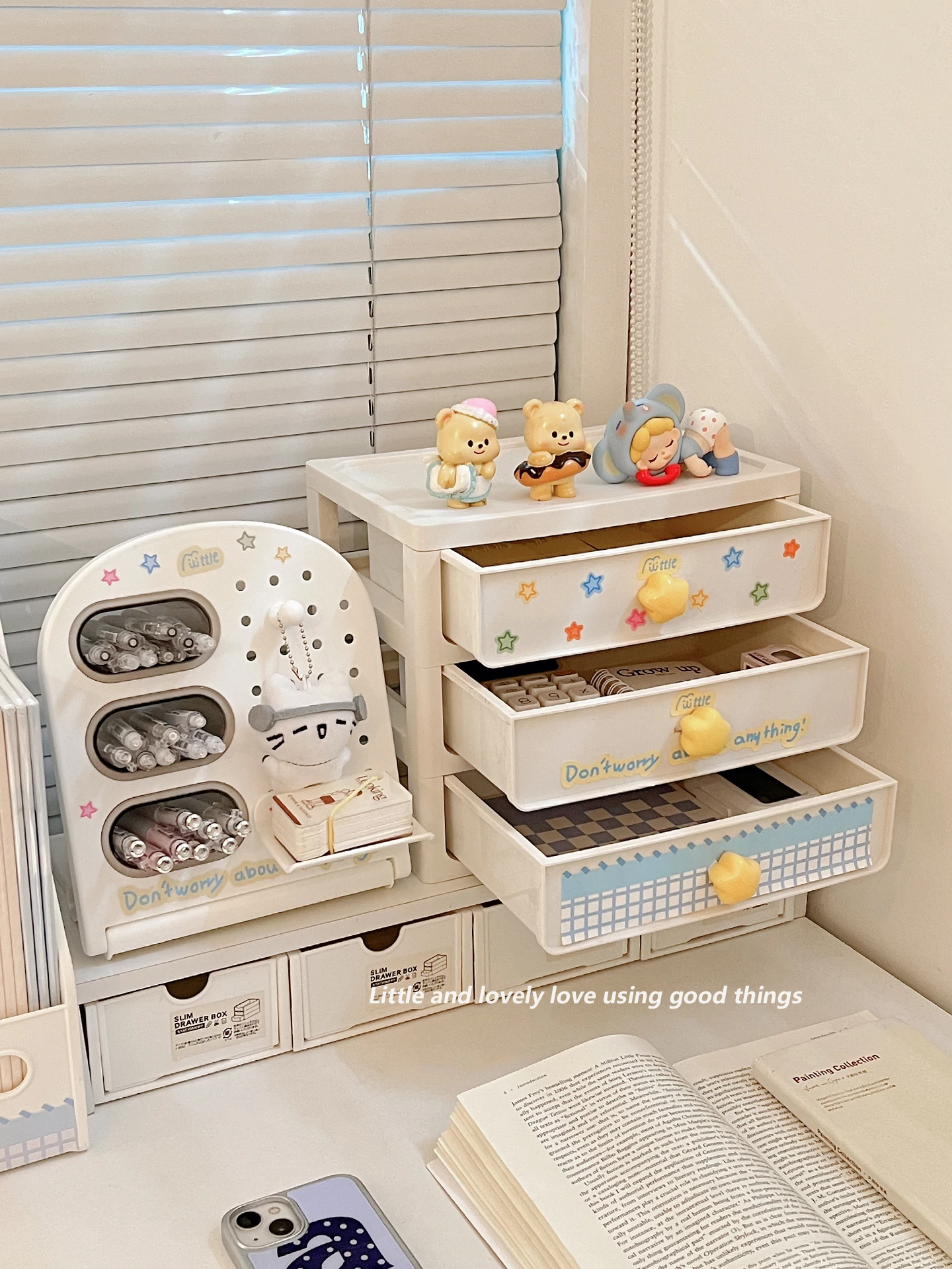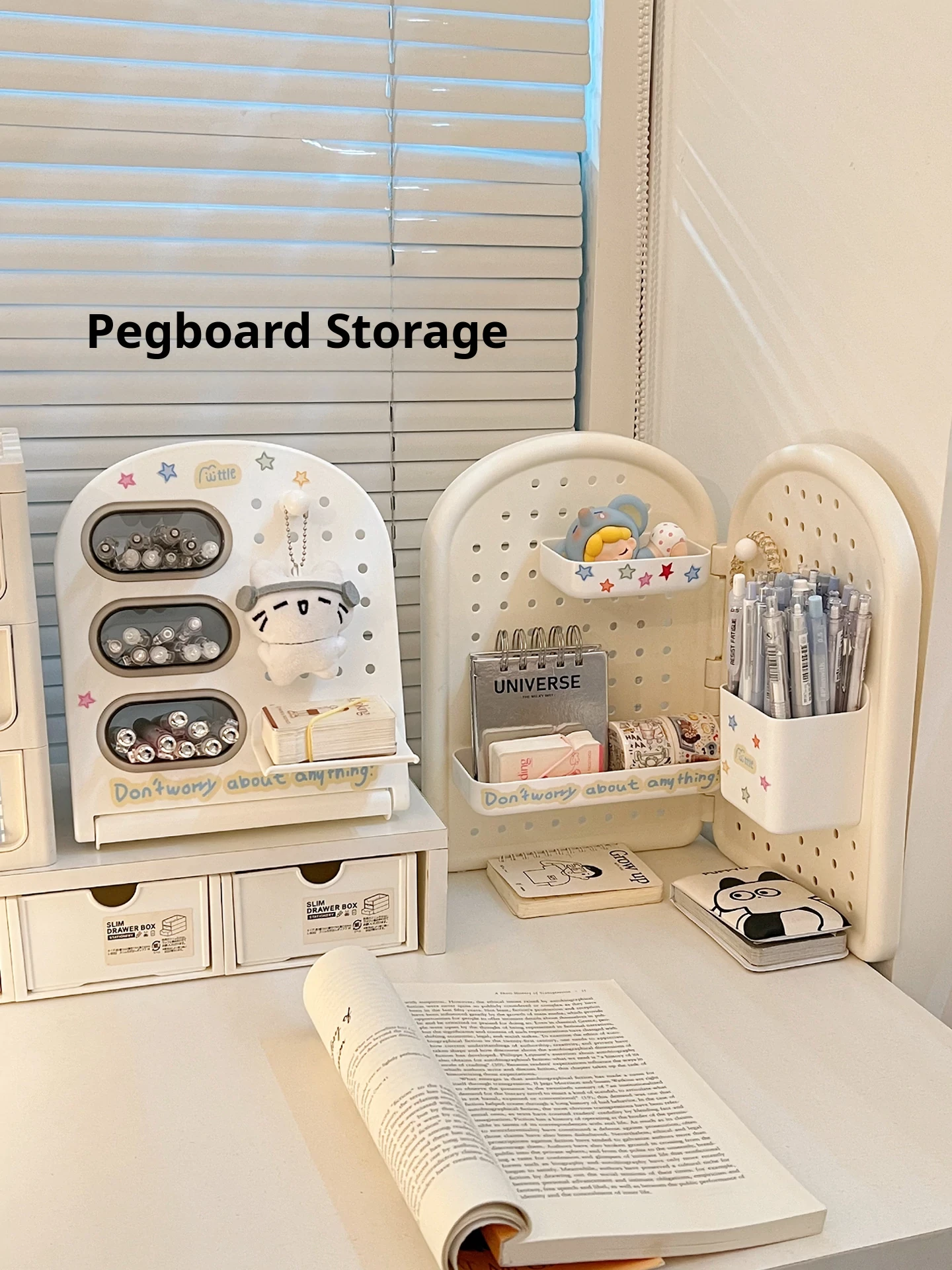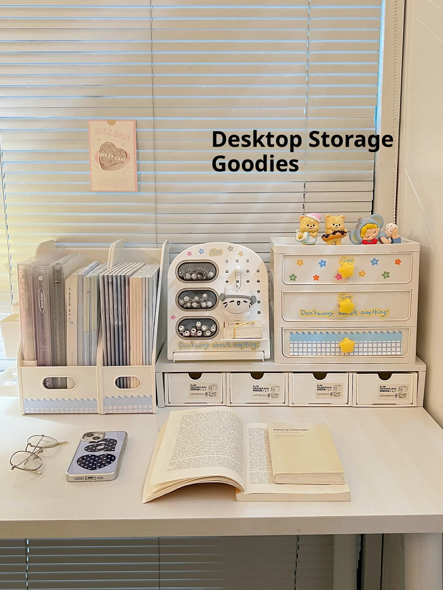 Student Dormitory Desktop Organizer Set - Drawer Storage Box for Office Supplies, Books, and Stationery with Vertical Dividers and Pen Holder【Maximize Your Study Space】