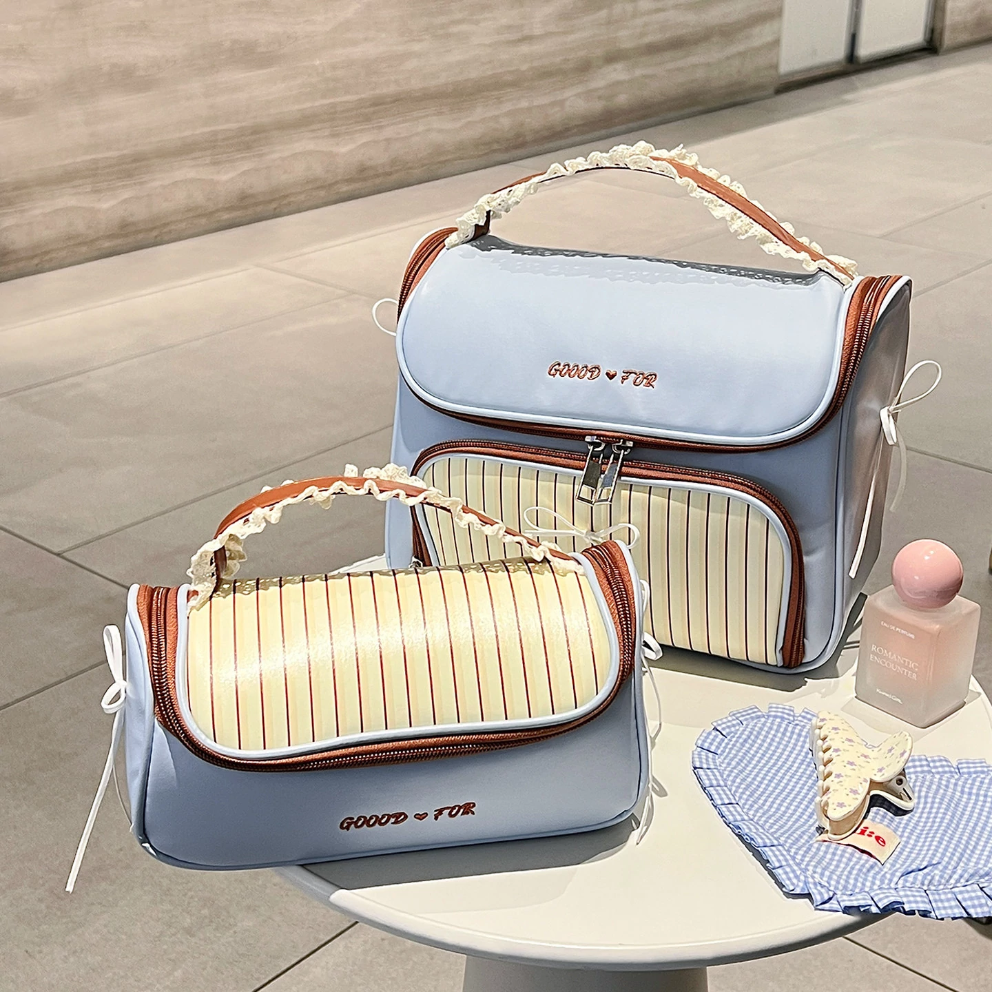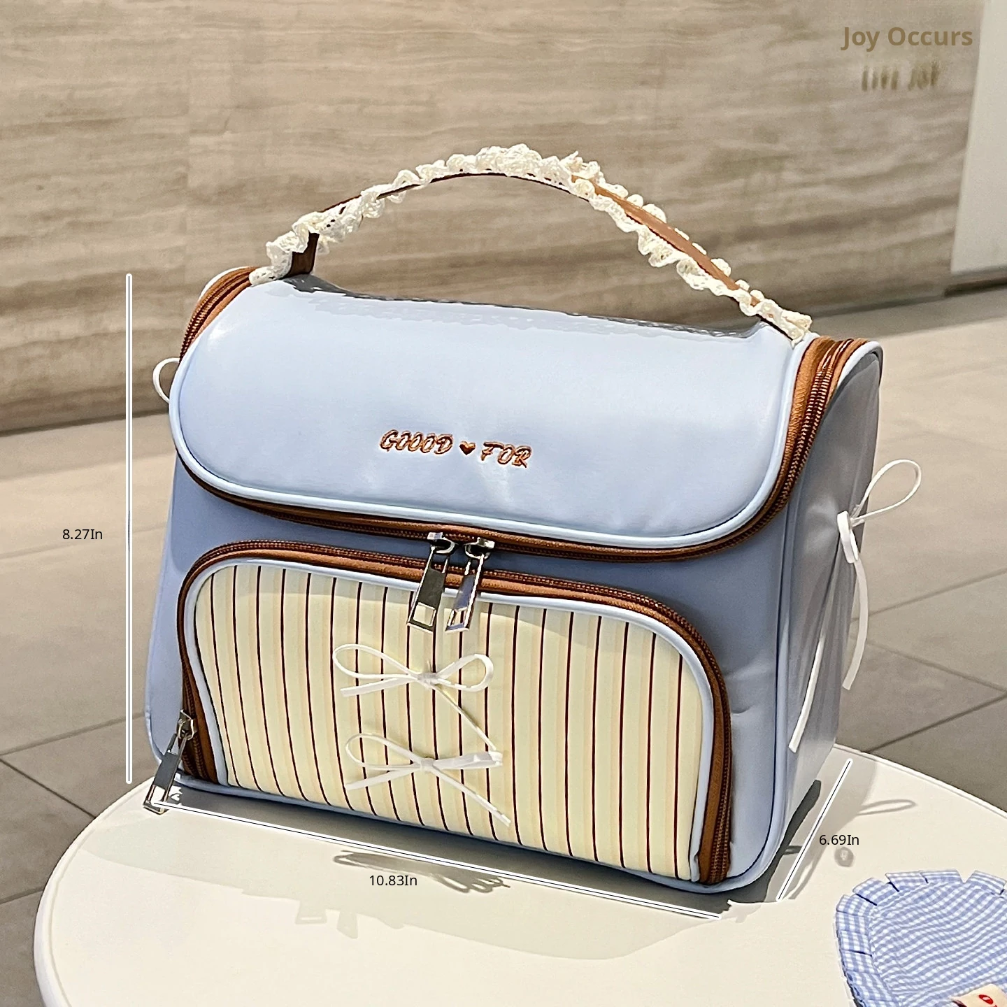 Large Size - Lace Blue Coffee [Super Large Capacity, Partitioned Storage]