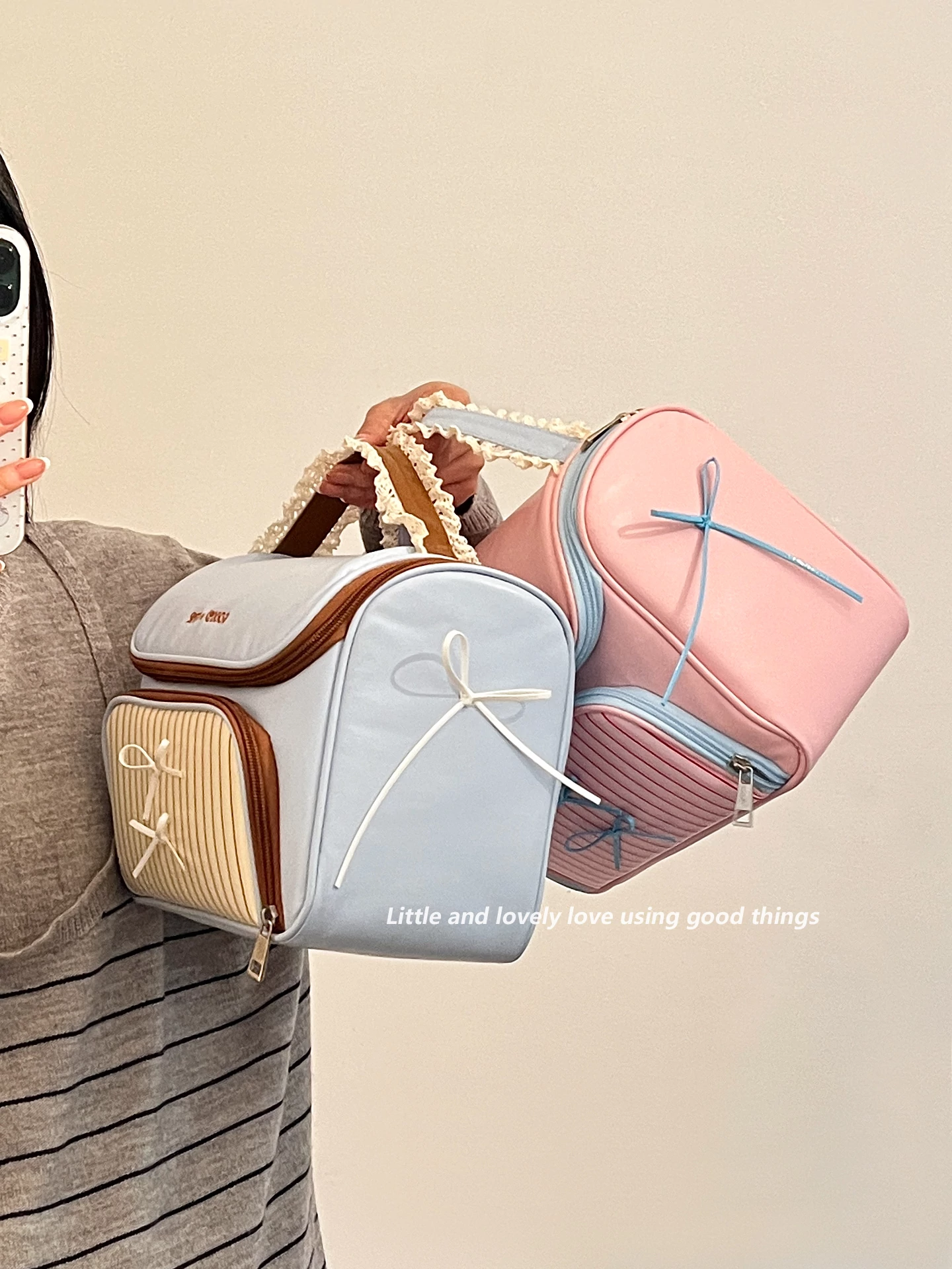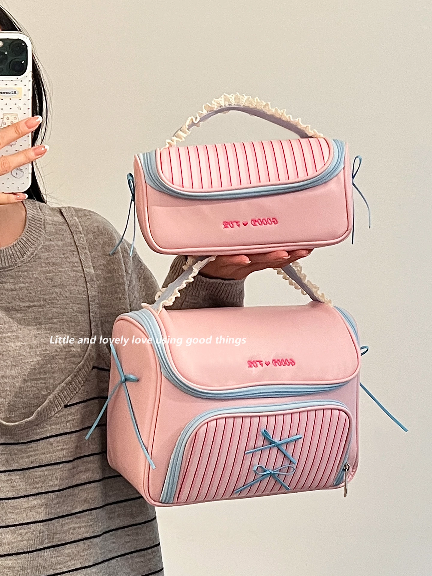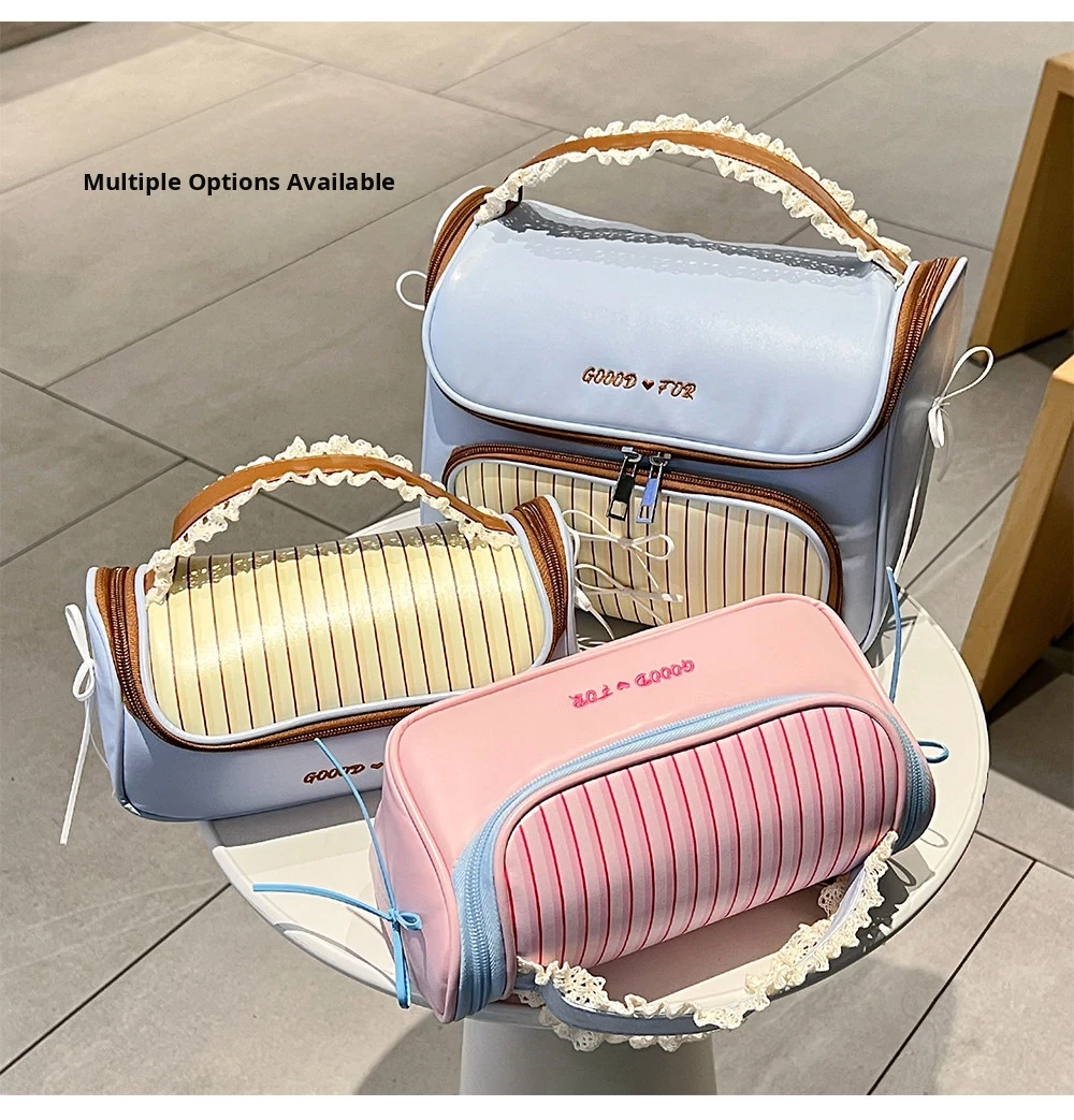 Large Size - Lace Pink and Blue [Super Large Capacity, Partitioned Storage]