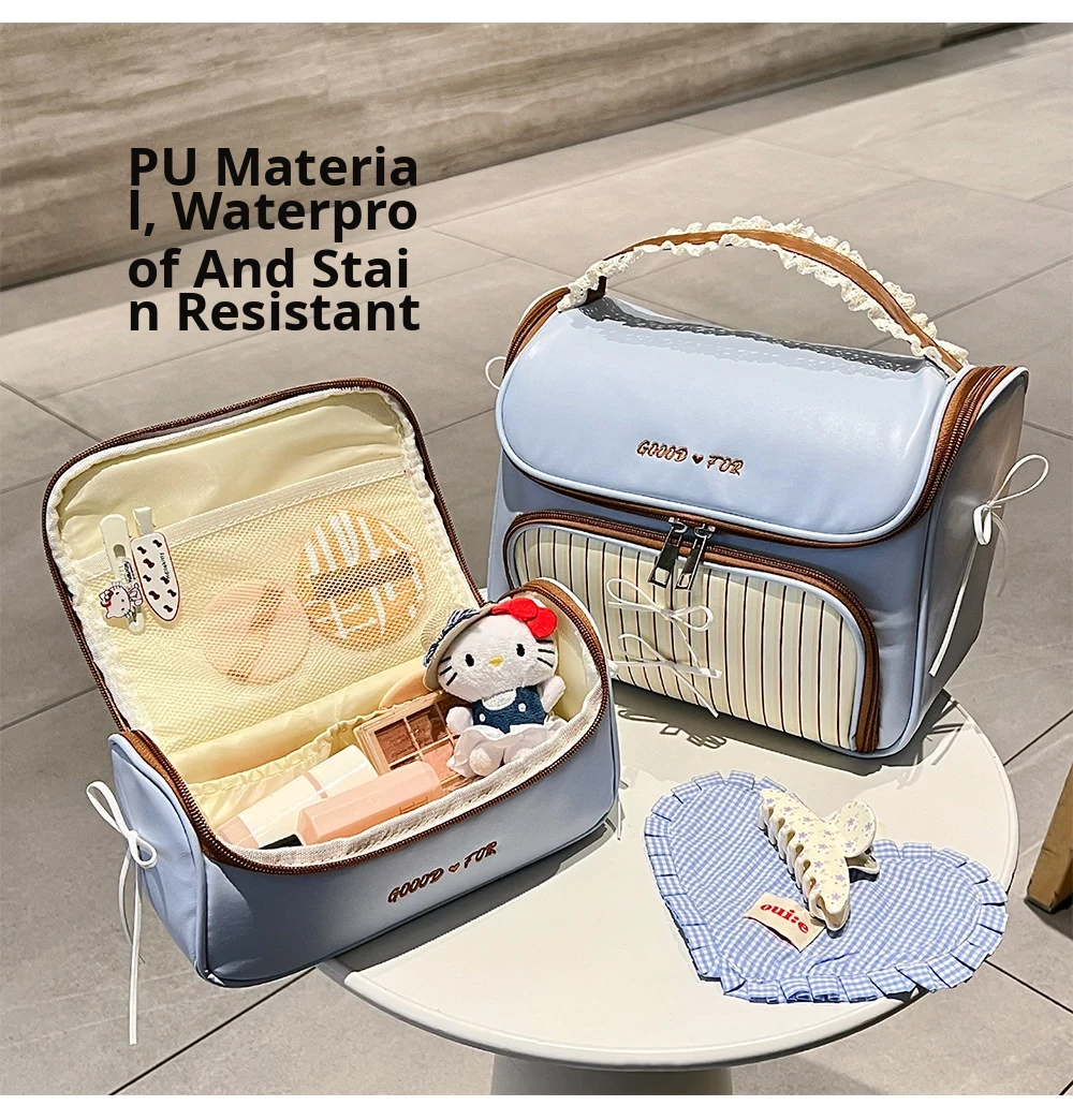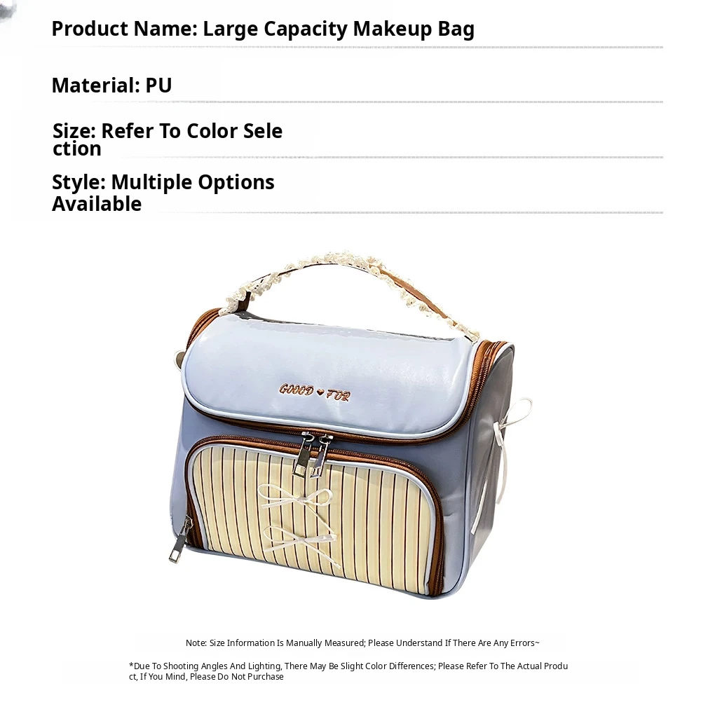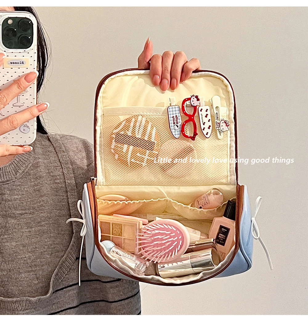 Stylish Bowknot Portable Makeup Bag - Large Capacity Waterproof Leather Toiletry Organizer for Travel, Skincare & Beauty Essentials with Divided Compartments