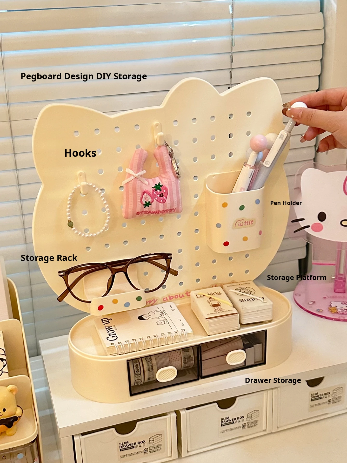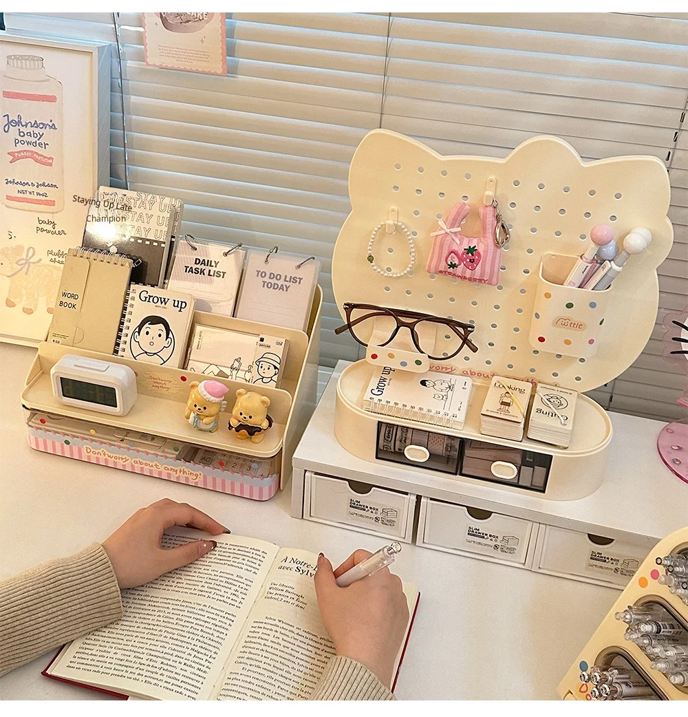 Stylish Desktop Organizer Set - Versatile Storage Solution for Office and Study, Featuring Drawer Dividers and Stylish Pegboard Design, Perfect for Stationery and Pen Holder