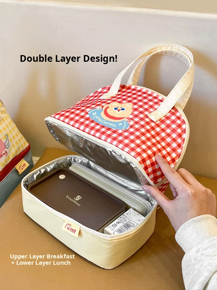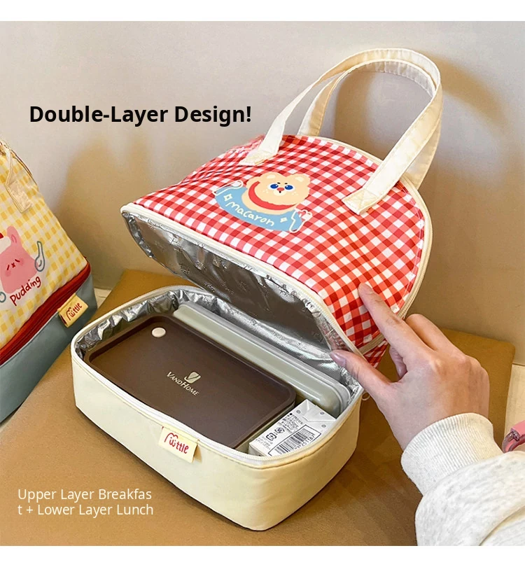 Stylish Double-Layer Lunch Box with Insulated Bag - Perfect for Office Workers and Breakfast On-the-Go, Thickened Aluminum Foil for Optimal Temperature Retention