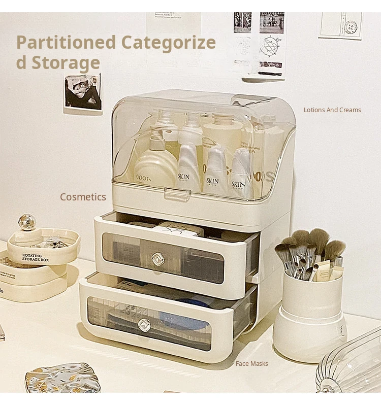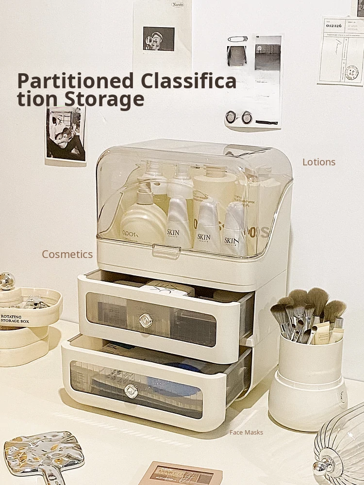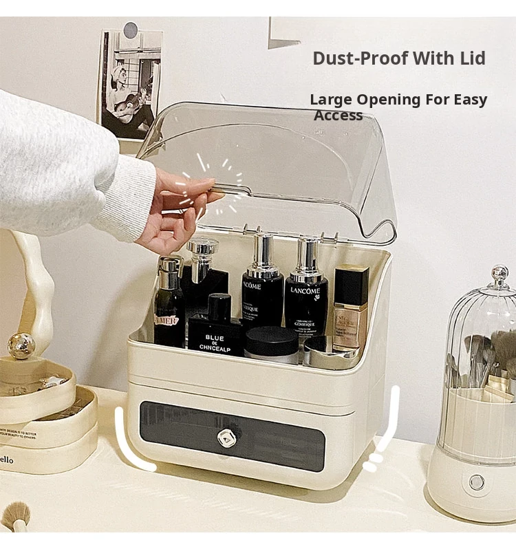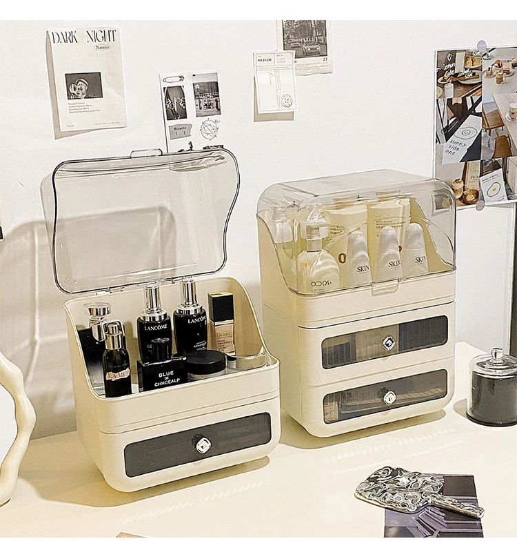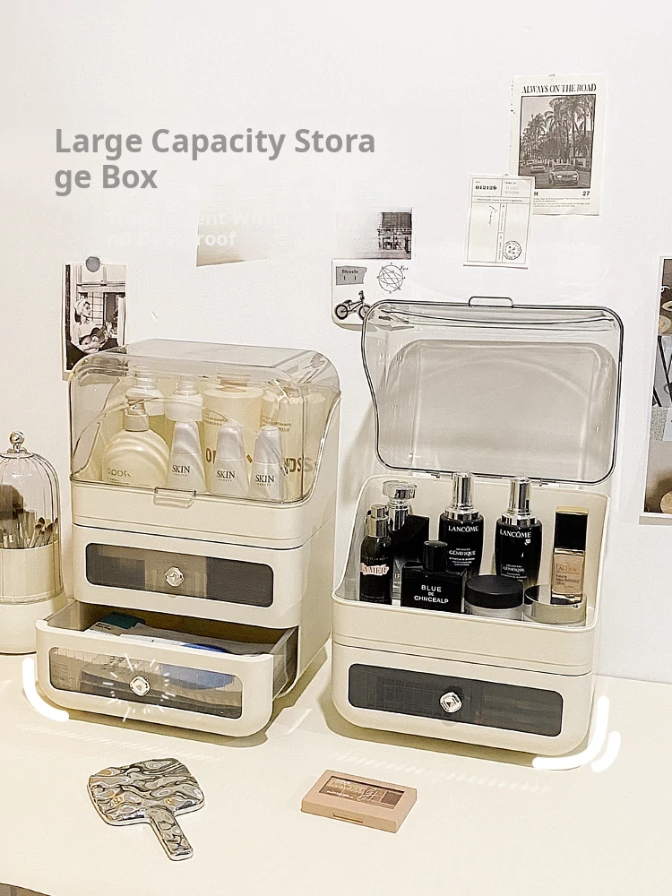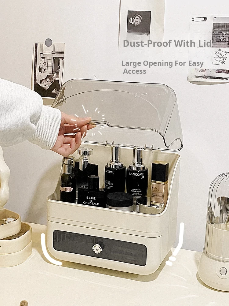Stylish Drawer Makeup Organizer Box - Large Capacity Dustproof Skincare Storage for Your Desktop, Perfect for Influencers and Beauty Enthusiasts!