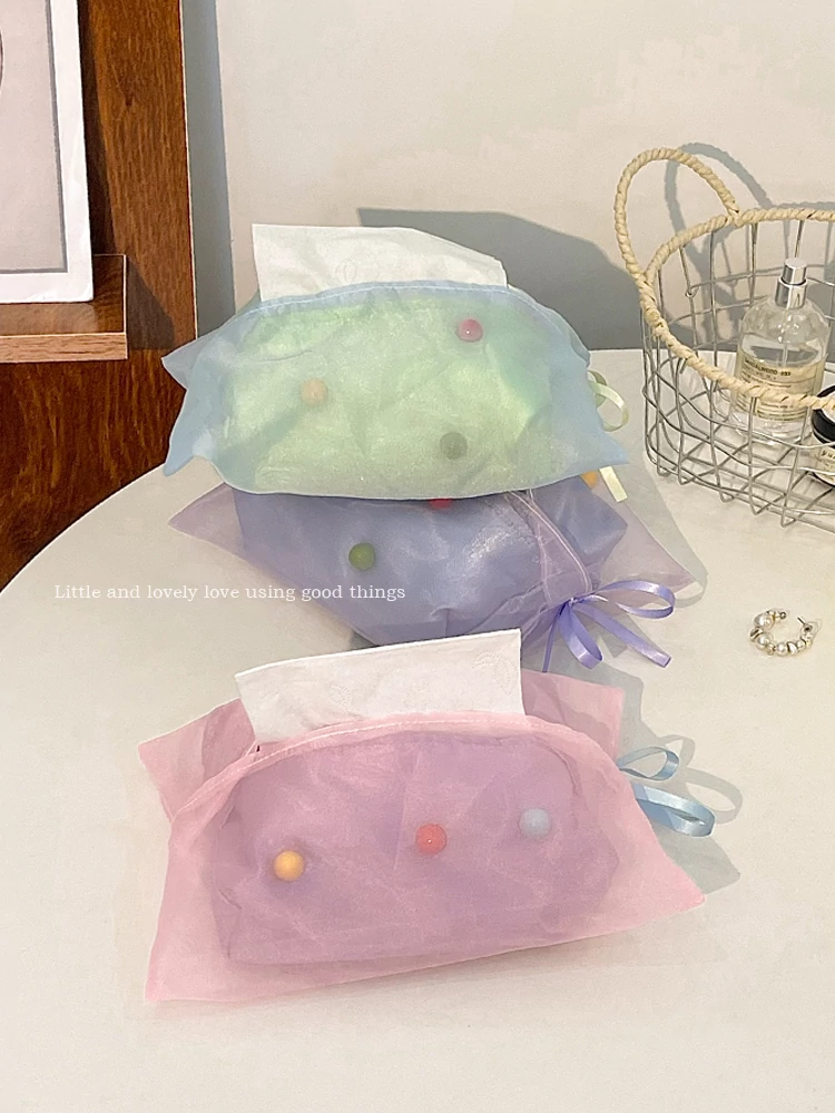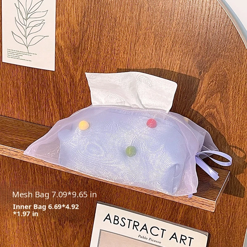 Stylish Ins-Style Mesh Tissue Box - Hanging Design for Car, Living Room, and Bedroom - Convenient Napkin and Tissue Organizer