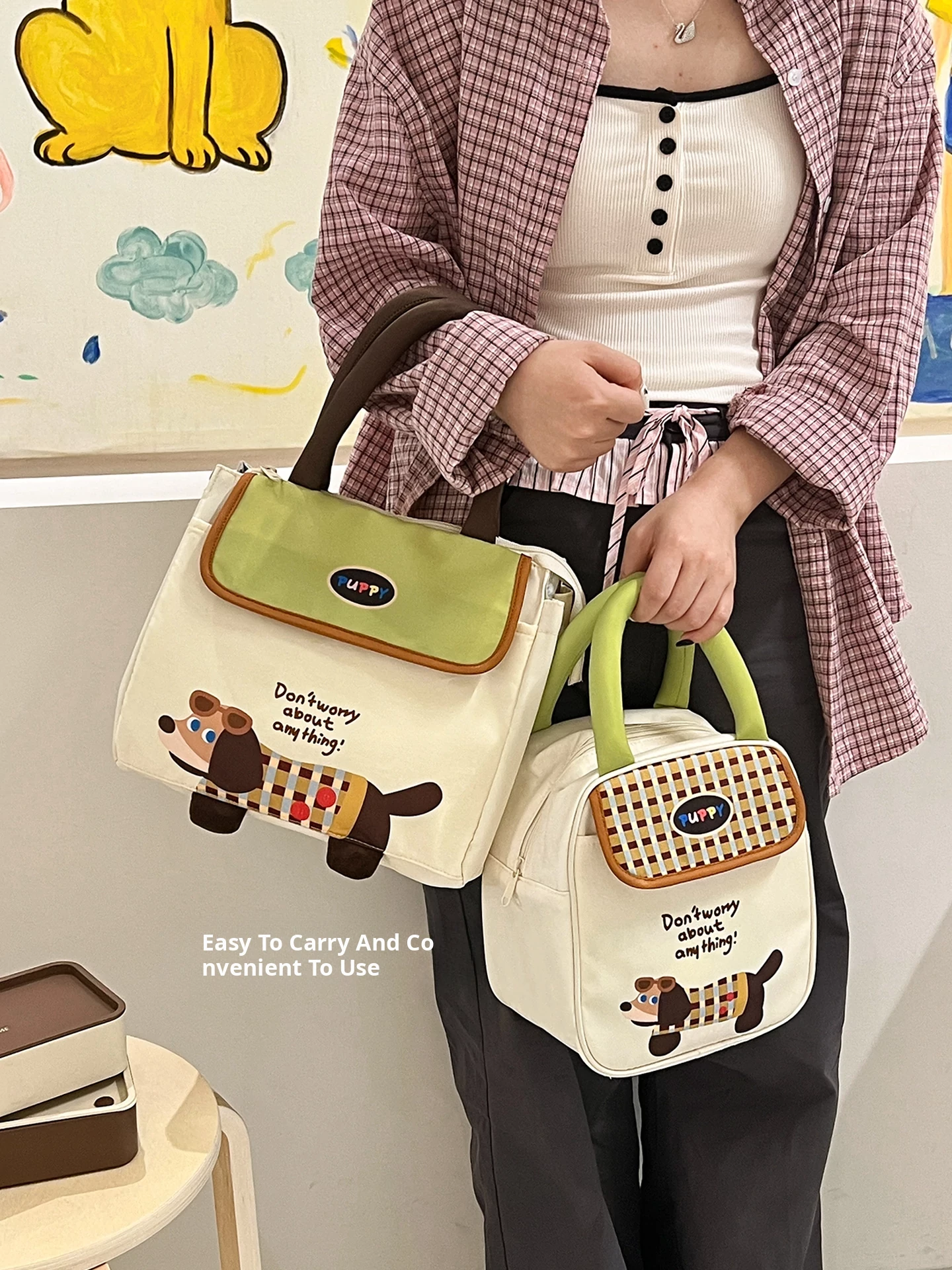 Puppy Green Brown Check [Large Size]