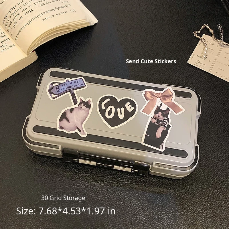 Gray Large Size - 30 Compartments + 60 Stickers [Large Capacity for Compartmentalized Storage]