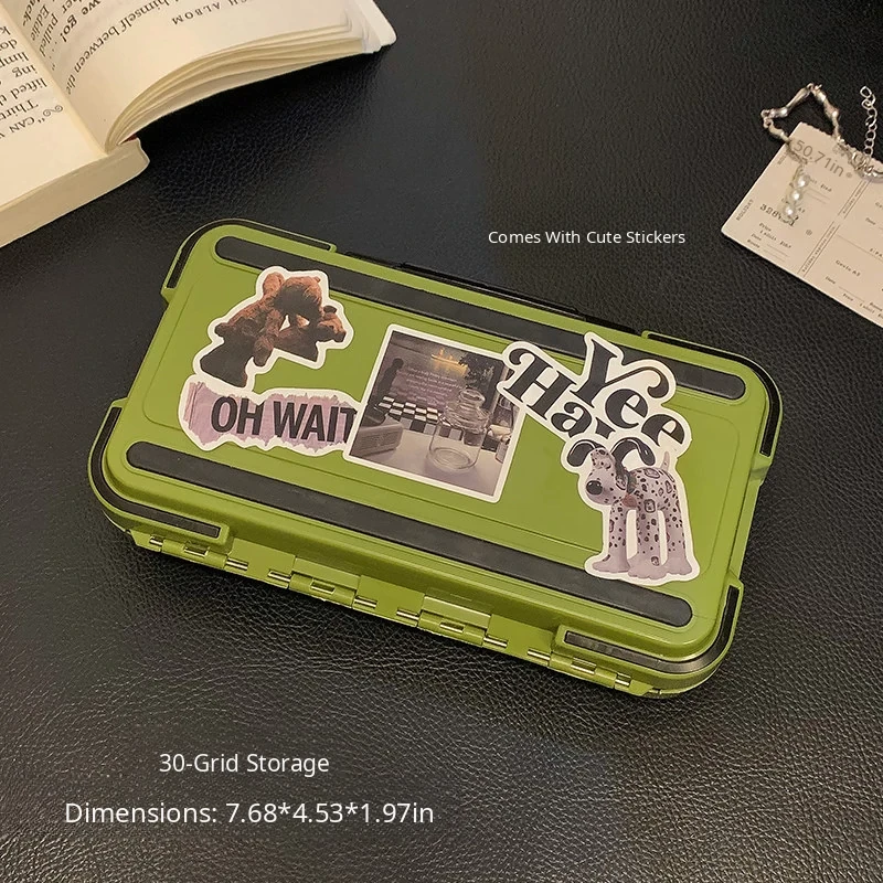 Green Large Size - 30 Compartments + 60 Stickers [Large Capacity for Compartmentalized Storage]