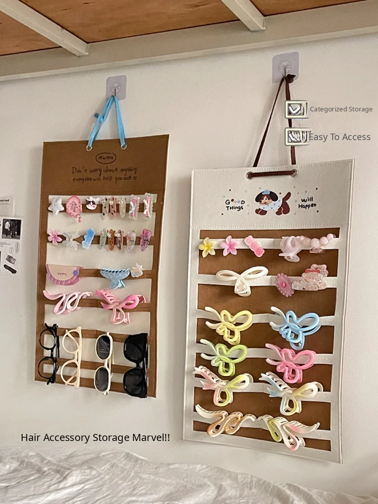 Stylish Multi-Layer Felt Wall Hanging Storage Bag for Sunglasses, Hair Clips, and Headbands - Perfect for Dorm Rooms and Behind Doors!
