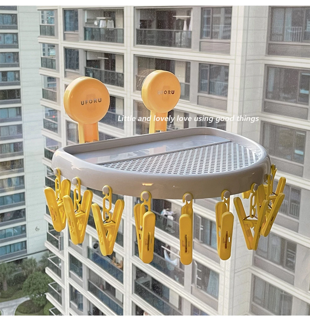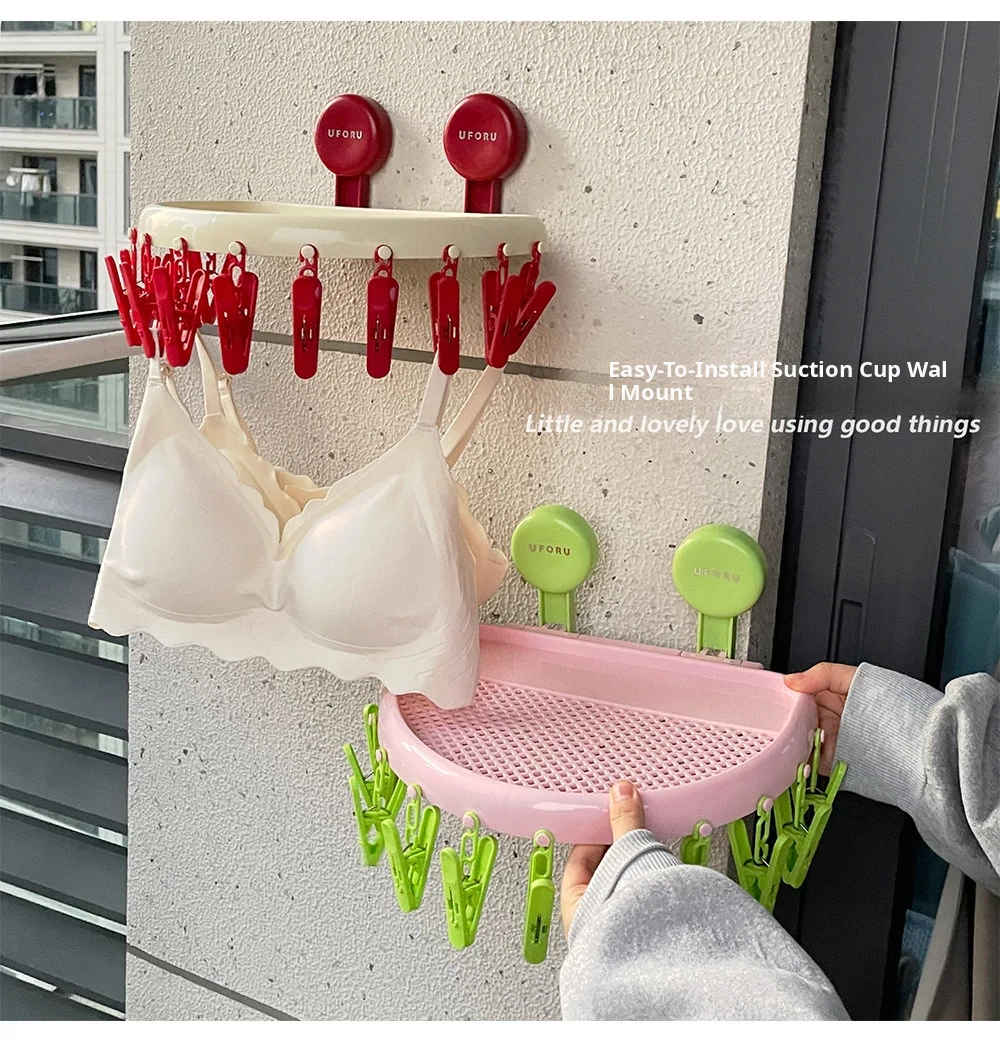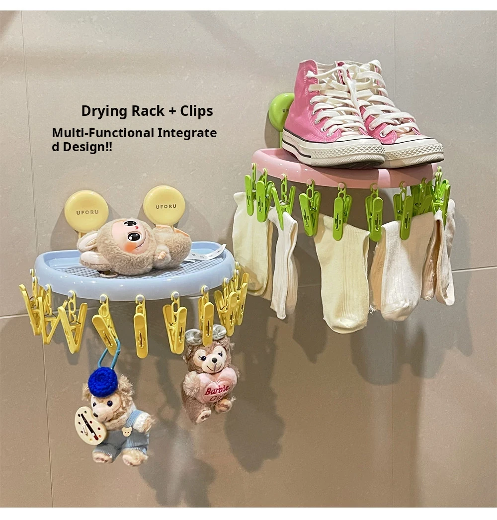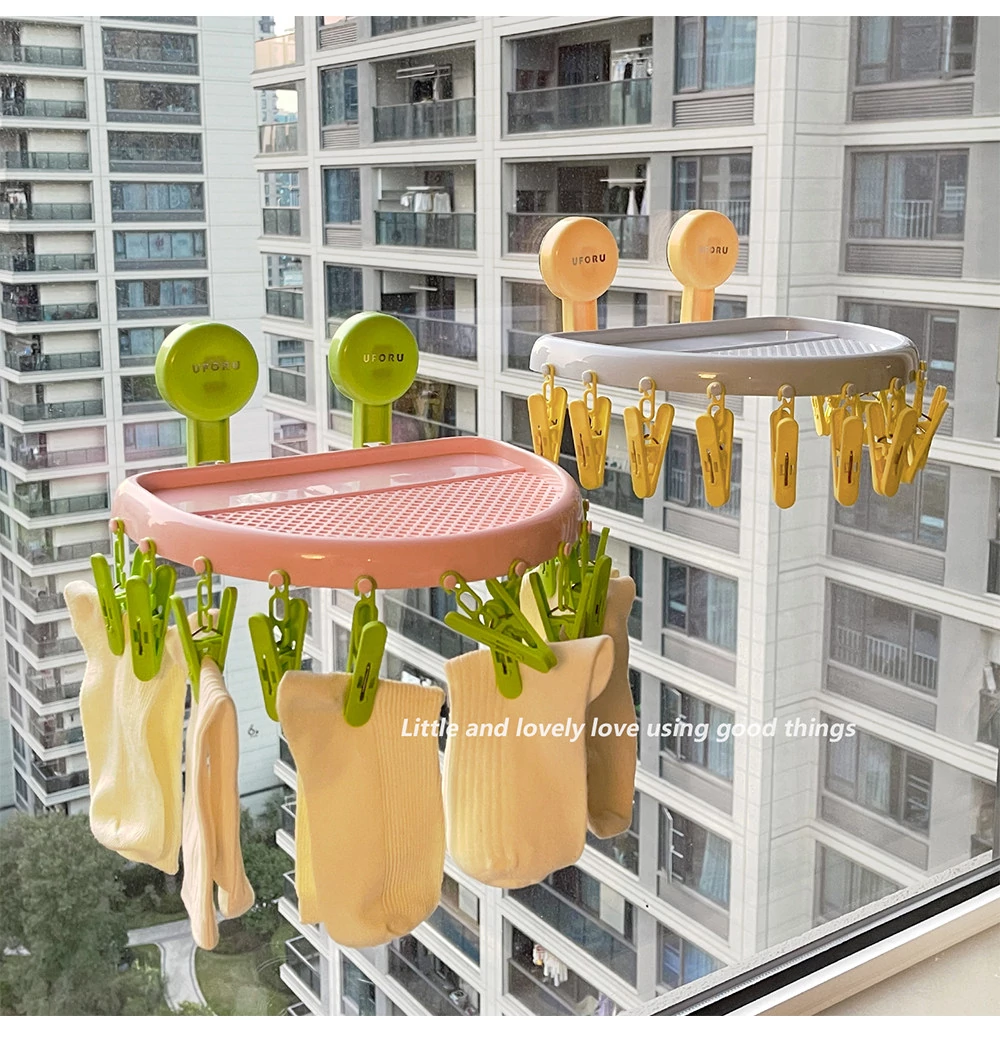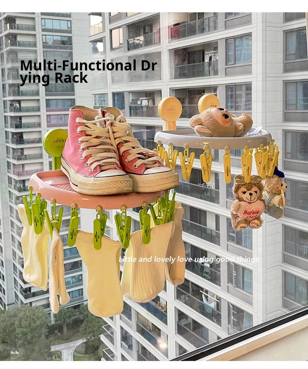 Suction Cup Sock Drying Rack - No Drilling Required! Versatile Circular Clothes Hanger with Multiple Clips for Efficient Indoor and Outdoor Drying of Underwear and Socks. Perfect for Balconies!