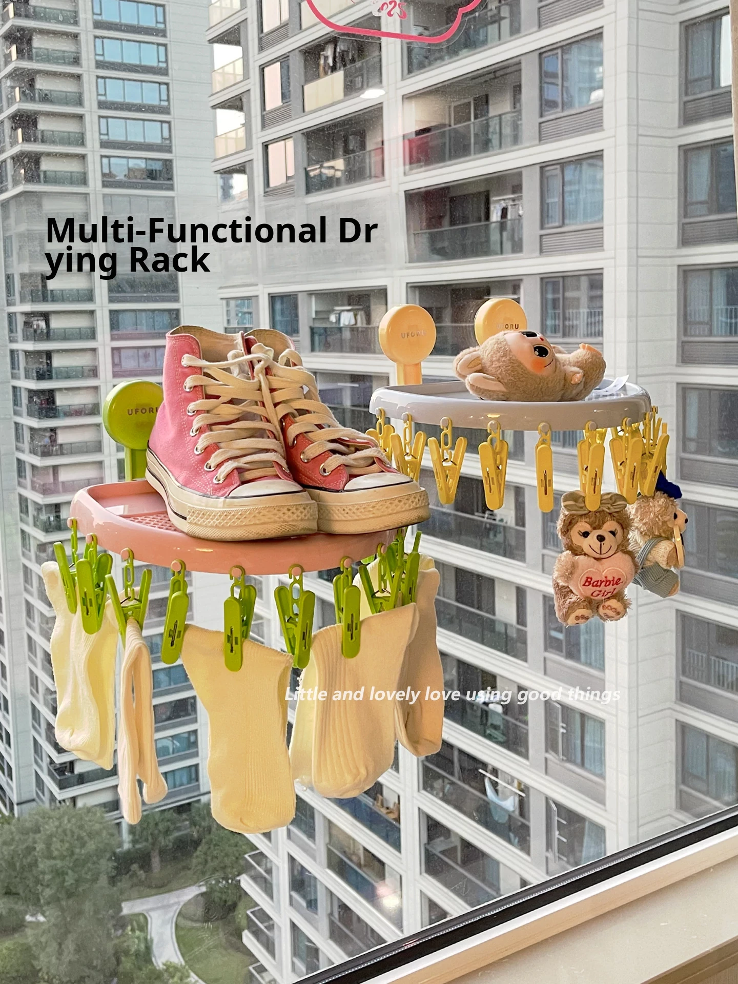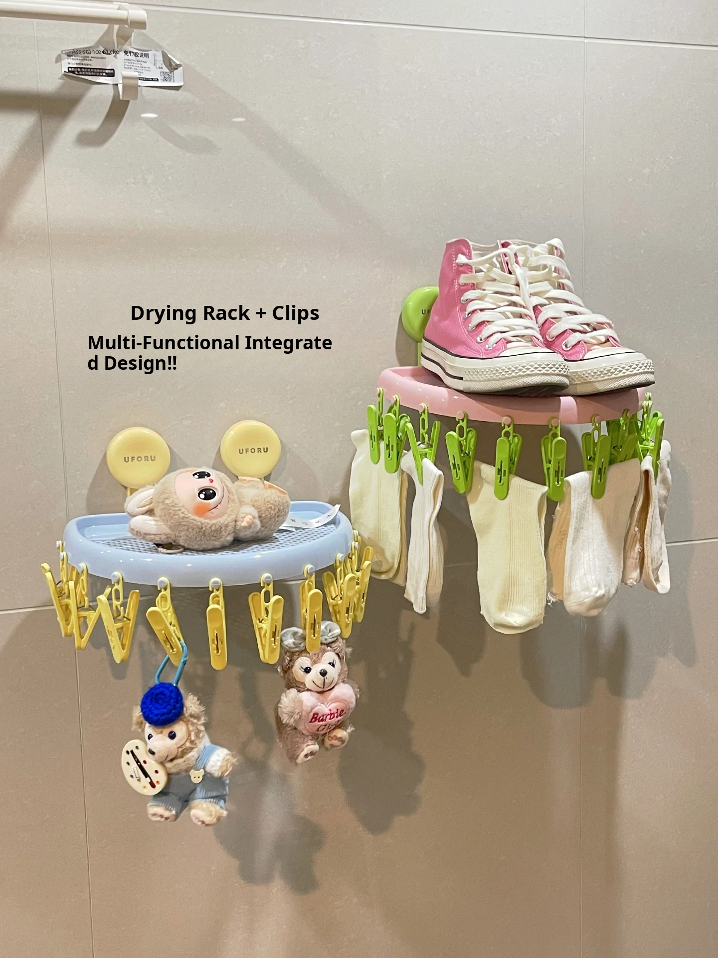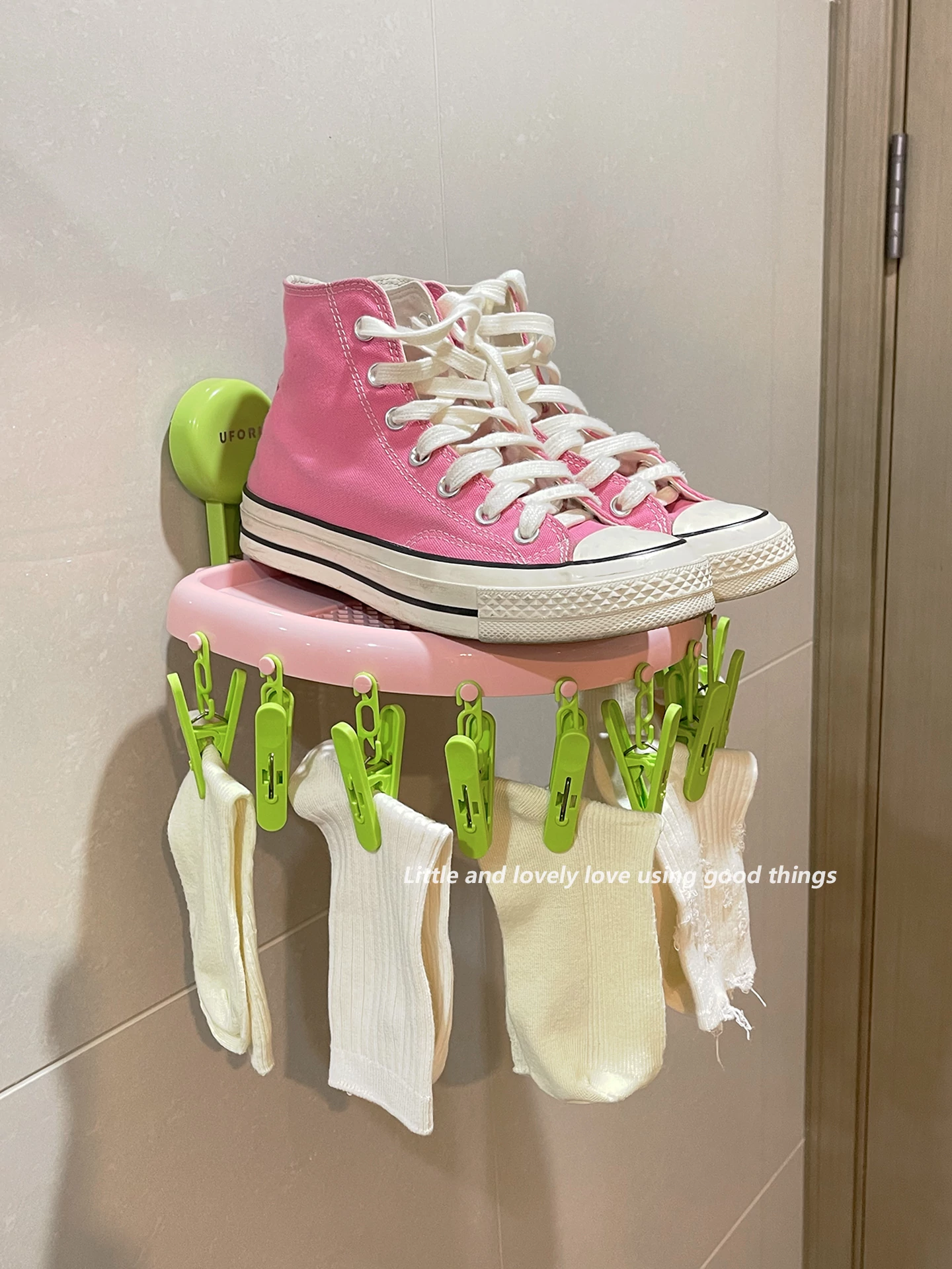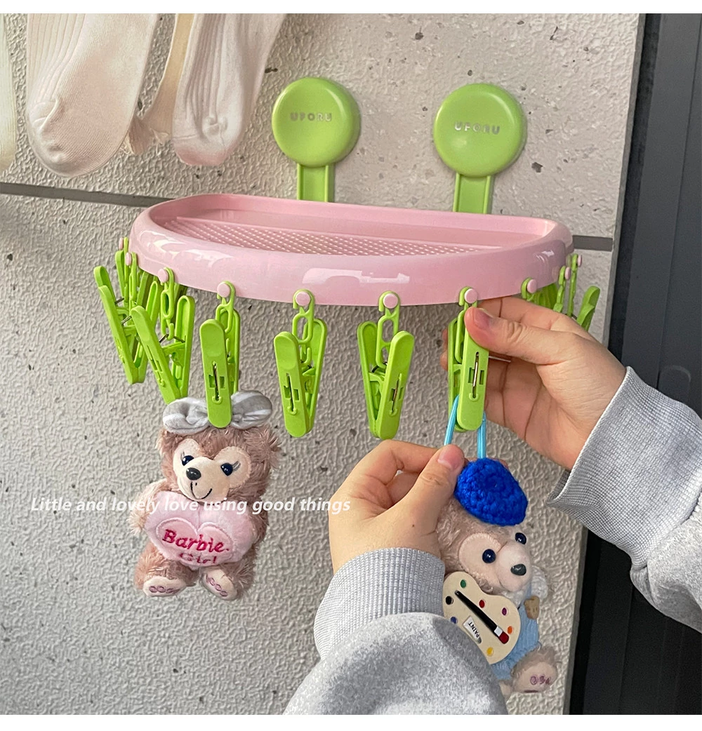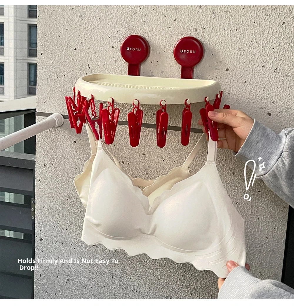 Suction Cup Sock Drying Rack - No Drilling Required! Versatile Circular Clothes Hanger with Multiple Clips for Efficient Indoor and Outdoor Drying of Underwear and Socks. Perfect for Balconies!