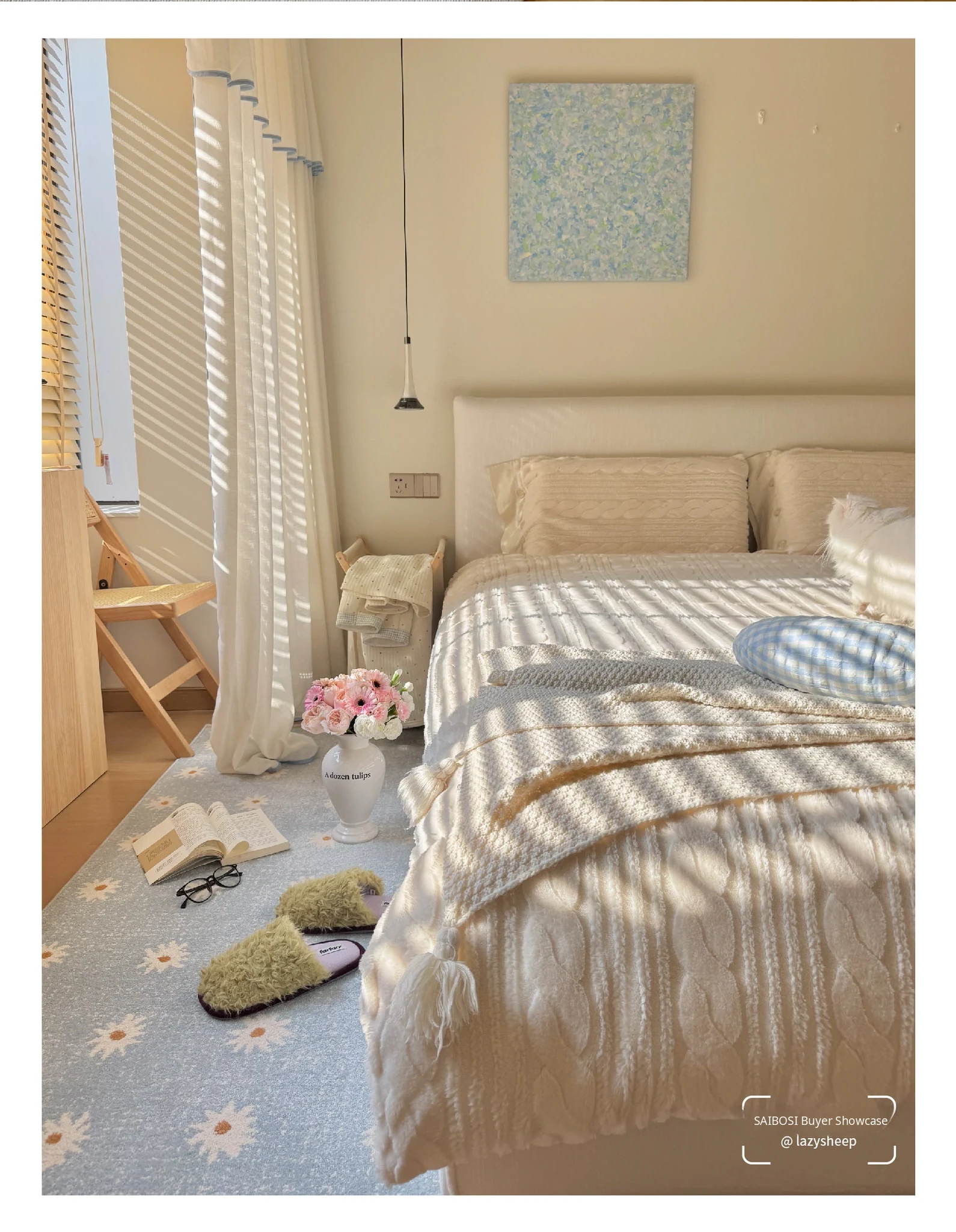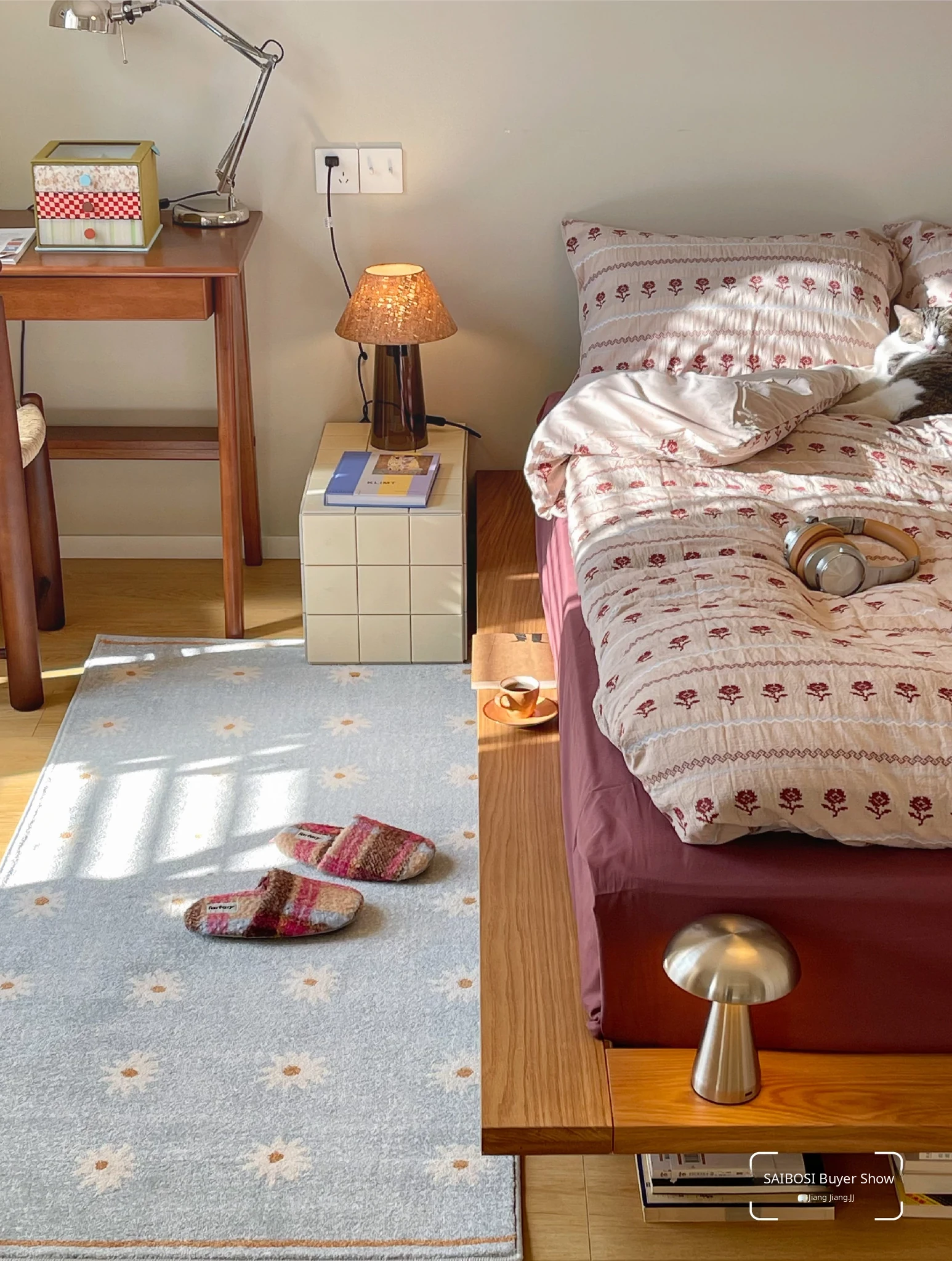 Sybos Colorful Italian No-Glue Bedside Blanket - Formaldehyde-Free Luxury Bedroom Area Rug, Elegant Bed End Throw for a Chic Touch
