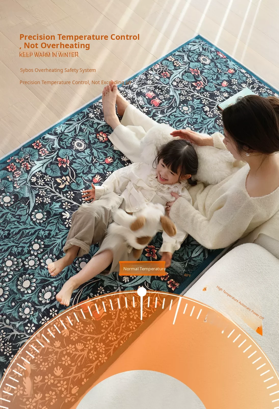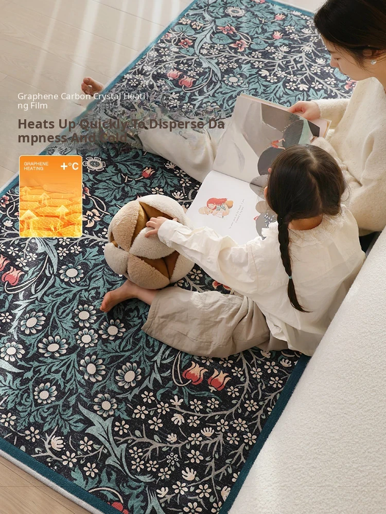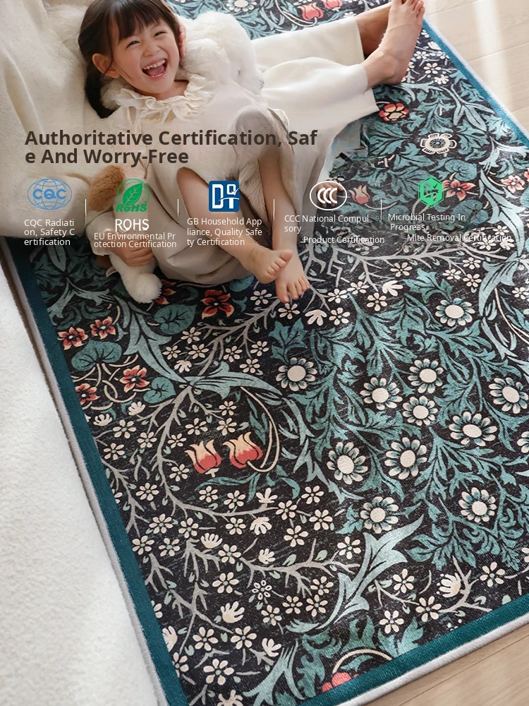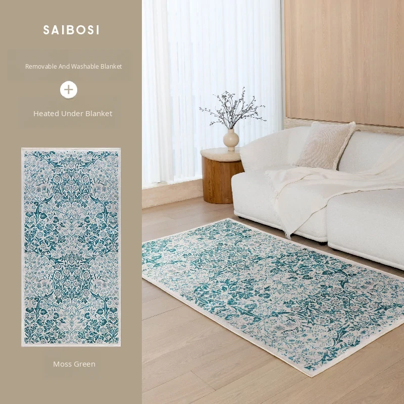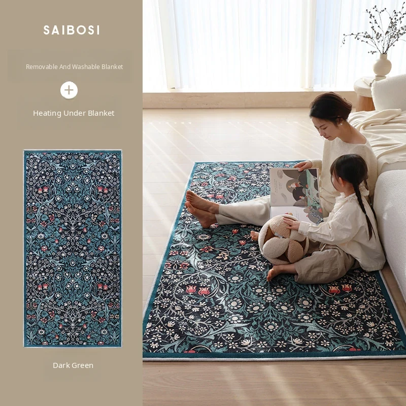 Sybos Green Fairyland Detachable & Washable Electric Dual-Layer Carpet - Vintage Style, Machine Washable, Graphene for Bedroom & Living Room
