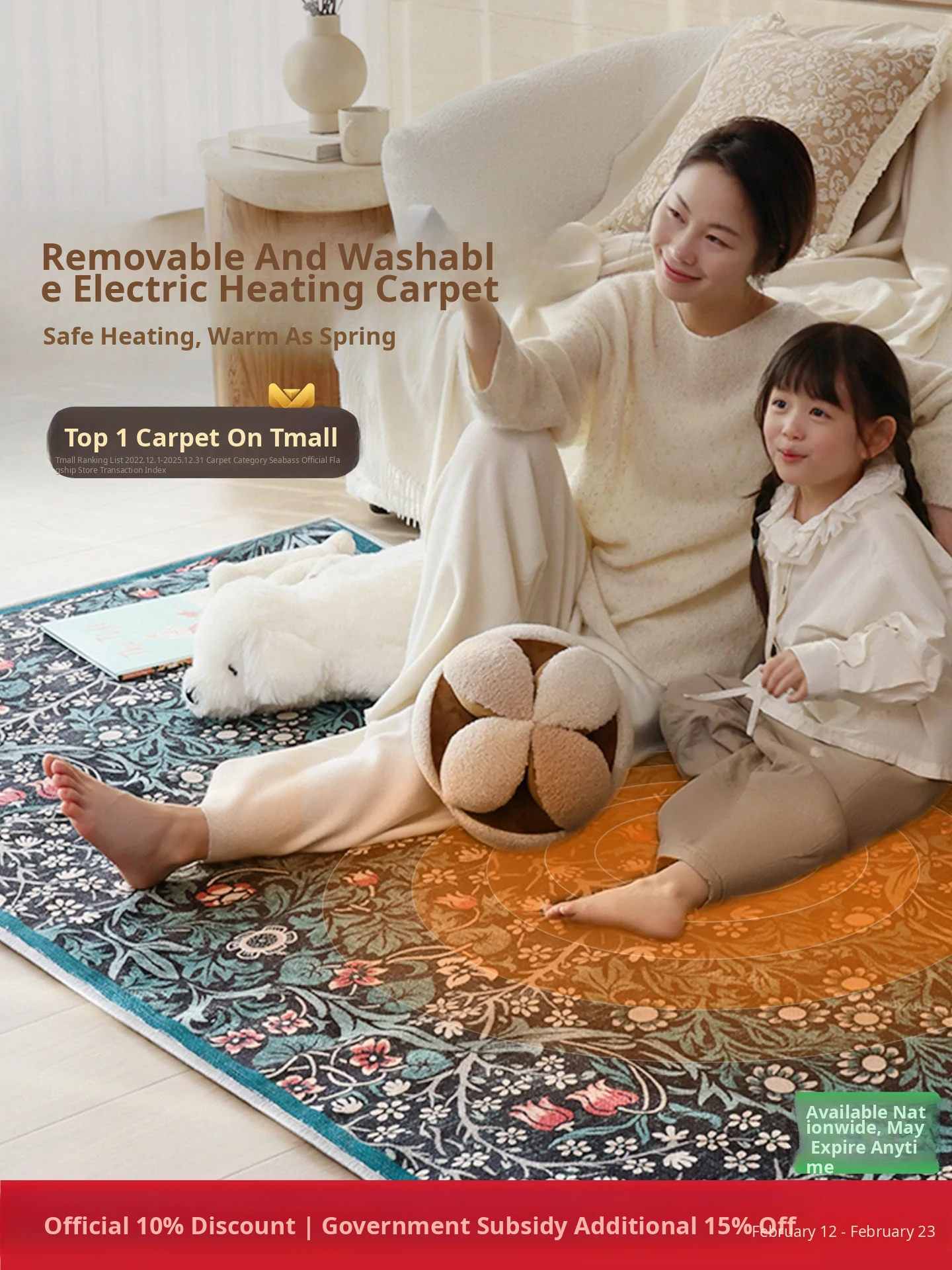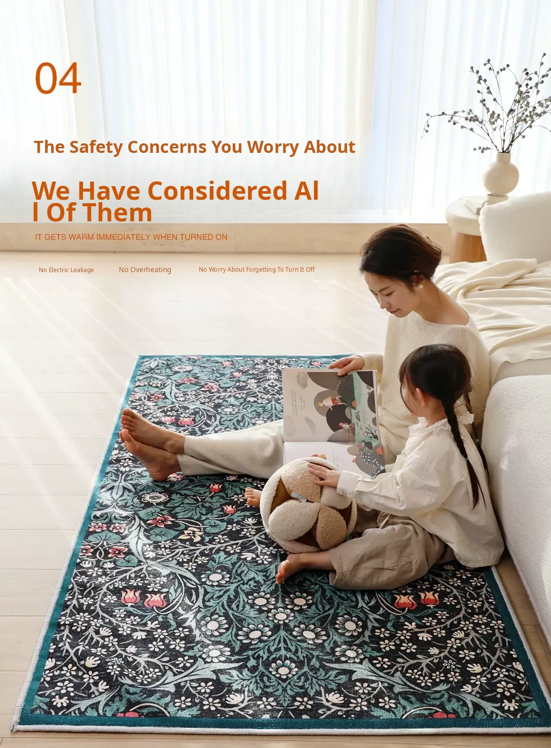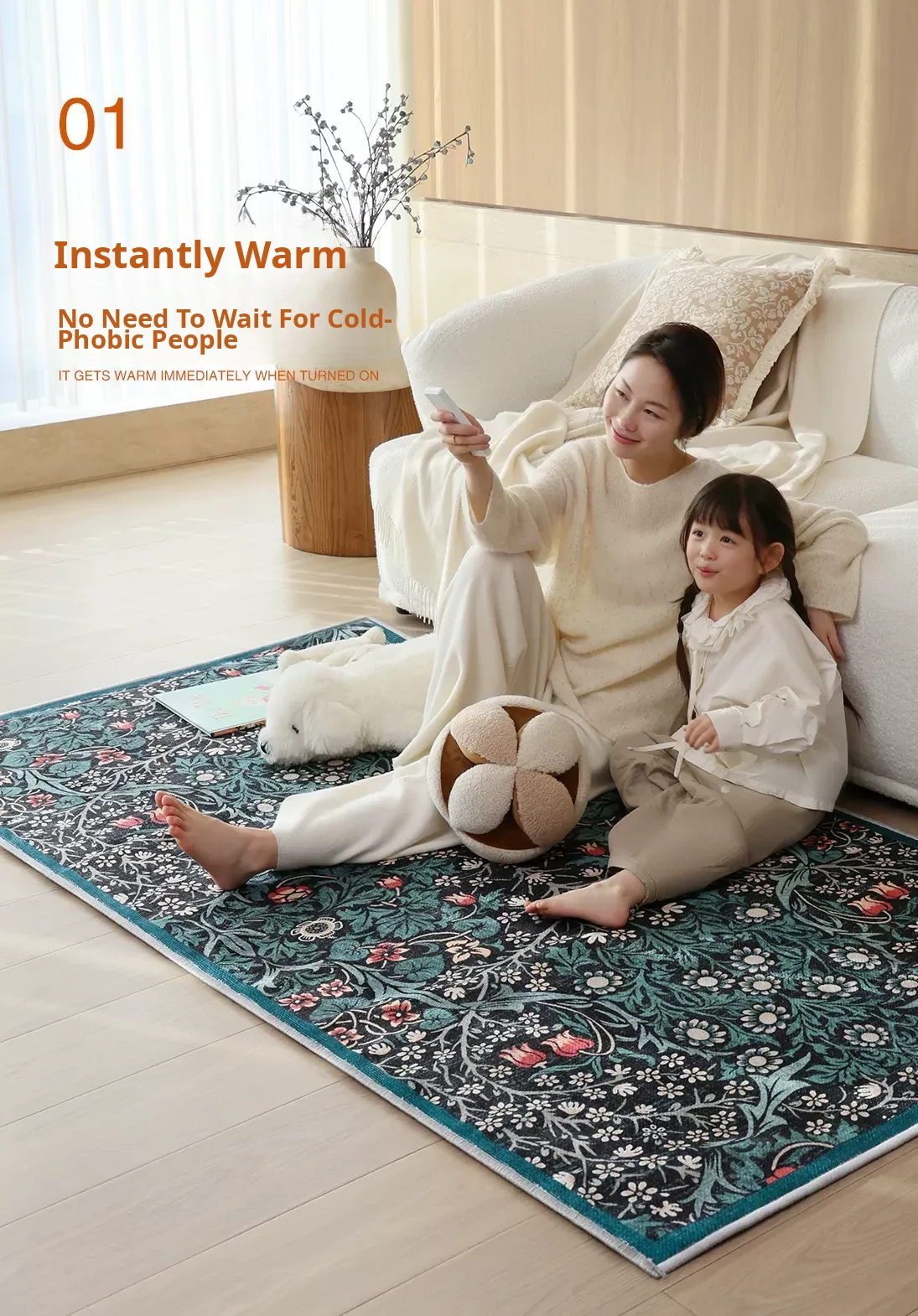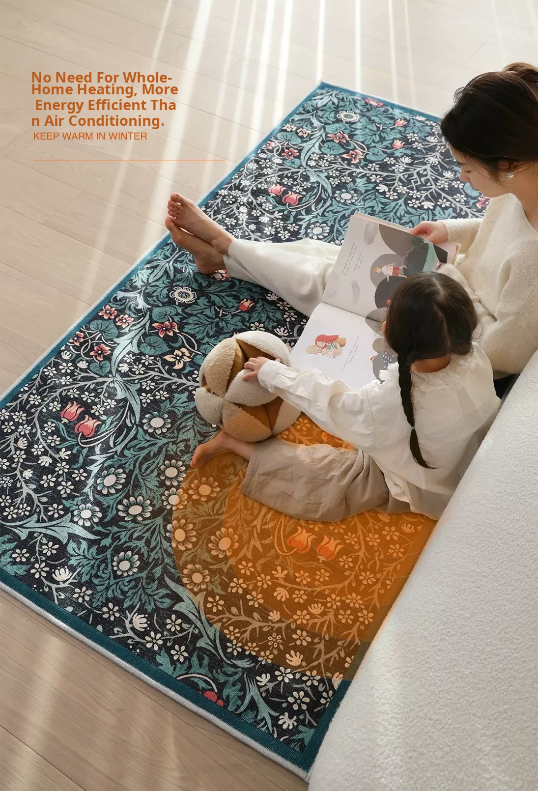 Sybos Green Fairyland Detachable & Washable Electric Dual-Layer Carpet - Vintage Style, Machine Washable, Graphene for Bedroom & Living Room