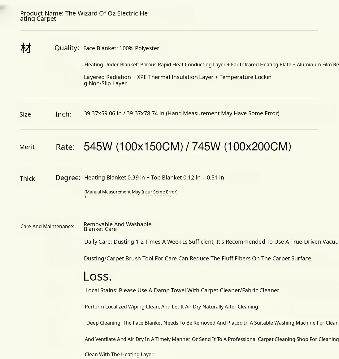Wizard of oz Electric Heating Carpet (Moss Green)