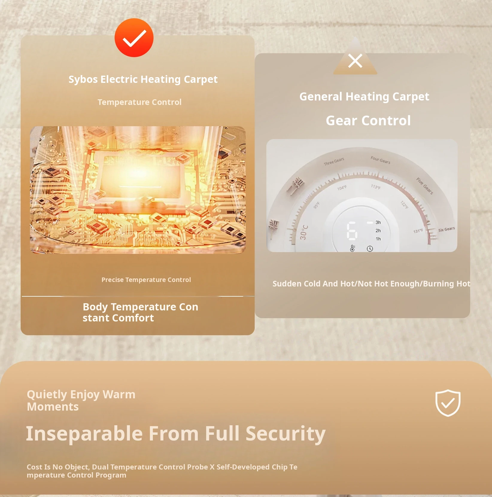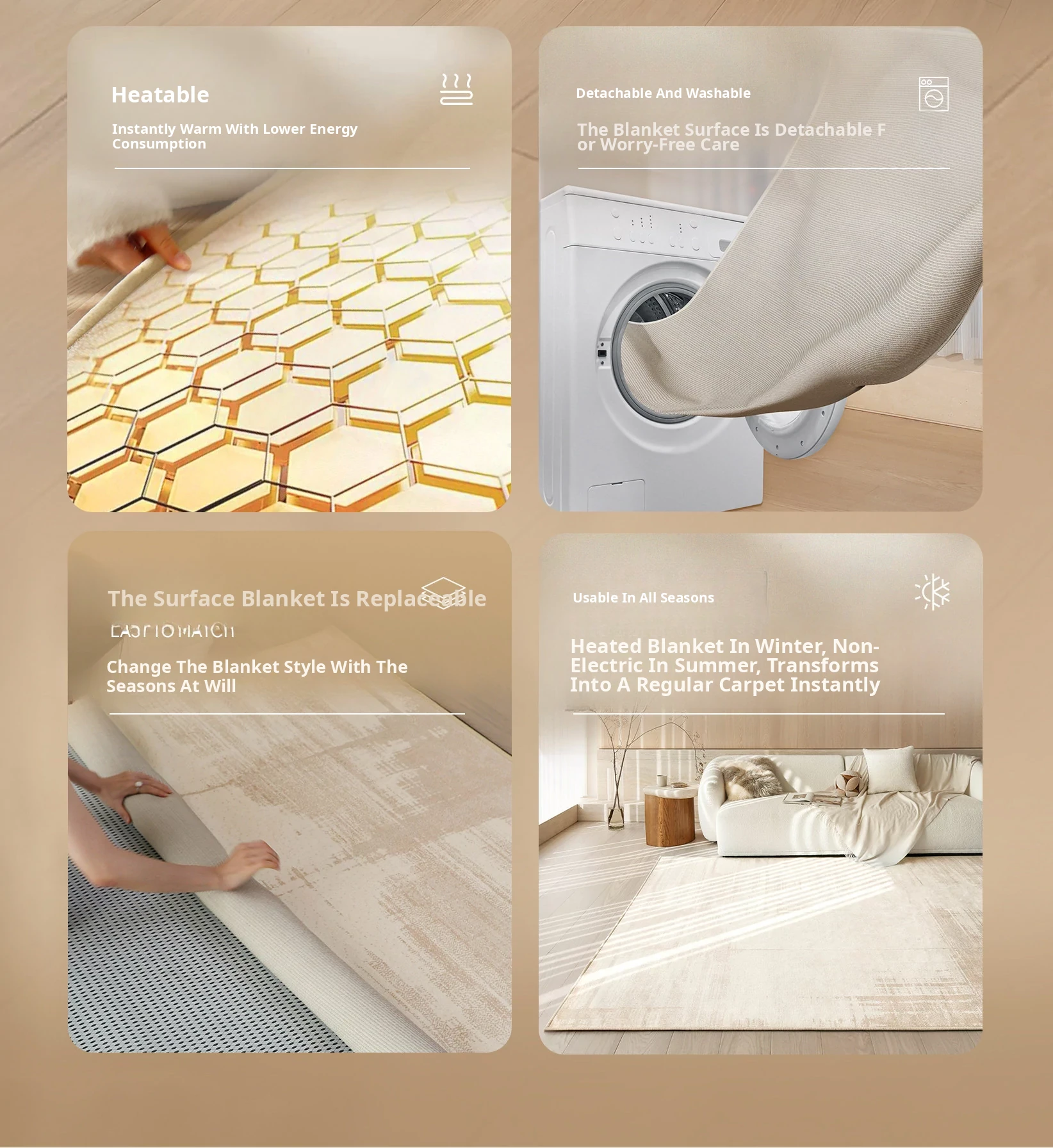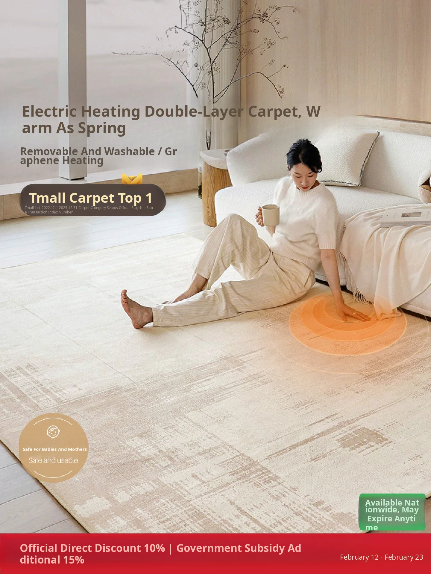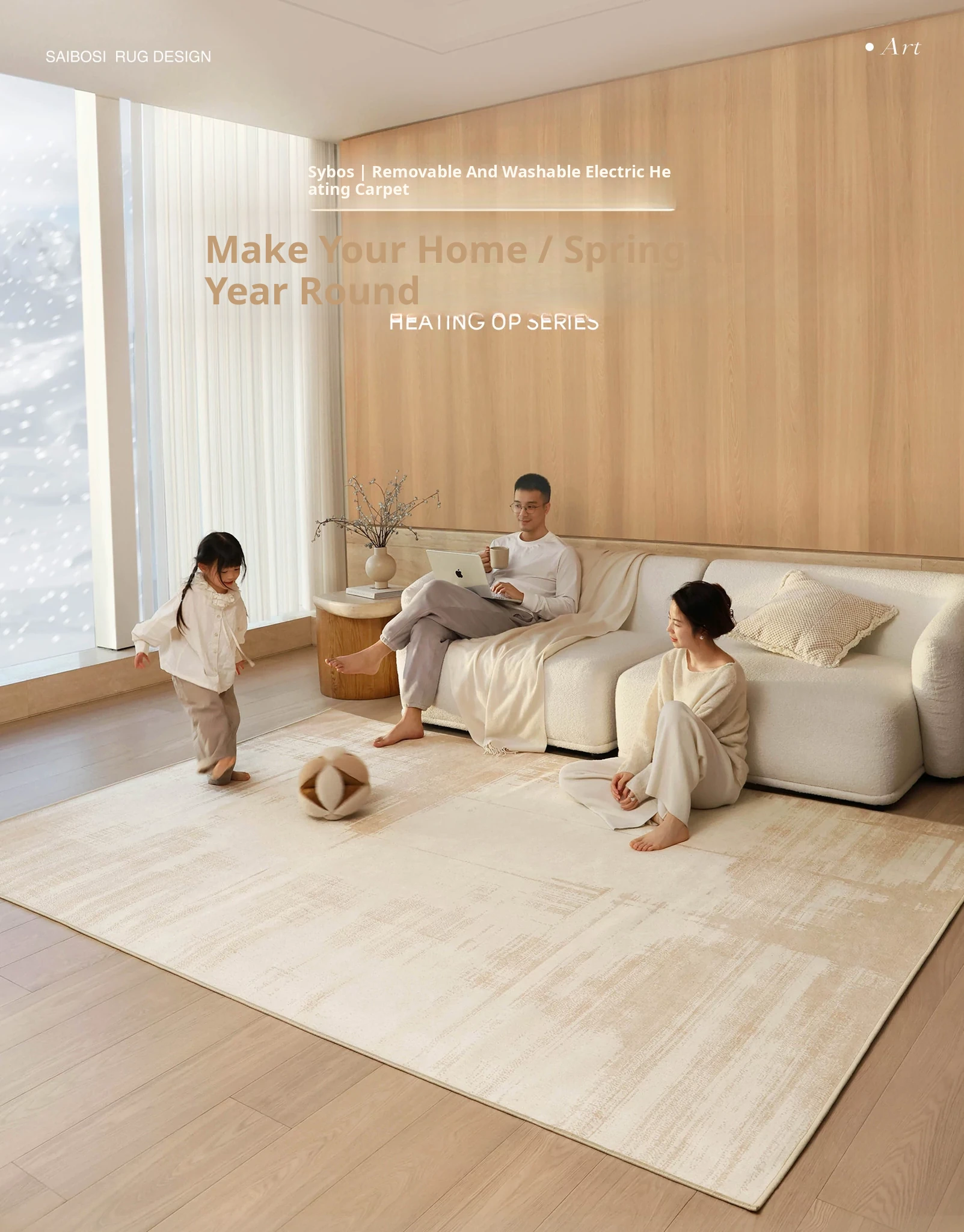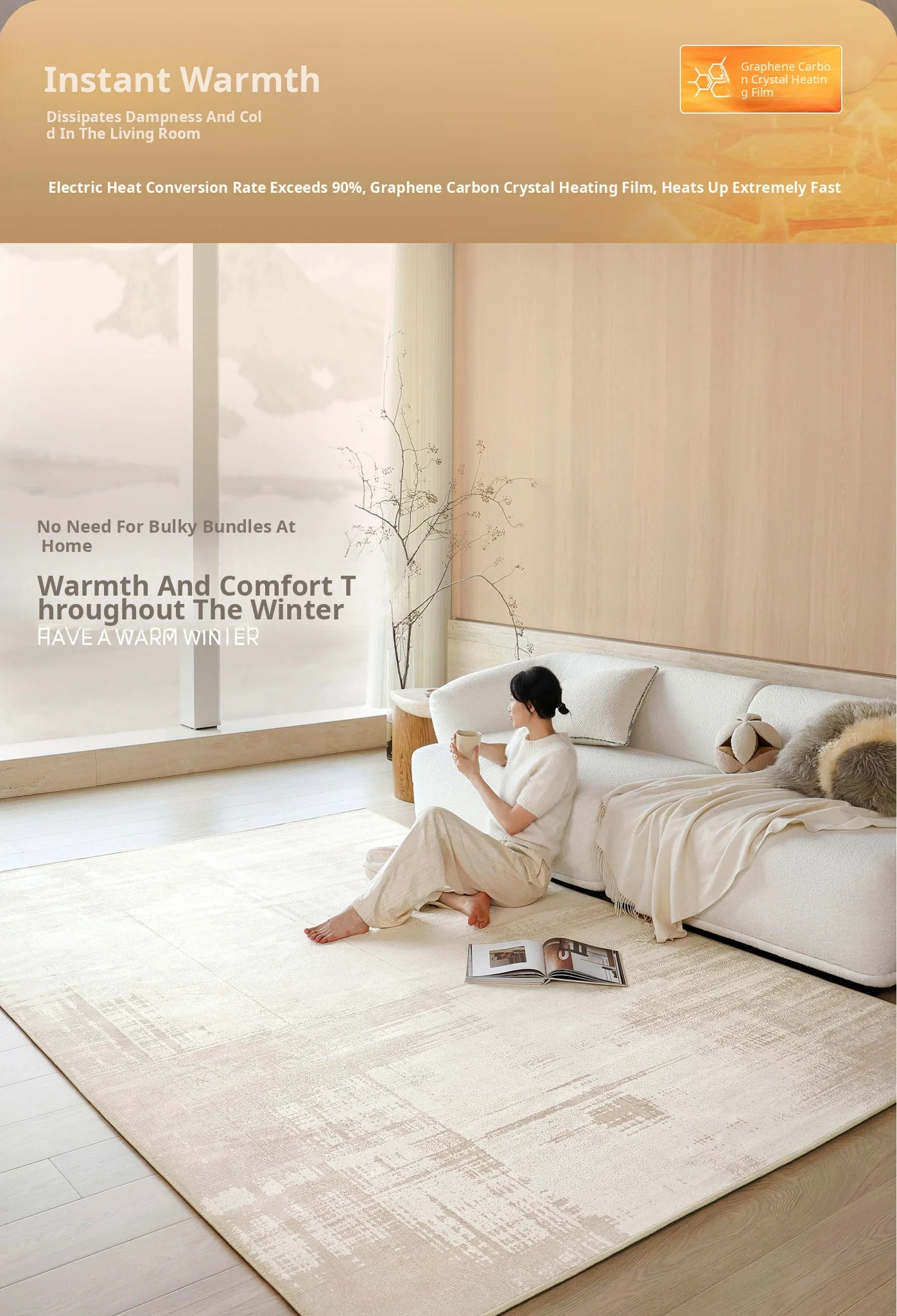 Sybos Heated Double-Layer Carpet with Detachable Washable Design - Premium Graphene Electric Heating Mat for Bedrooms and Living Rooms - Stay Warm and Cozy!