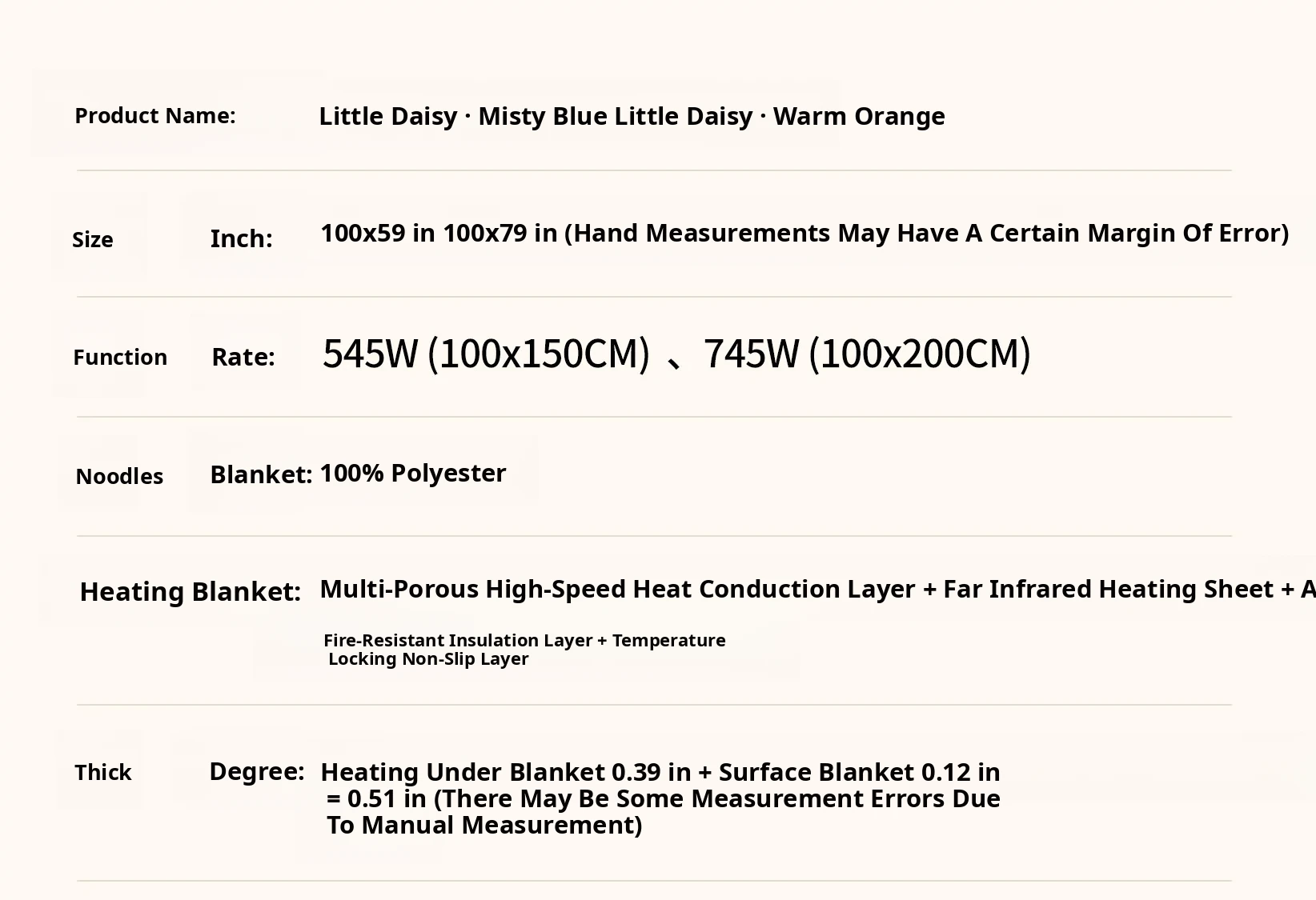 Heating Blanket (Face Blanket Needs to Be Purchased Separately)