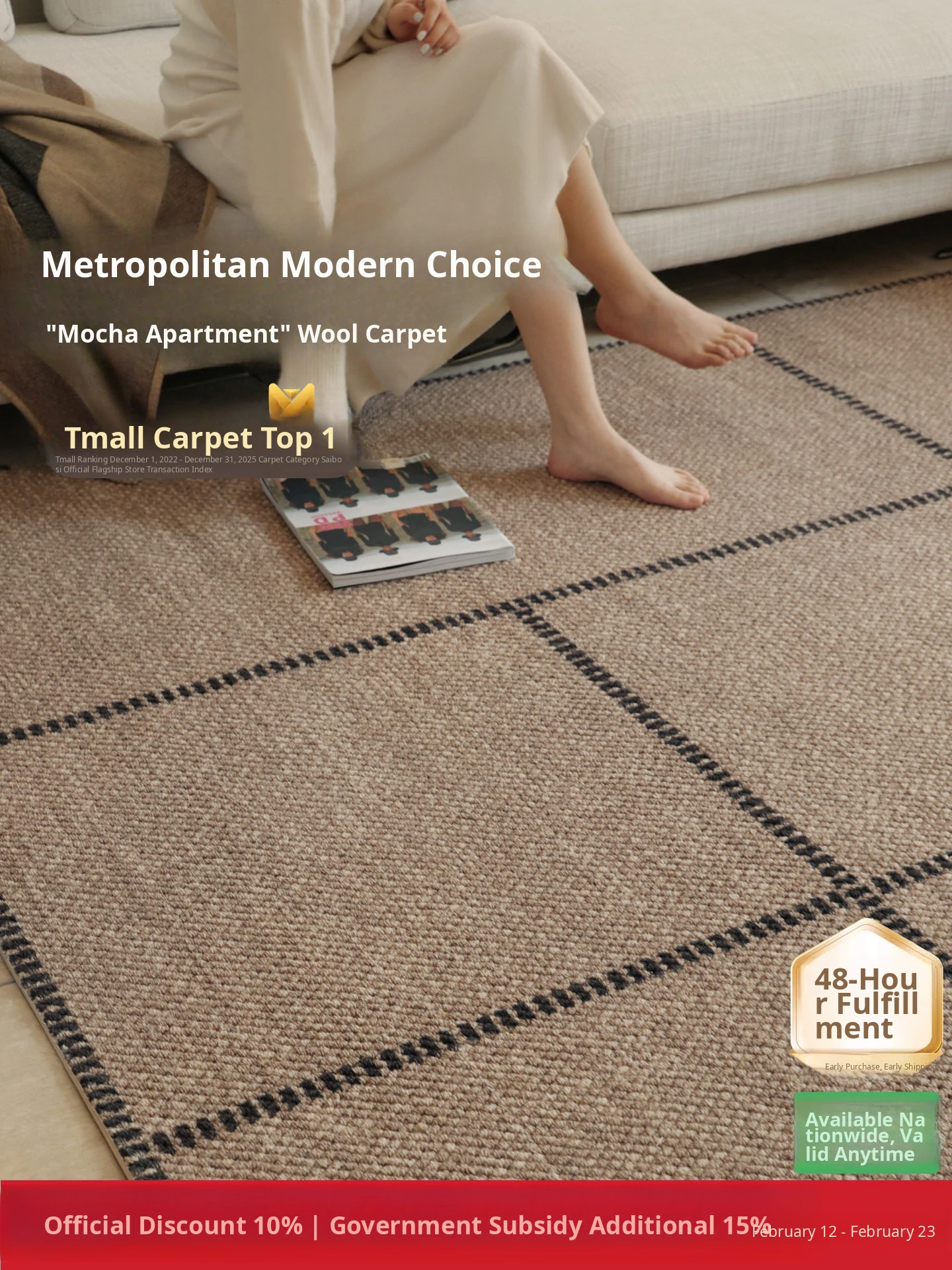 Sybos Imported Wool Carpet - Mocha Modern Apartment Rug for Elegant Living Rooms and Luxurious Bedrooms in Italian Minimalist Style