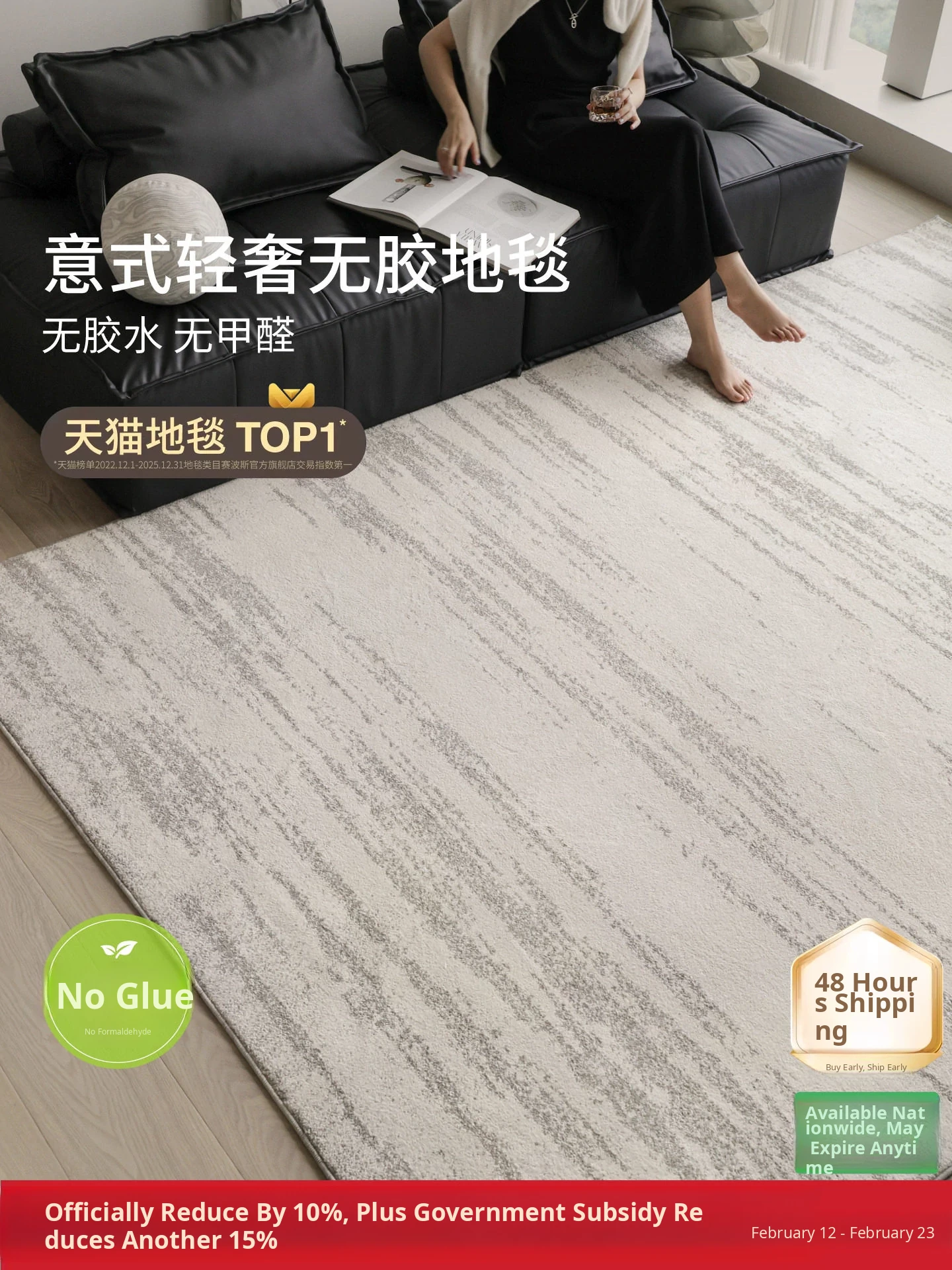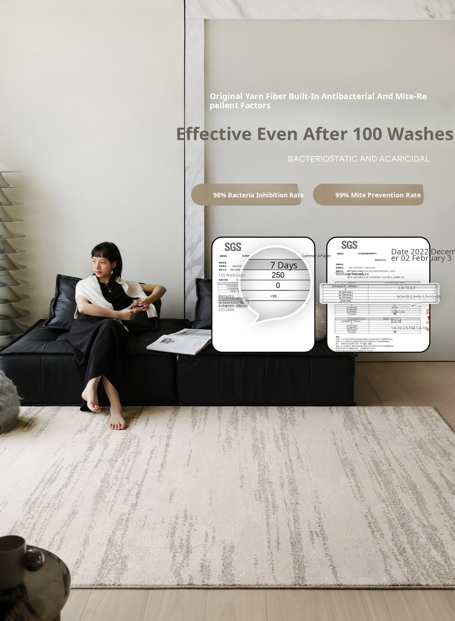 Sybos Moonlight Gemstone Non-adhesive Carpet - Waterproof, Stain-resistant, Formaldehyde-free, Italian Minimalist Design for Luxurious Living Rooms and Elegant Bedrooms